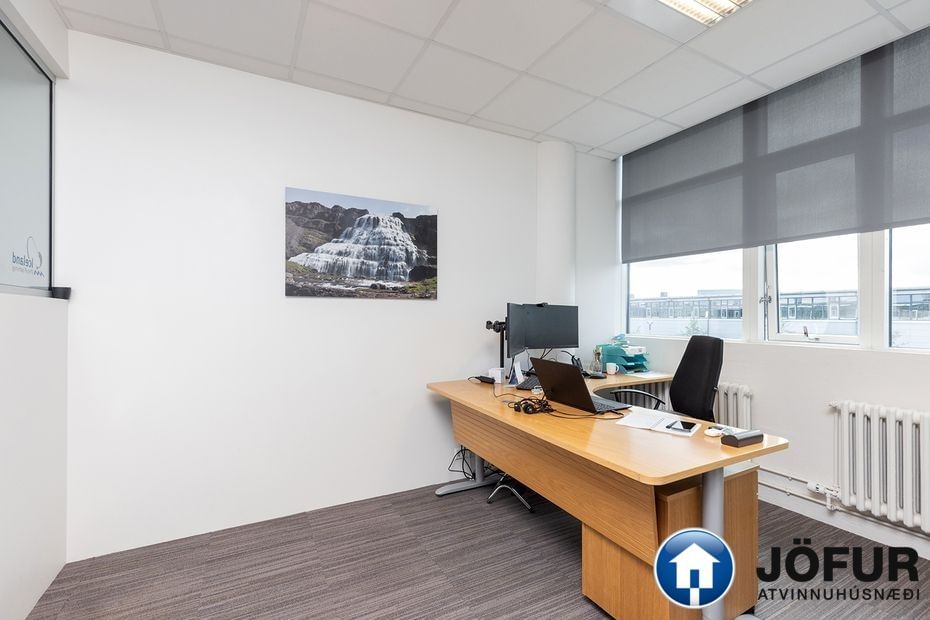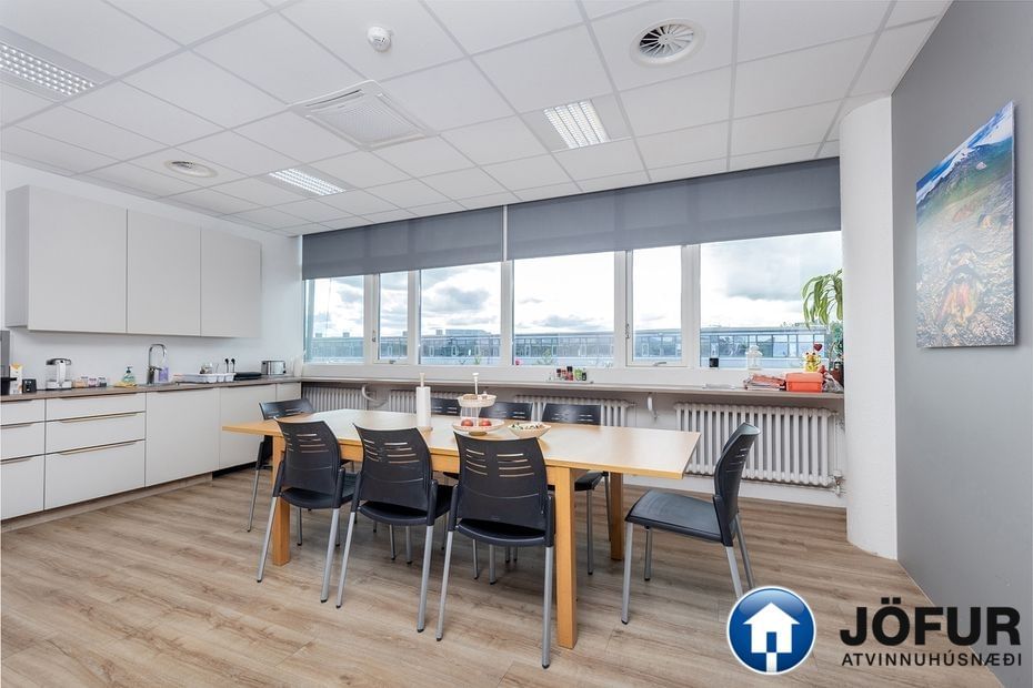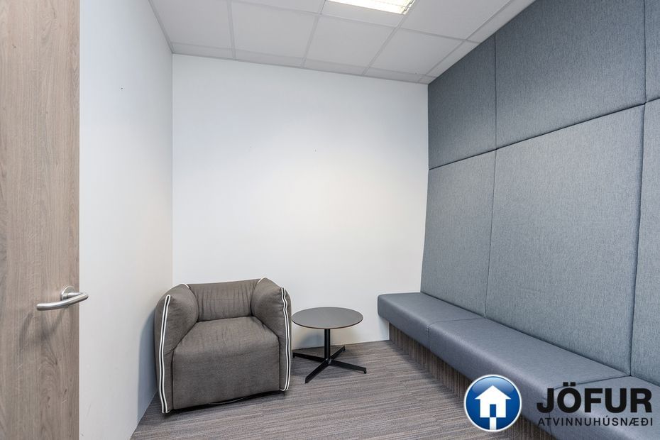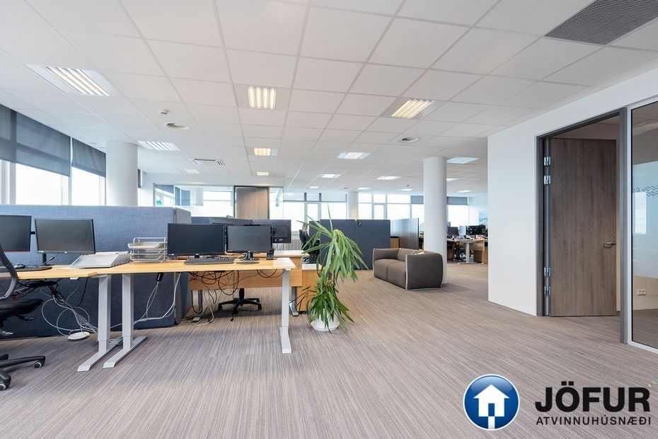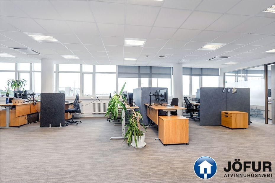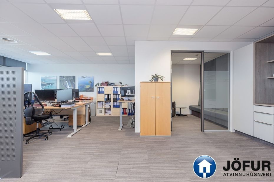 Skrifstofan skiptist í stórt opið vinnurými ásamt lokuðum rýmum og sérhönnuðu næðisrými. Elhúsaðstaða er innan rýmis. Leigusali getur aðlagað rýmið að nýrri starfsemi.