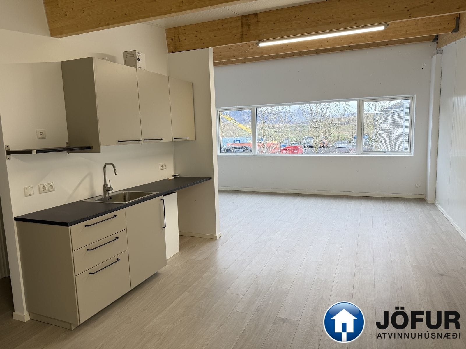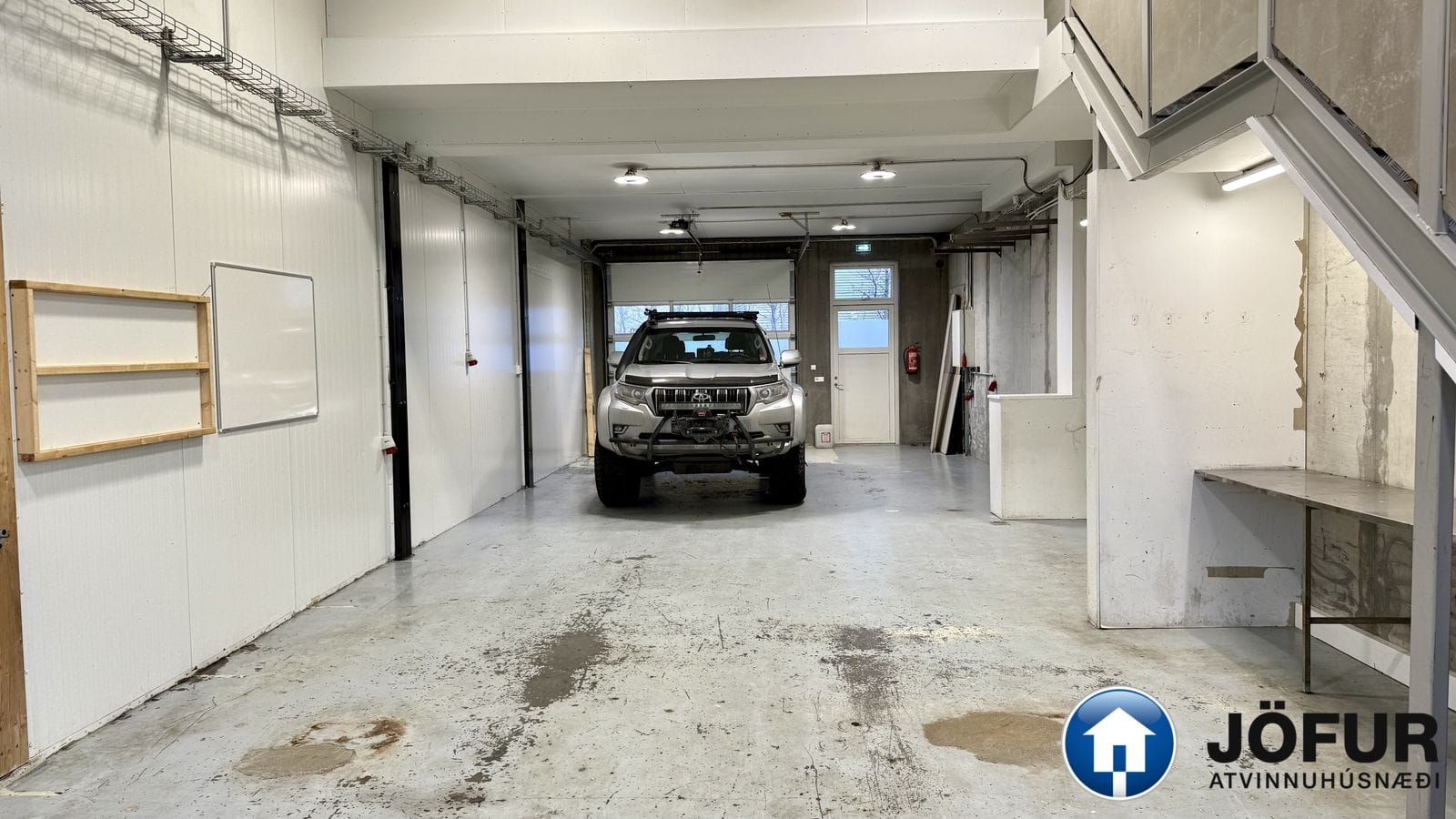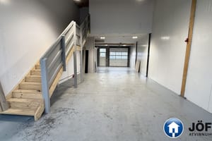 Um er að ræða tvær samliggjandi einingar sem seljast eða leigjast saman eða í sitt hvoru lagi. Hvort rými er skráð 113,6 m² að birtu flatarmáli, samtals 227,2 m². Búið er að stækka milliloft í hvoru rými upp í 55 m², þannig að hvort rými er 163,2 m² að stærð. Gott malbikað bílastæði og góð aðkoma að húsinu. Húsnæðið er laust samkvæmt samkomulagi. VSK hús.