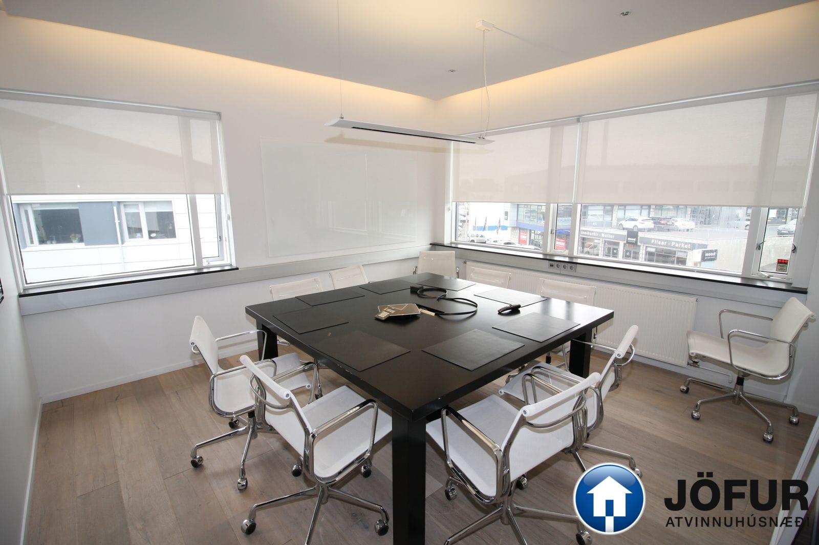 Til staðar eru sex rúmgóð skrifstofuherbergi, eitt fundarherbergi, kaffistofa og geymsla. Salerni eru í sameign á gangi.