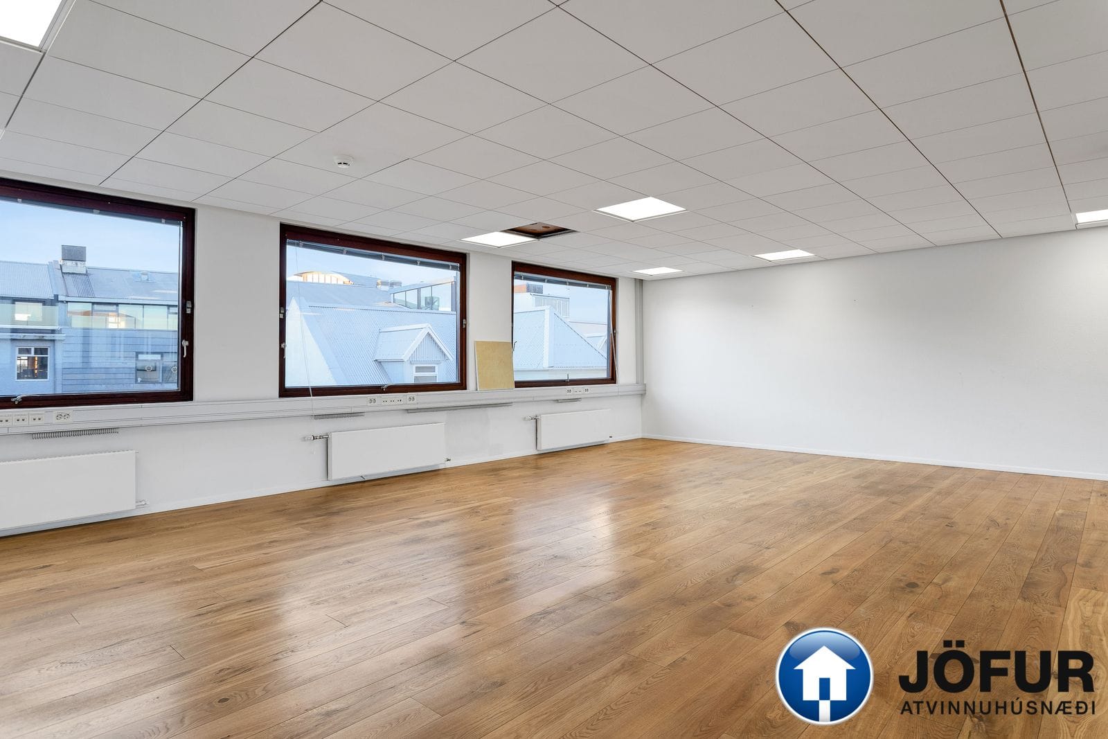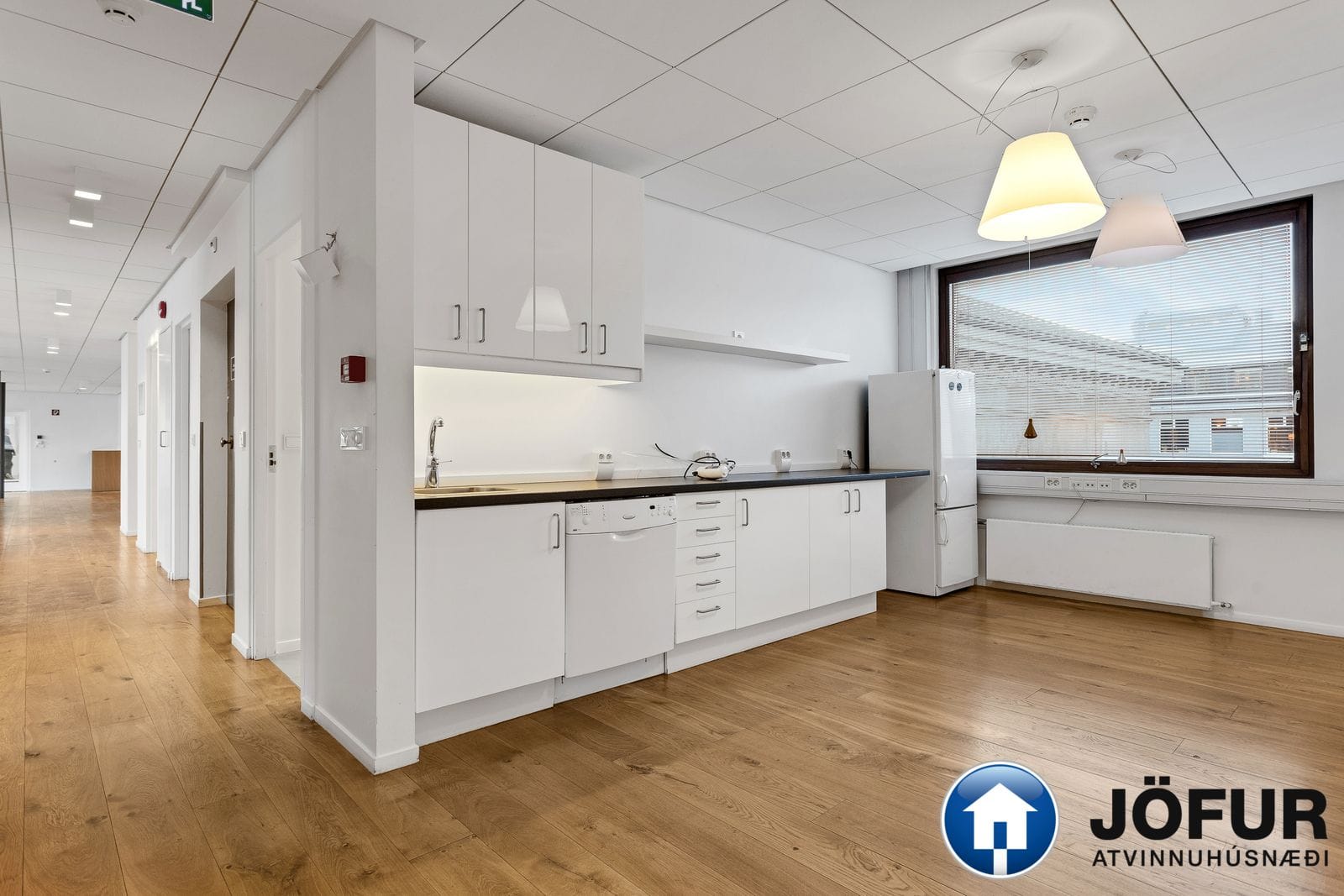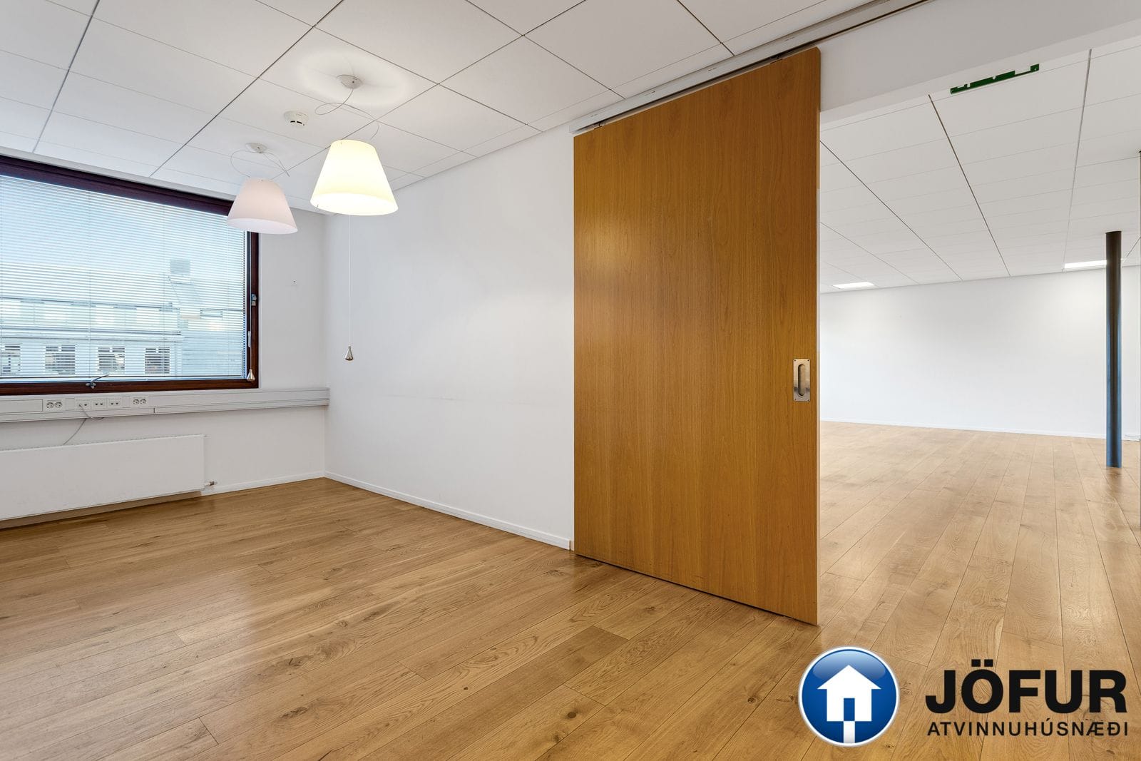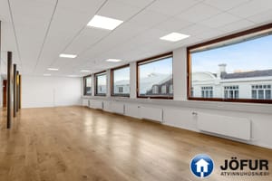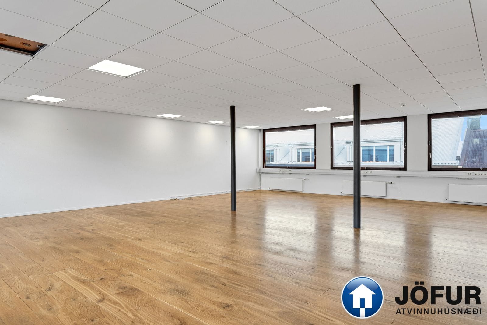 Að mestu opin vinnurými, tvær lokaðar skrifstofur/fundaherbergi, eldhús, snyrtingar. Parket á gólfi.