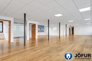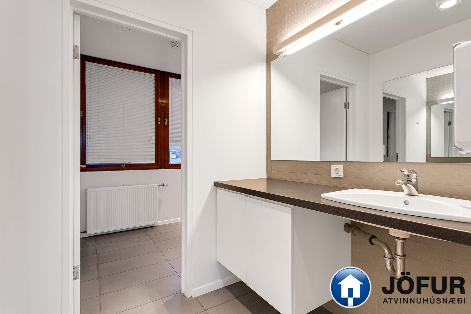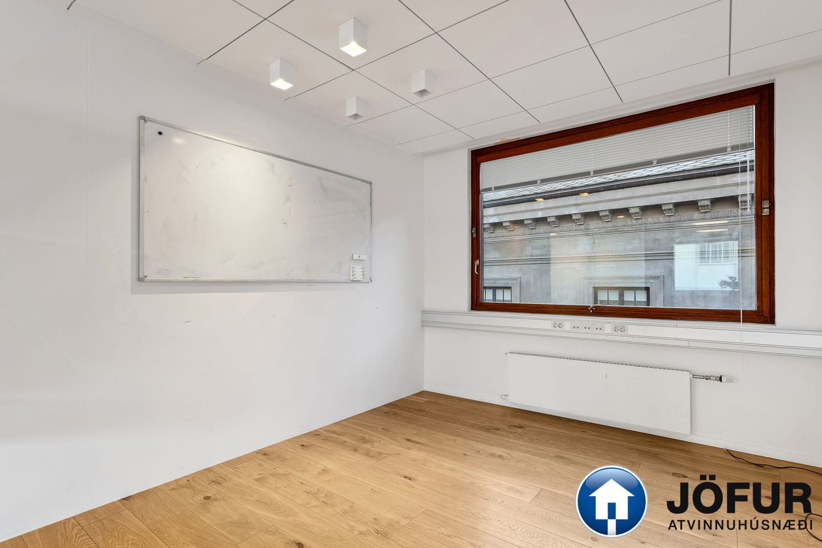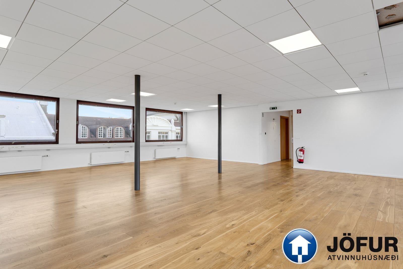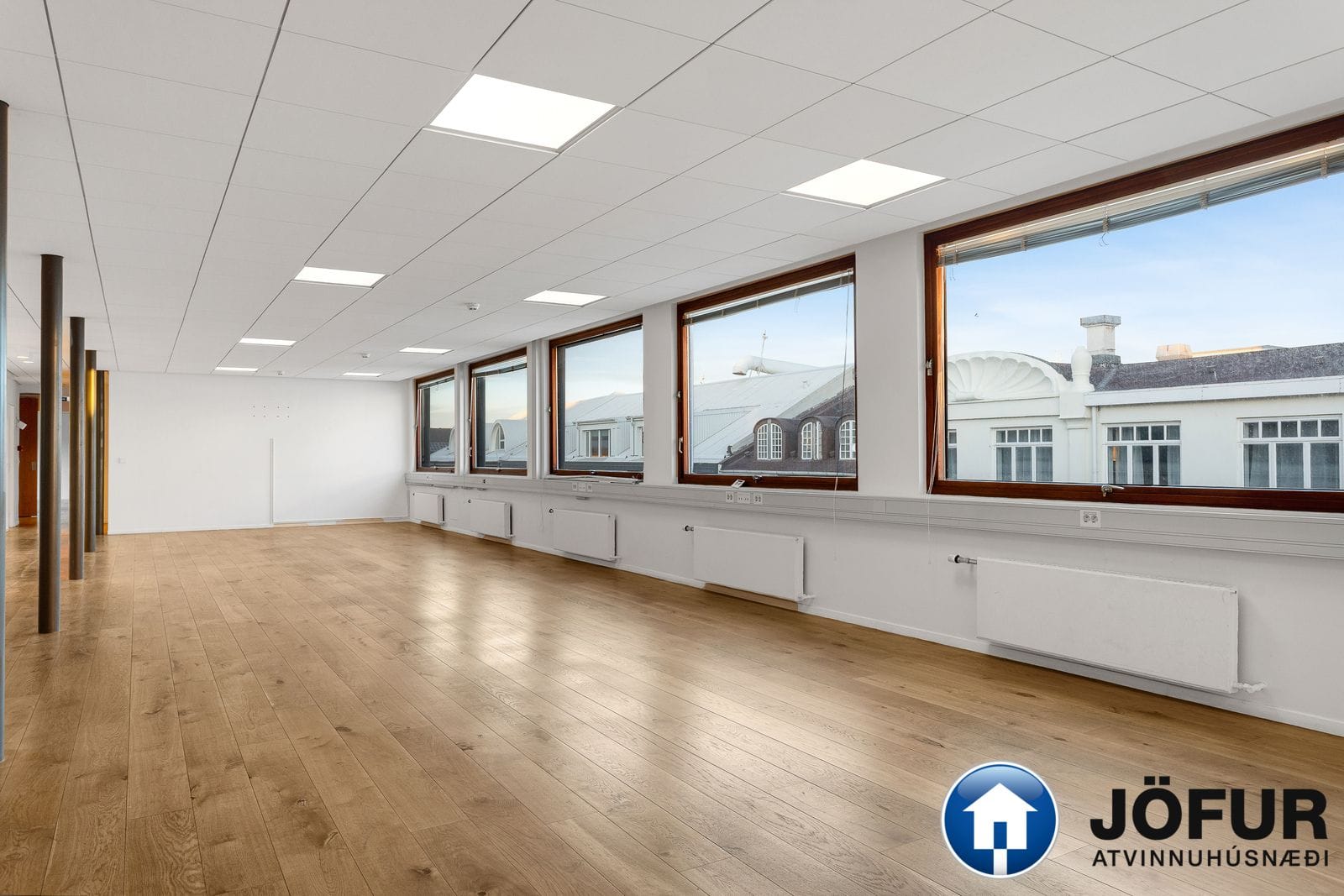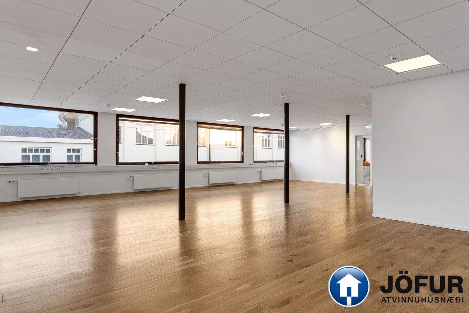 Að mestu opin vinnurými, tvær lokaðar skrifstofur/fundaherbergi, eldhús, snyrtingar. Parket á gólfi.