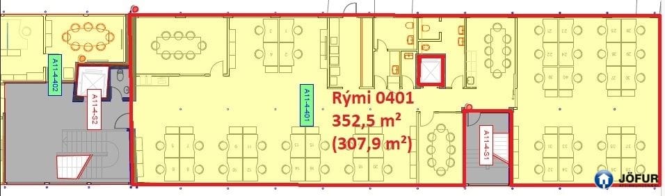 Til leigu um 352,5 fm. skrifstofuhúsnæði á 2. hæð. (Rými 0401). Laust strax.