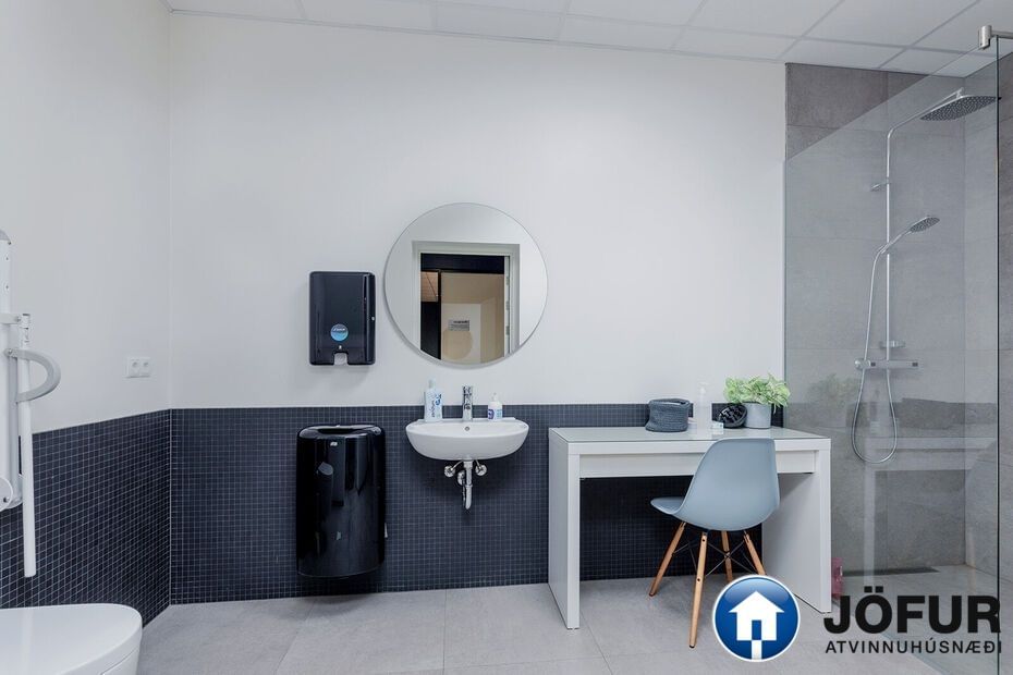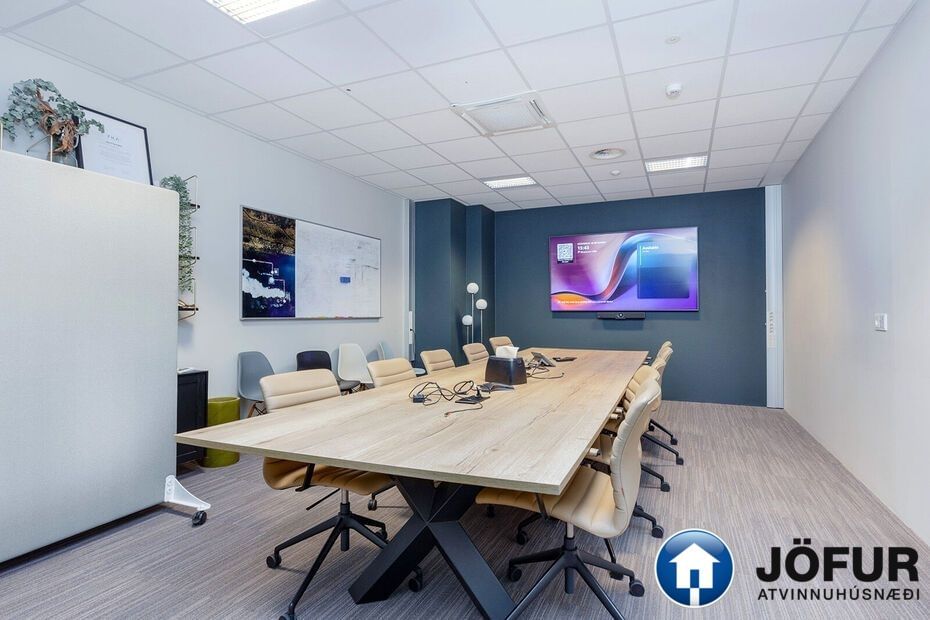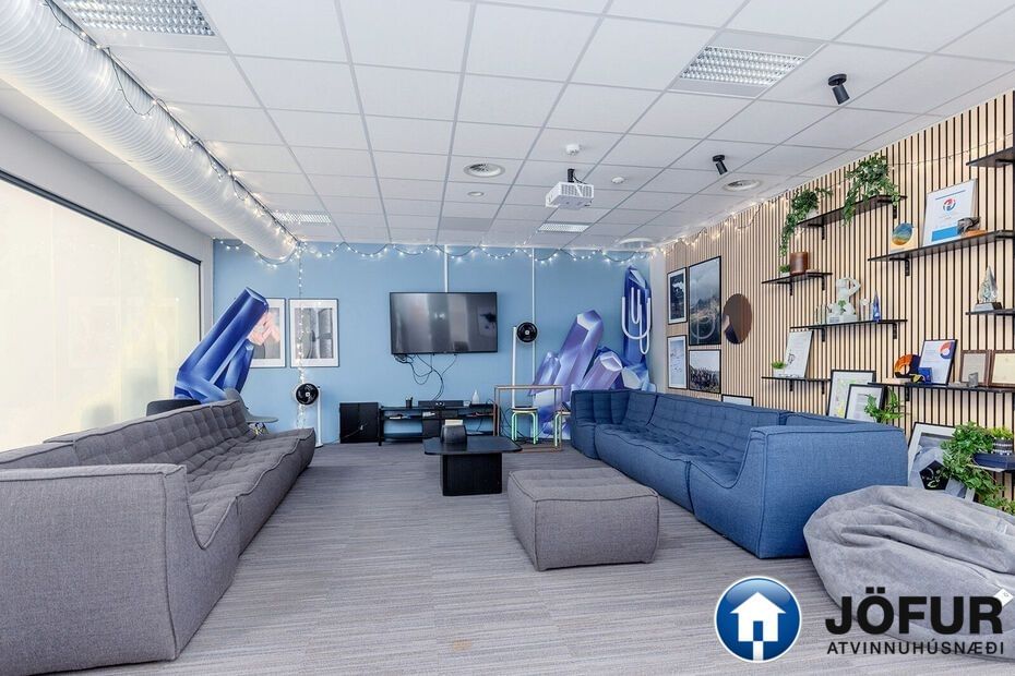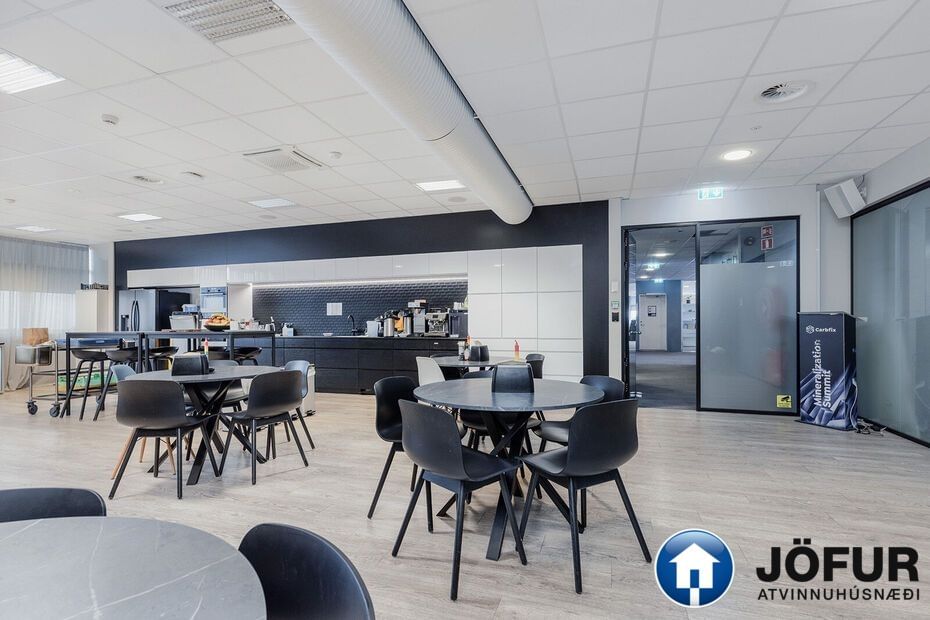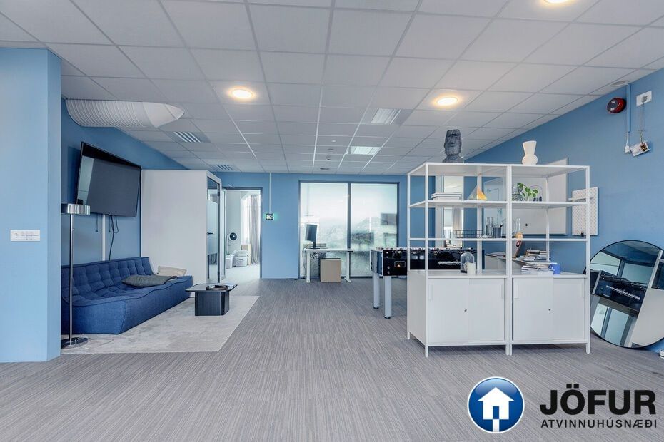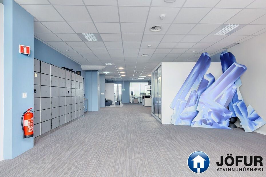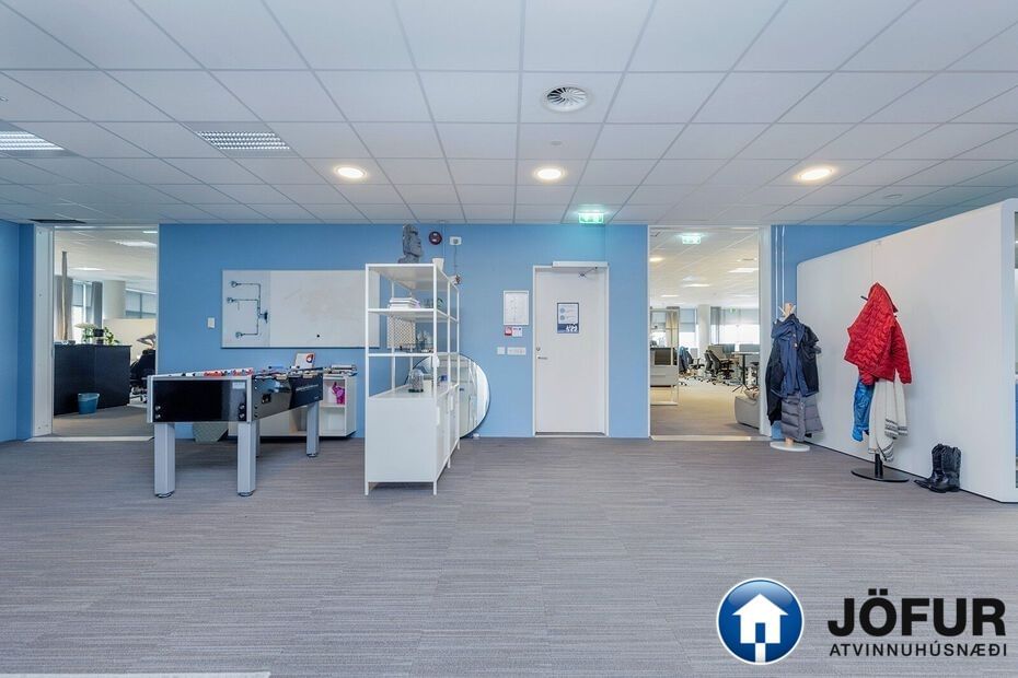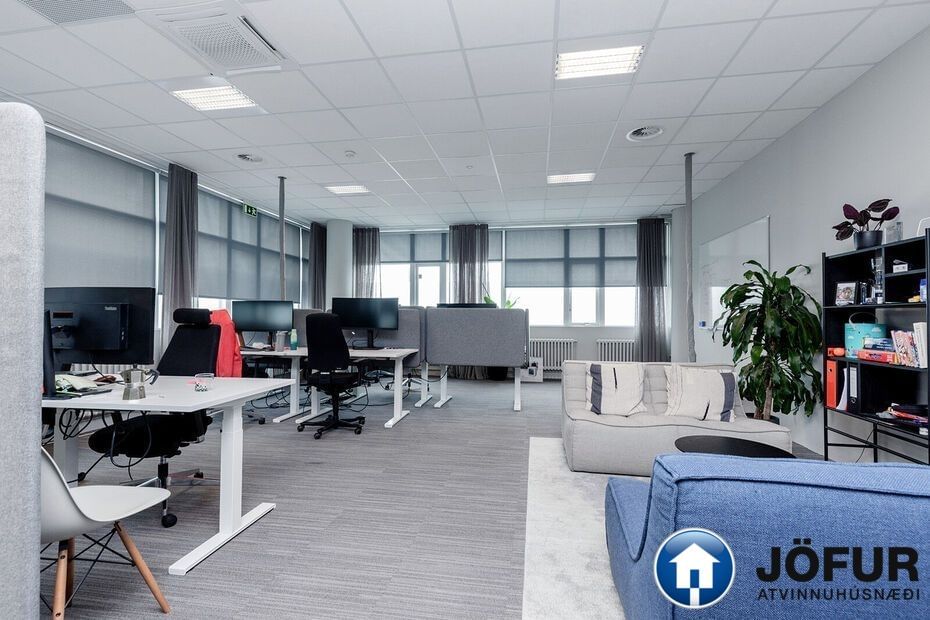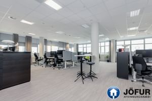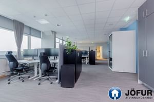 Húsnæðið samanstendur af skrifstofurými með teppaflísum og kerfislofti ásamt nokkrum fundarherbergjum, stórum sem smáum. Snyrtileg og rúmgóð kaffistofa með vínilparketi. Salernisaðstaða er góð með sturtu.