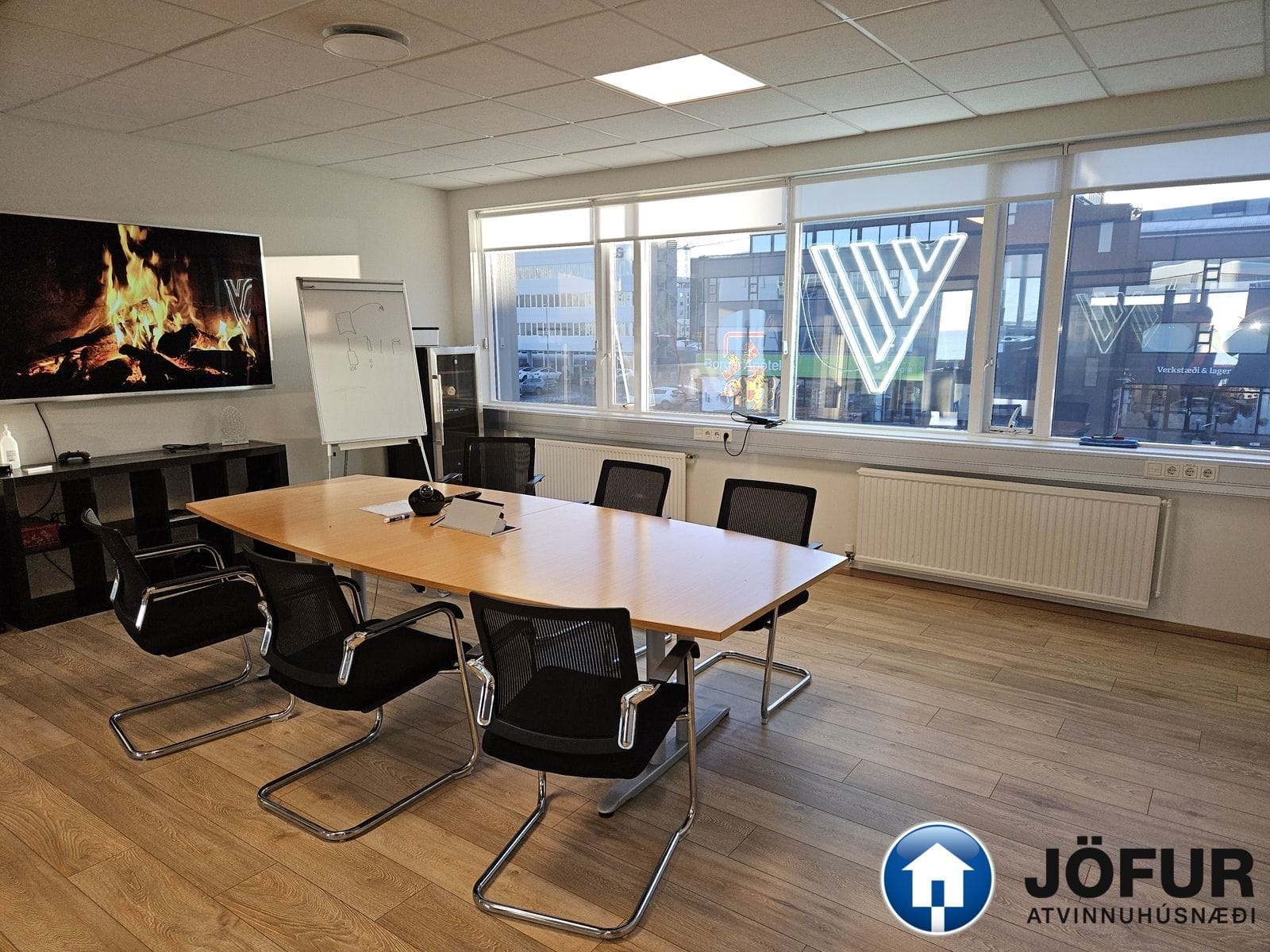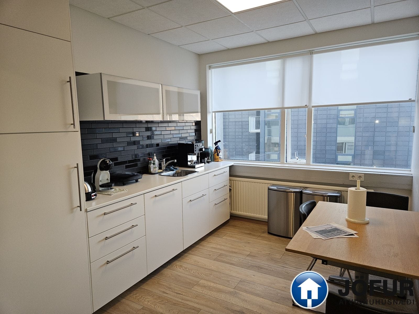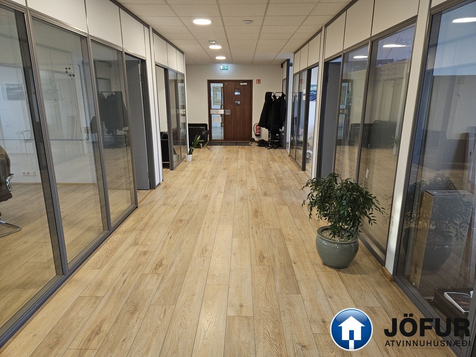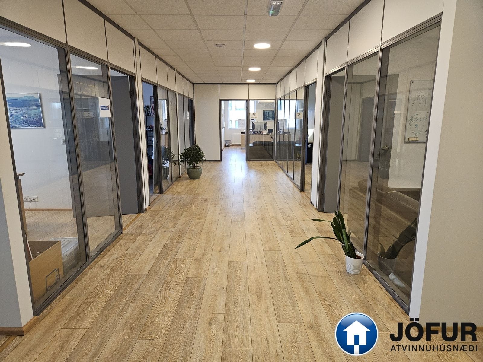 Nánari lýsing: Húsnæðið skiptist upp í 6 lokaðar skrifstofur, eitt stórt vinnurými, eitt stórt fundarherbergi og eldhús/ kaffistofu með borðkrók. Á gólfum er parket. Kerfisloft og lýsing í loftum. Lagnastokkar á veggjum. Snyrtingar eru í sameign. VSK leggst við leigufjárhæðina.