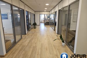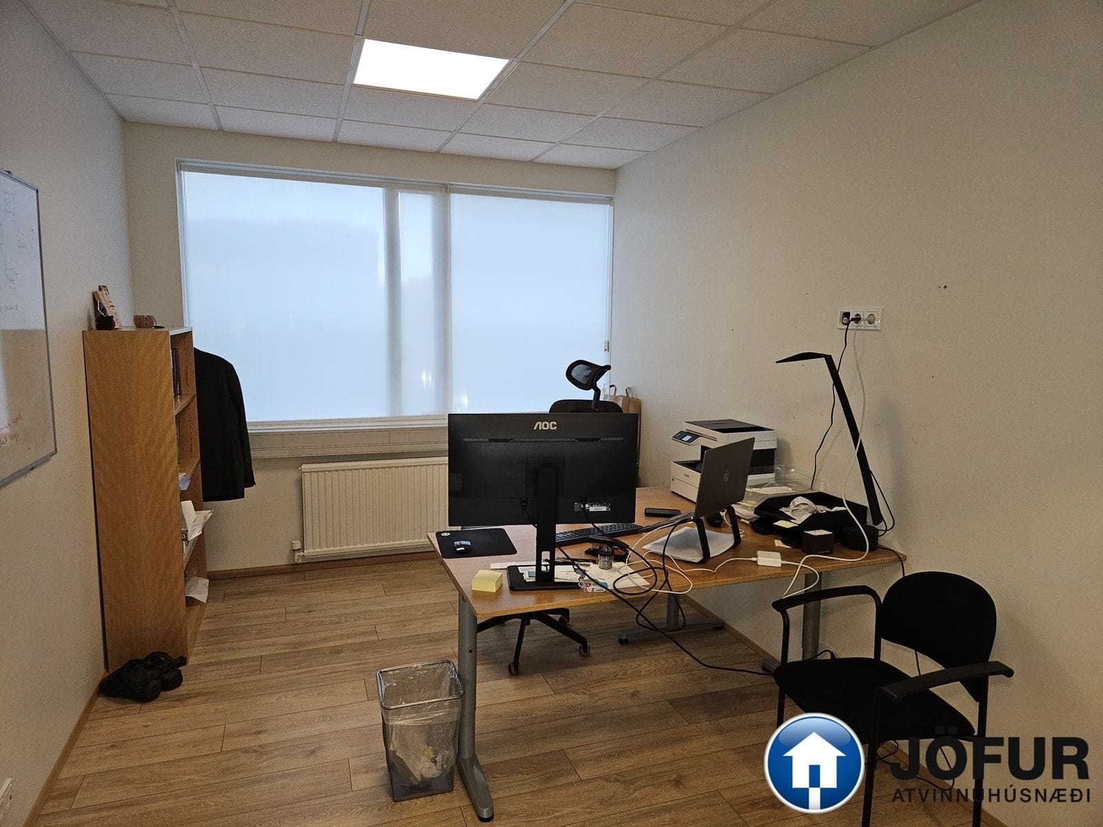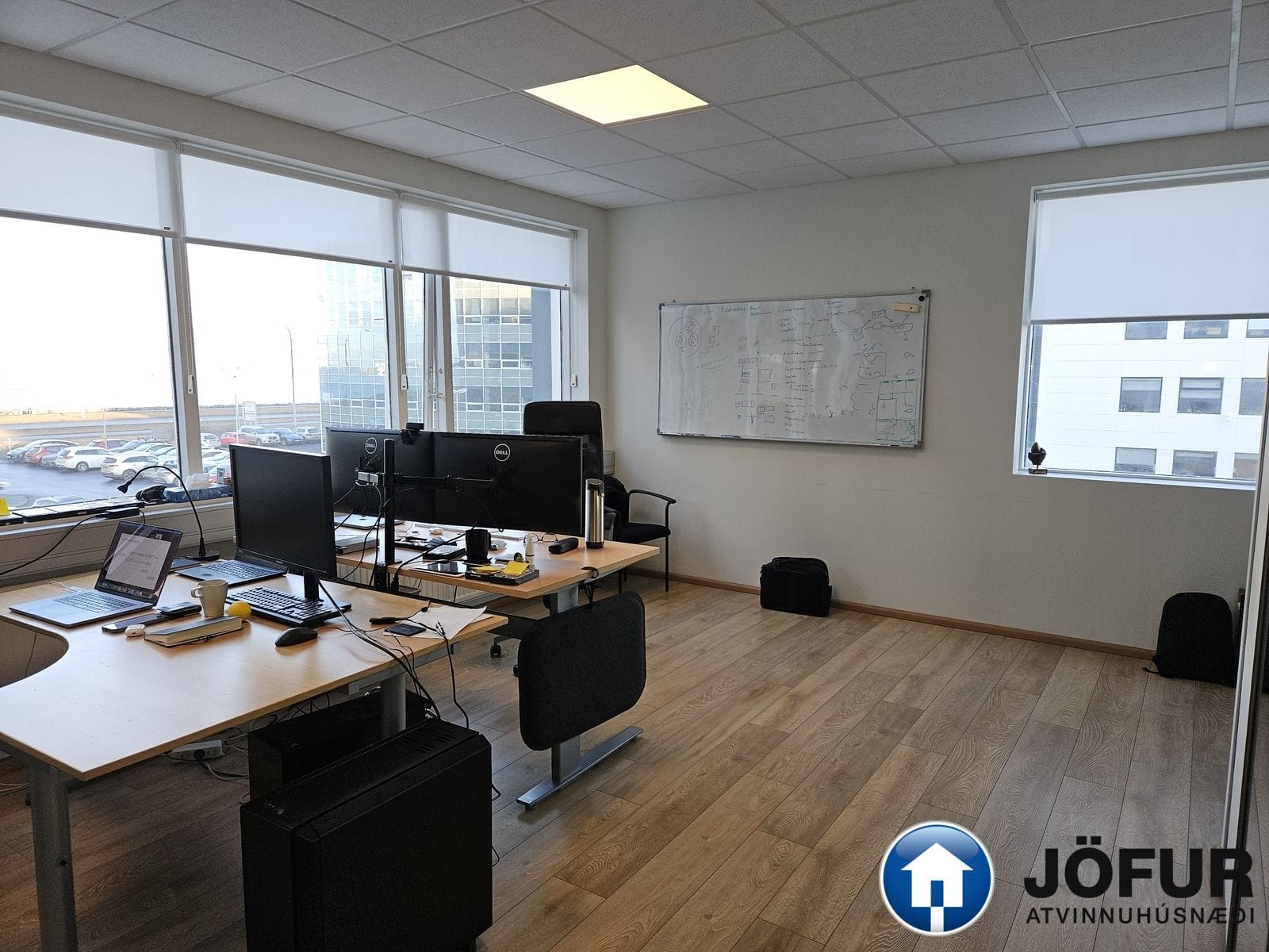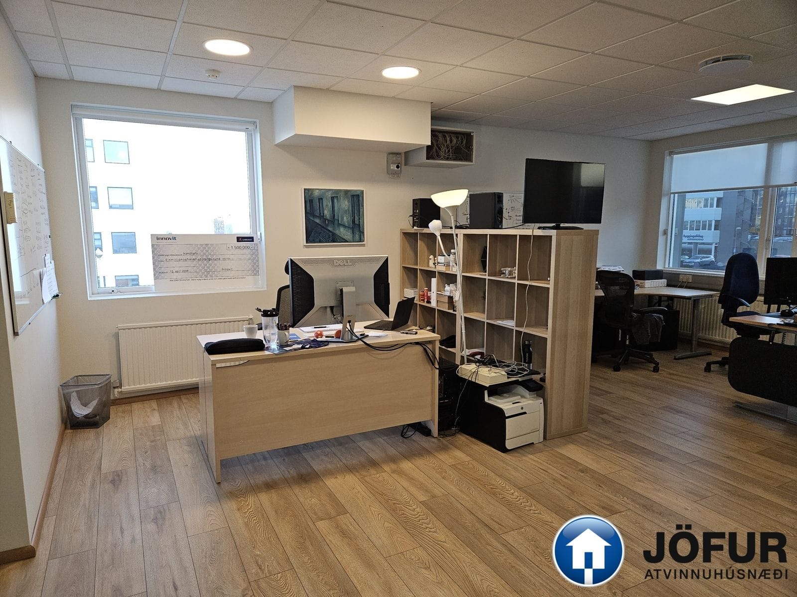 Nánari lýsing: Húsnæðið skiptist upp í 6 lokaðar skrifstofur, eitt stórt vinnurými, eitt stórt fundarherbergi og eldhús/ kaffistofu með borðkrók. Á gólfum er parket. Kerfisloft og lýsing í loftum. Lagnastokkar á veggjum. Snyrtingar eru í sameign. VSK leggst við leigufjárhæðina.