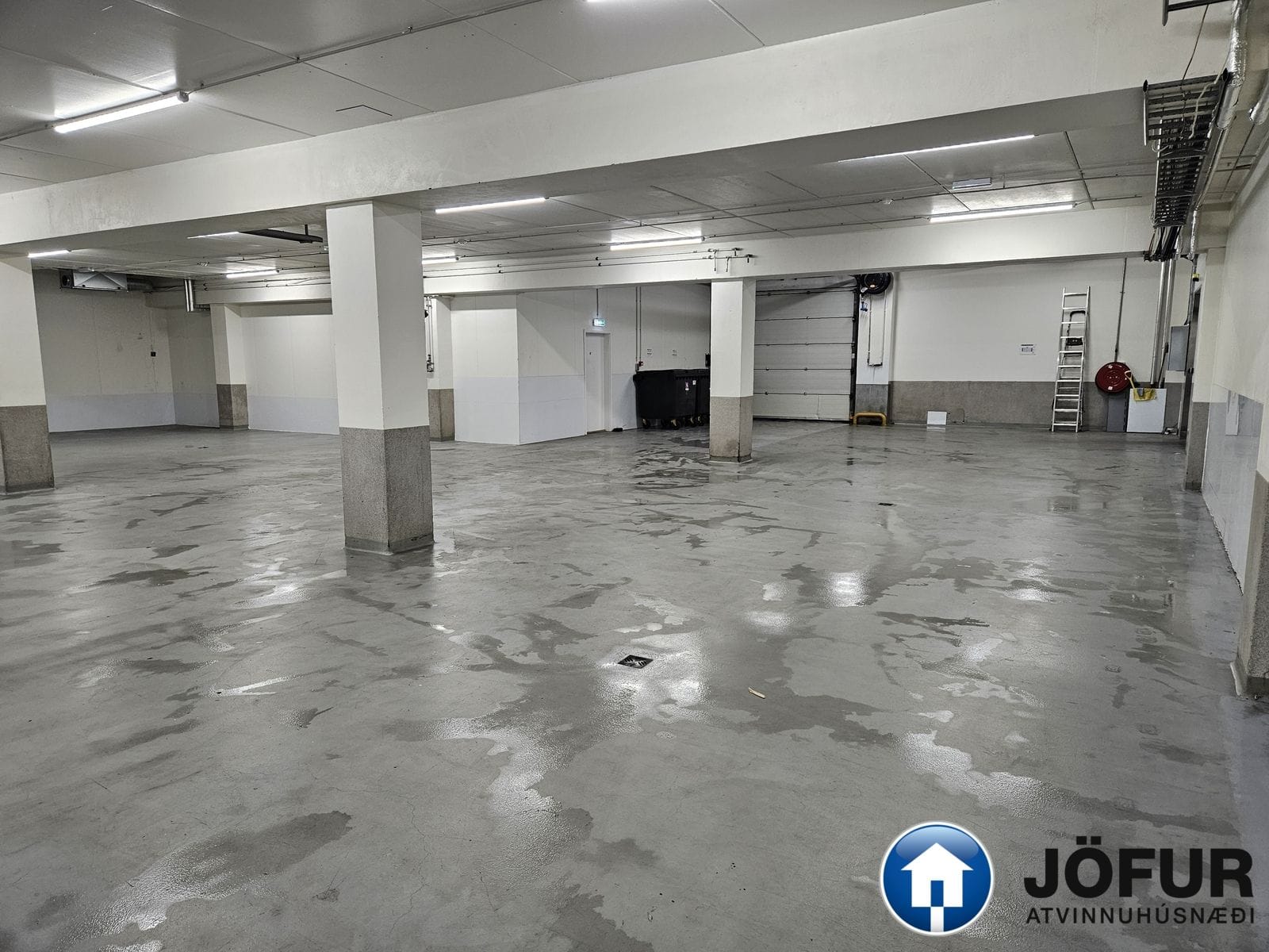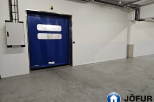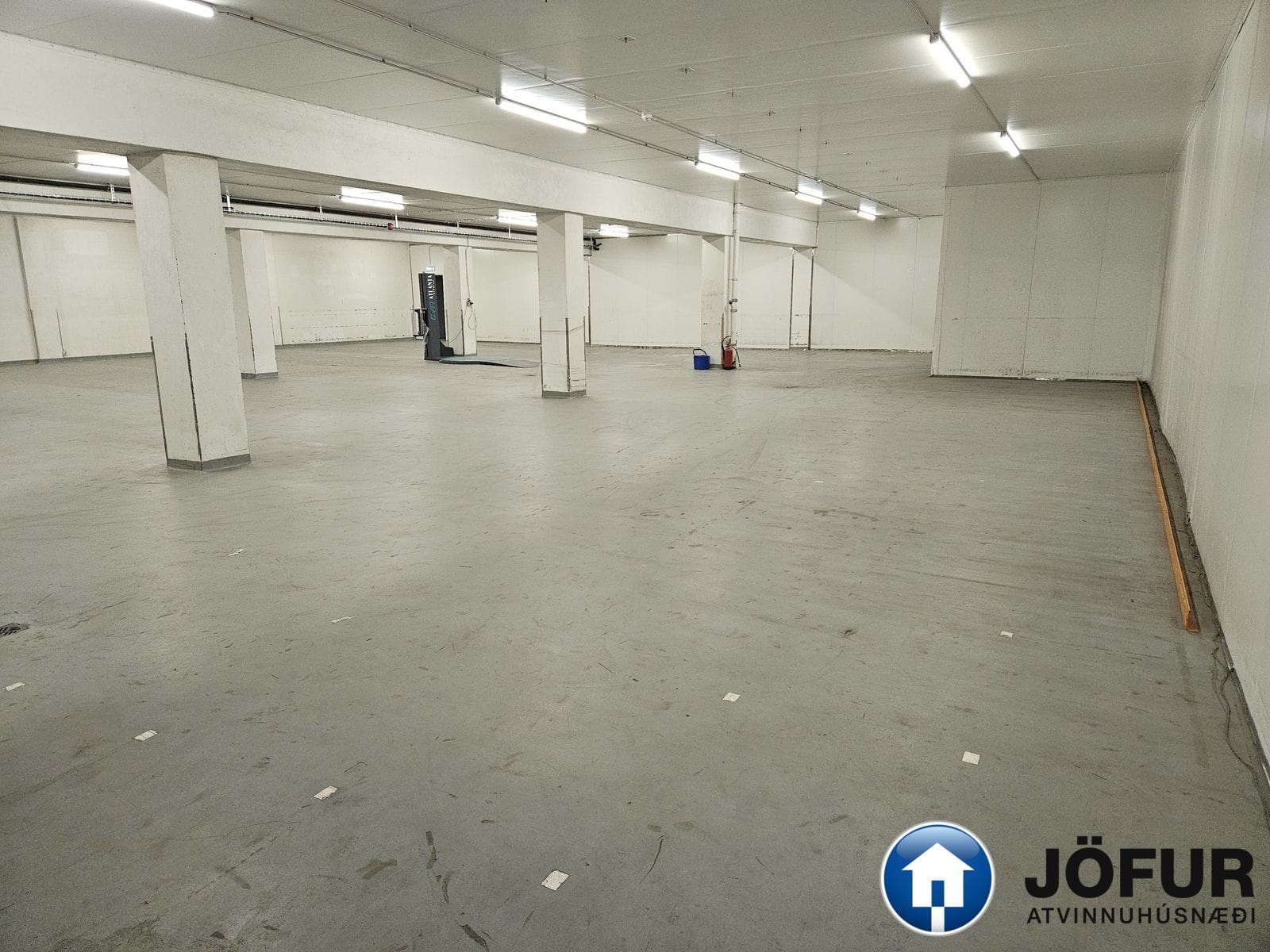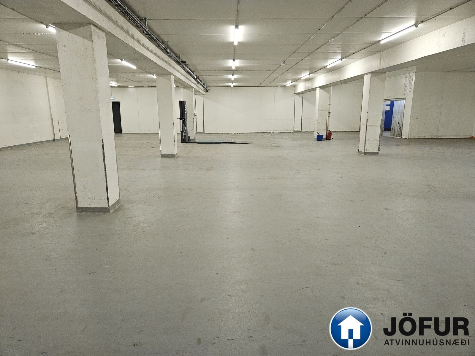 Nánari lýsing: Skiptist upp í tvö aðskilin rými með millivegg, skrifstofurými með eldhúsinnréttingu, fundarherbergi og snyrtingar. 3ja fasa rafmagn er til staðar. Lofthæð í lagerrýmum er frá 3,2 - 3,6 m. en er lægri undir bitum, (um 2,7 m.). Kælirými er um 520 m² að grunnfleti. Niðurföll eru í gólfum. Hæð á innkeyrsluhurðum er um 3 m. Tvær þeirra er um ramp. VSK leggst við leigufjárhæðina.