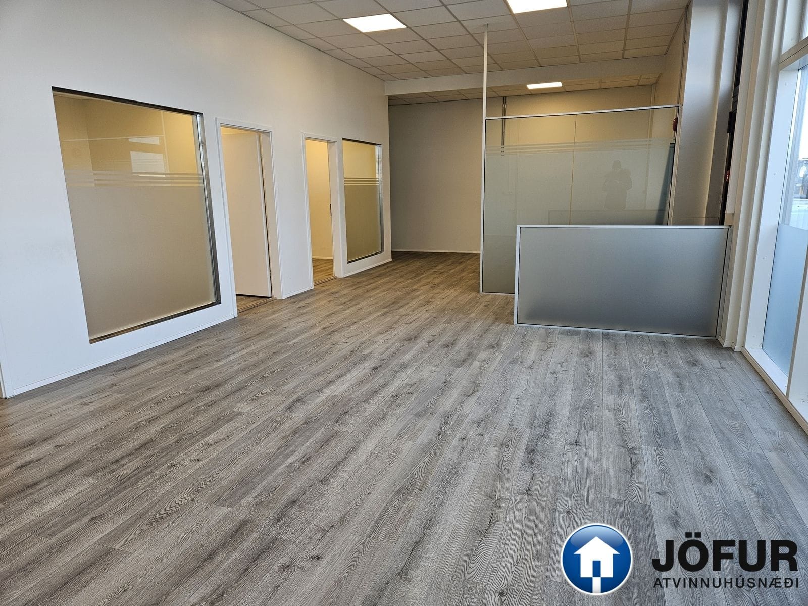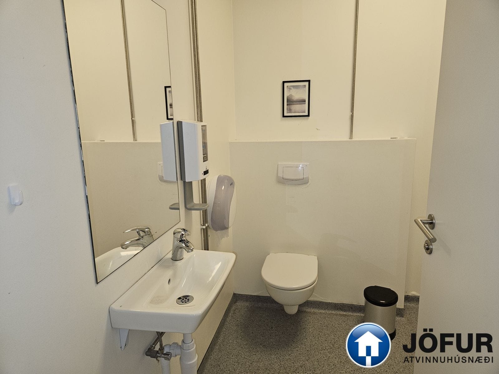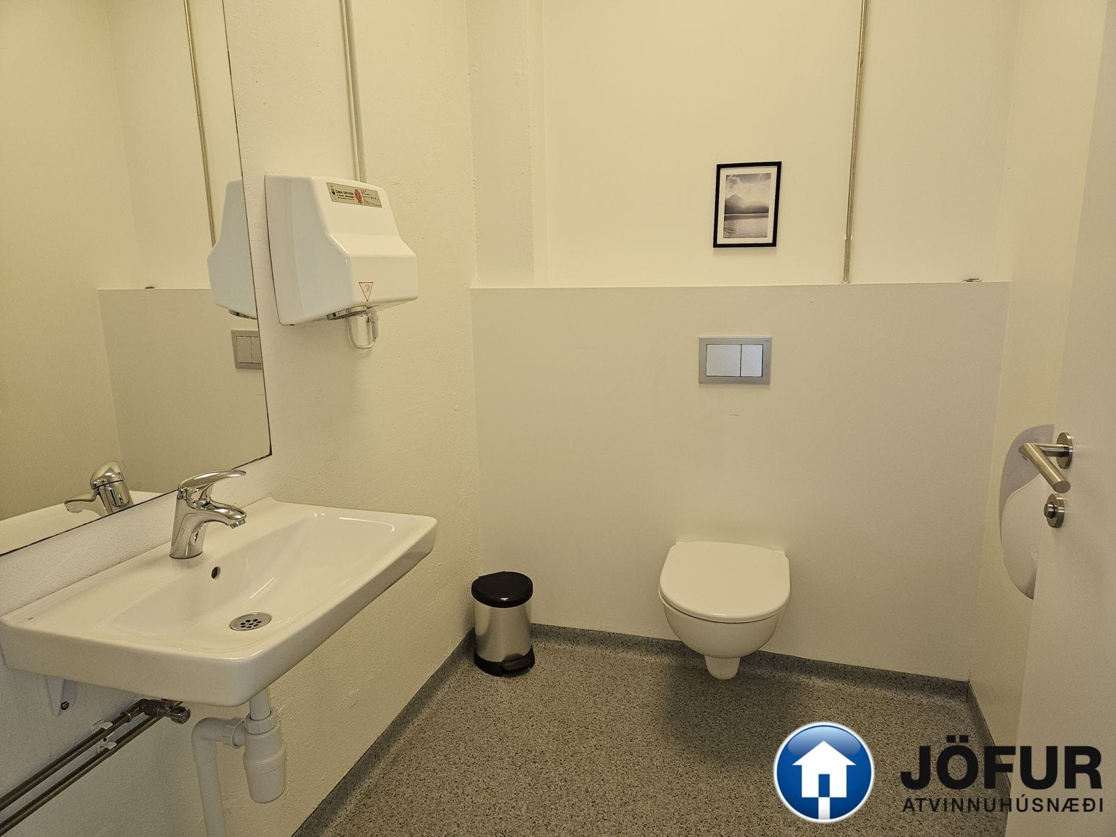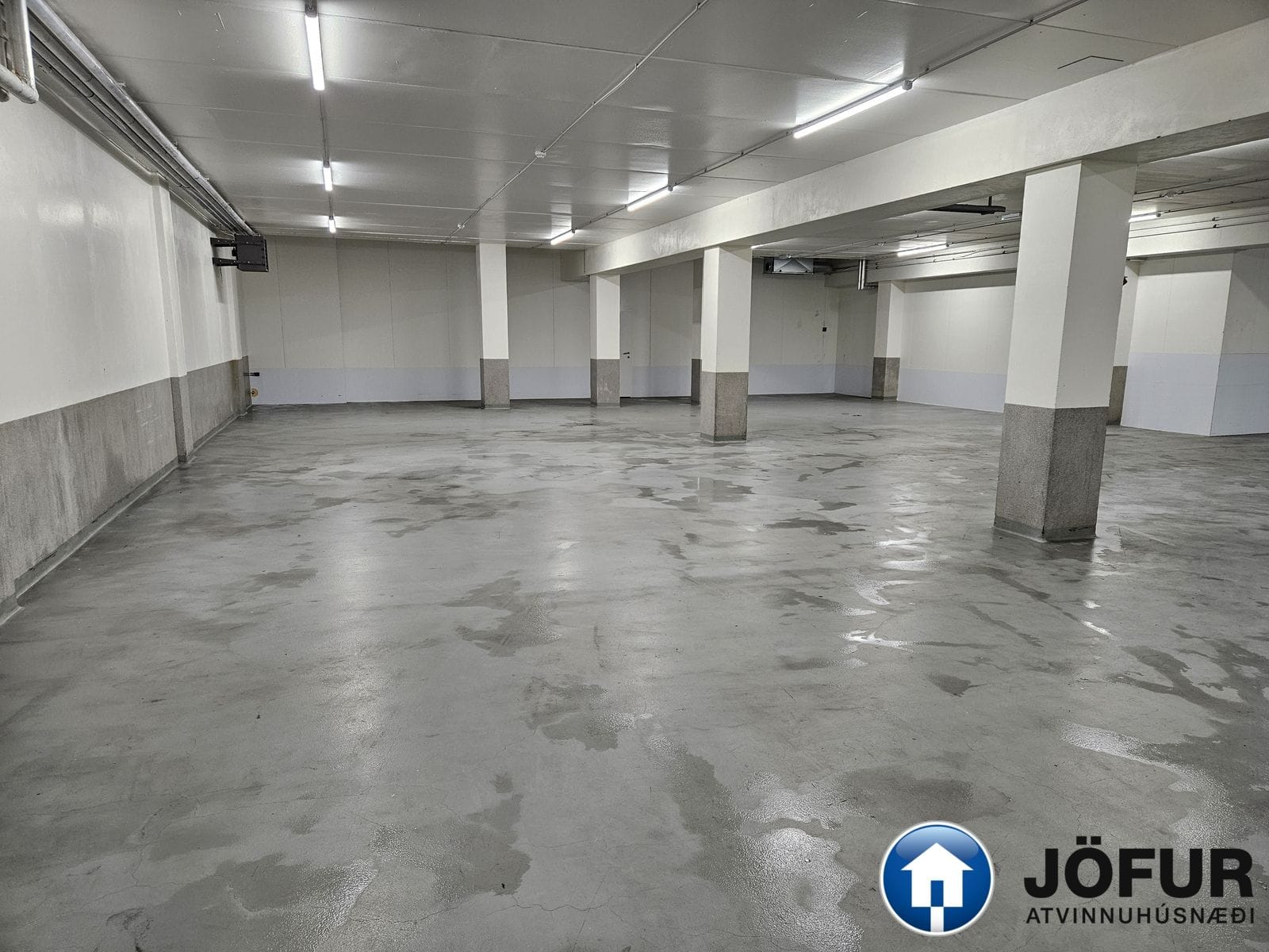 Nánari lýsing: Skiptist upp í tvö aðskilin rými með millivegg, skrifstofurými með eldhúsinnréttingu, fundarherbergi og snyrtingar. 3ja fasa rafmagn er til staðar. Lofthæð í lagerrýmum er frá 3,2 - 3,6 m. en er lægri undir bitum, (um 2,7 m.). Kælirými er um 520 m² að grunnfleti. Niðurföll eru í gólfum. Hæð á innkeyrsluhurðum er um 3 m. Tvær þeirra er um ramp. VSK leggst við leigufjárhæðina.