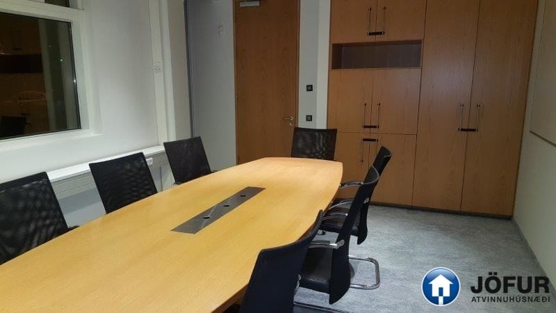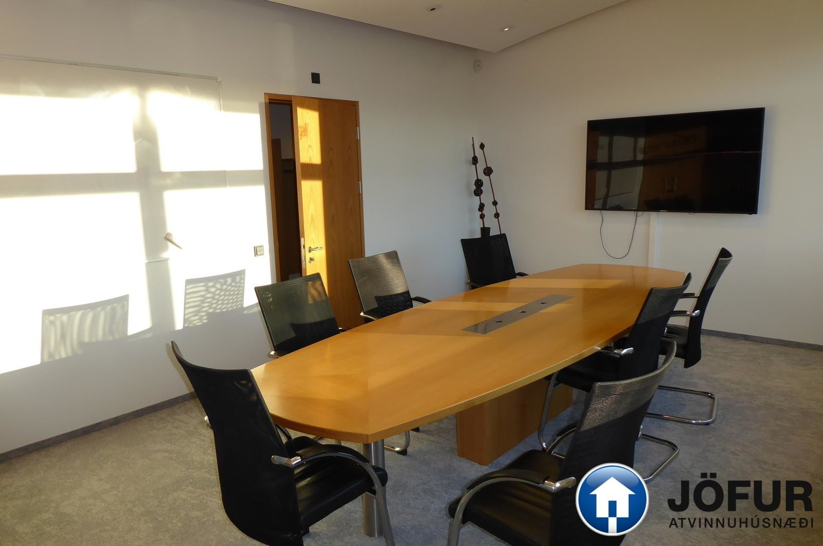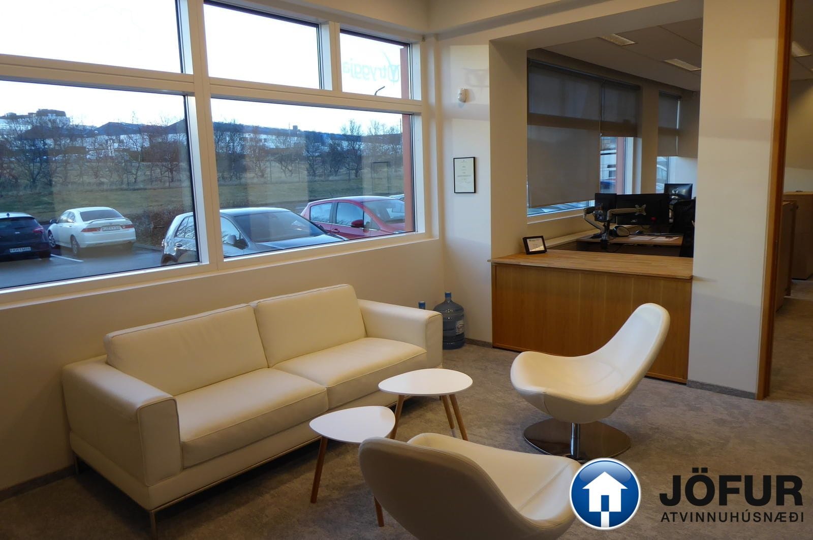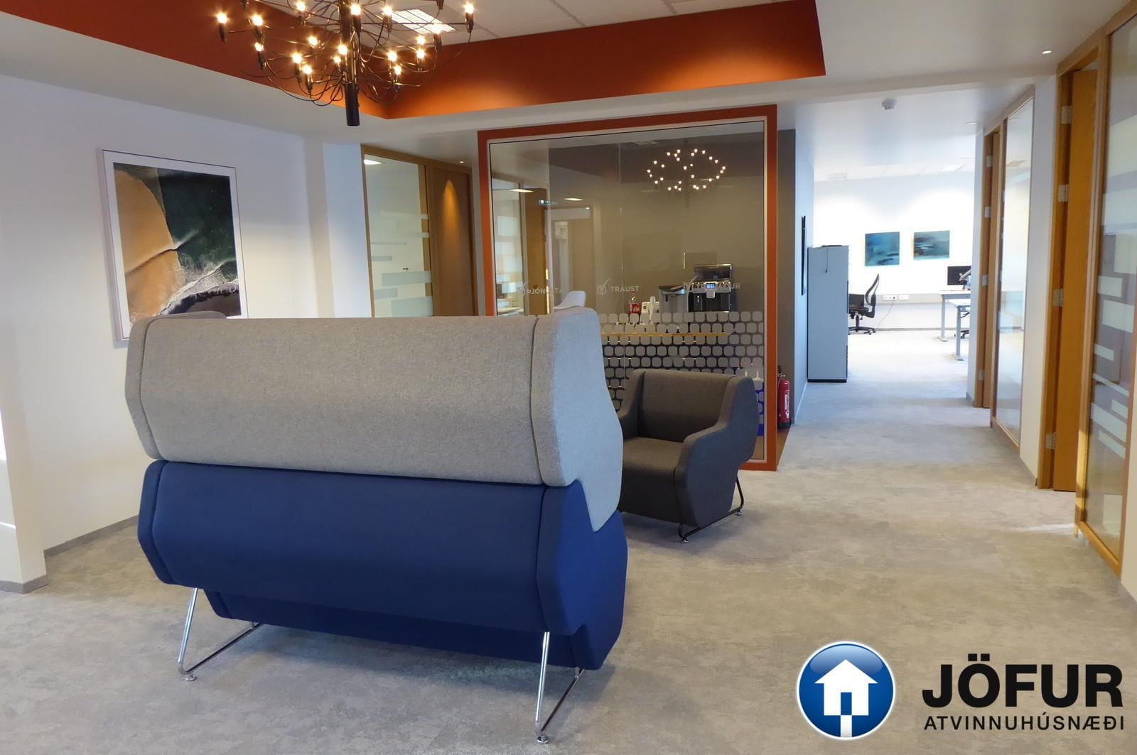 Húsnæðið skiptist í móttöku, opið vinnurými, nokkrar skrifstofur, tvö fundarherbergi og stóra kaffistofu. Hægt er að ganga inn í annað fundarherbergið beint við inngang í sameign. Um er að ræða heila hæð með þremur inngöngum úr sameign þegar komið er inn í húsið. Frábæru útsýni til norðurs yfir voginn. Gæti hentað vel fyrir t.d. auglýsingastofu, bókhaldsstofu eða tölvufyrirtæki.