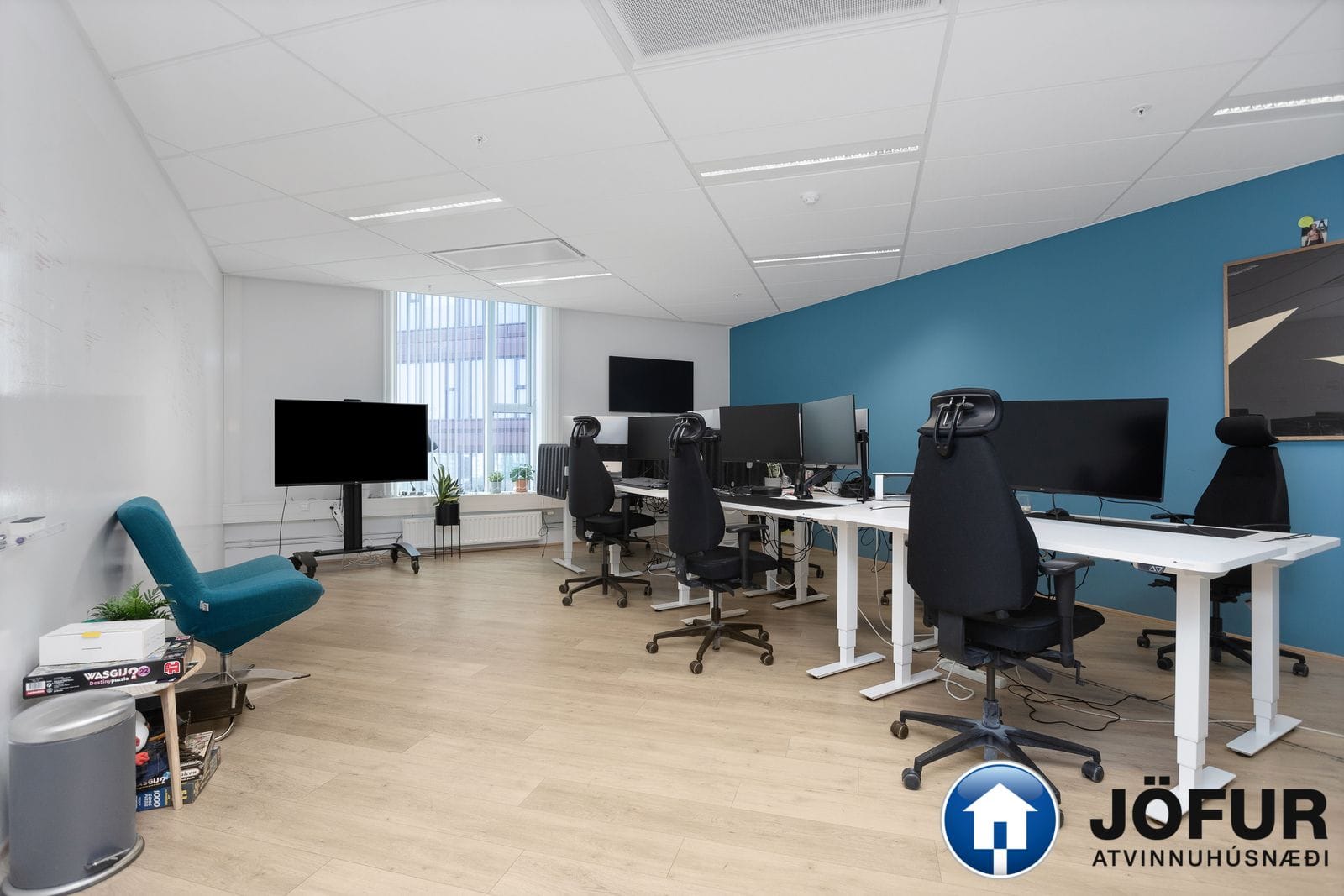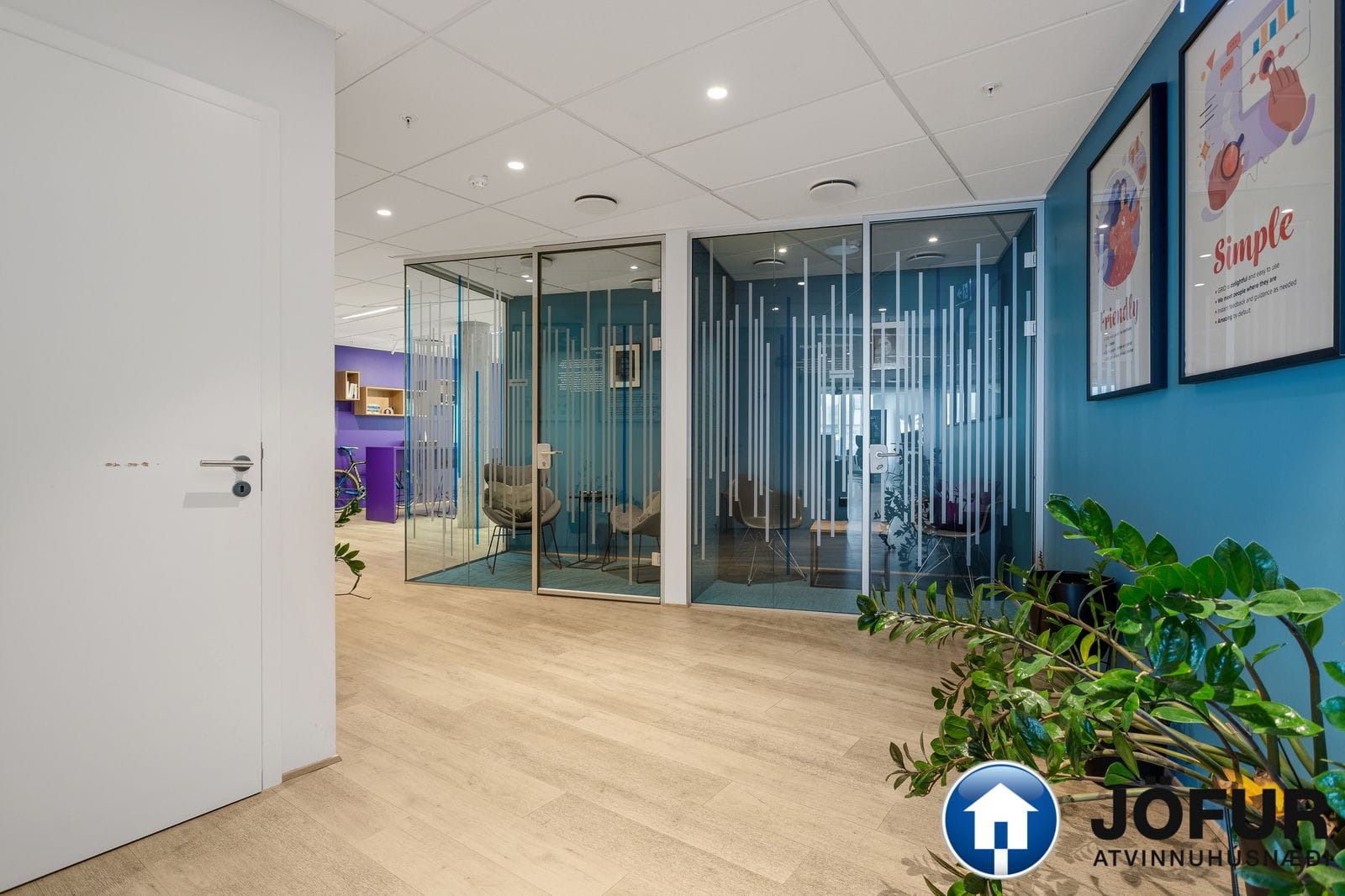 Skiptist upp í ca. 10 lokaðar skrifstofur, 2-3 stór fundaherbergi, um 8 mjög stórar skrifstofur/opin vinnurými, næðisrými, eldhús, snyrtingar.