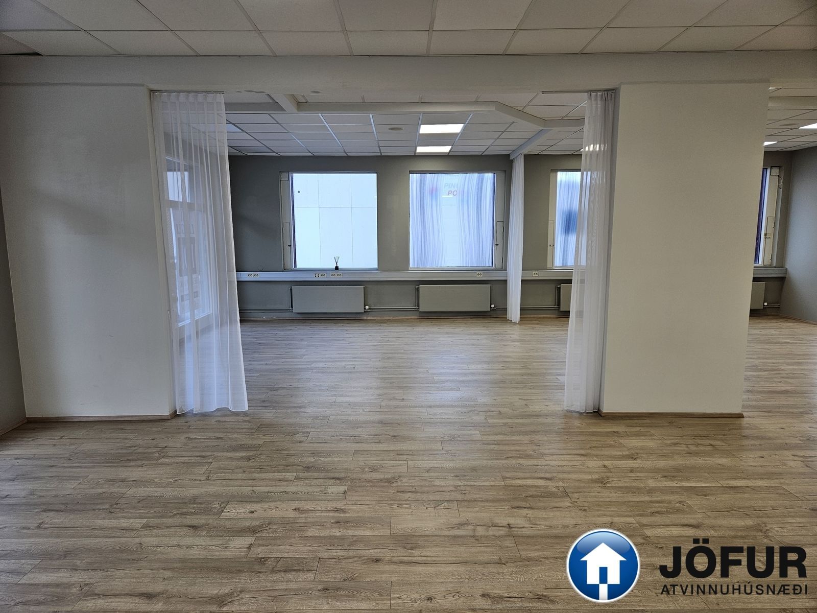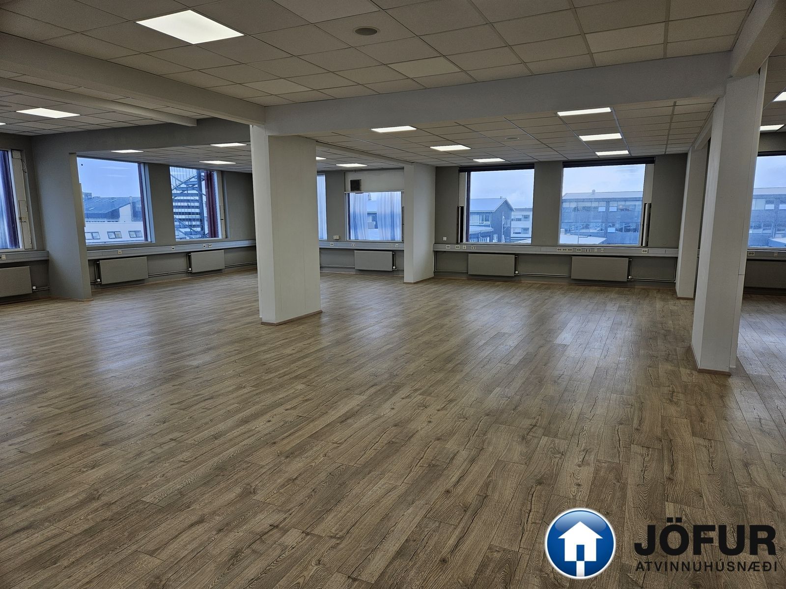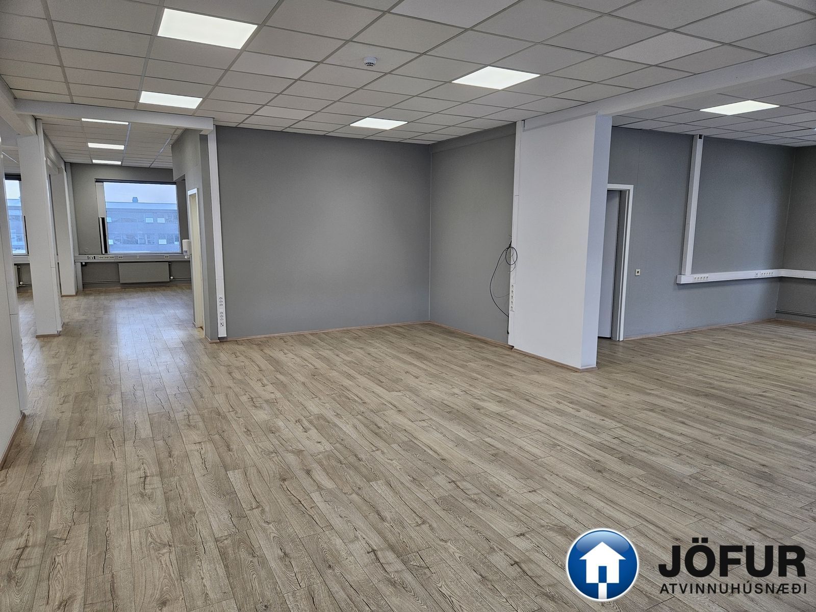 Nánari lýsing. Húsnæðið er að langstærstum hluta opið rými, eldhús/ kaffistofa með innréttingu og stórum borðkrók ásamt snyrtingu. Á gólfi er parket. Kerfisloft og lýsingi í loftum. VSK leggst ekki við leiguverðið. Hægt er að skipta húsnæðinu upp í 2 aðskildar útleigueiningar sem verða þá annars vegar um 230 m² og hins vegar um 125 m². Næg bílastæði eru á lóð hússins. Starfsmenn Jöfurs sýna húsnæðið.