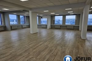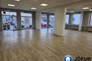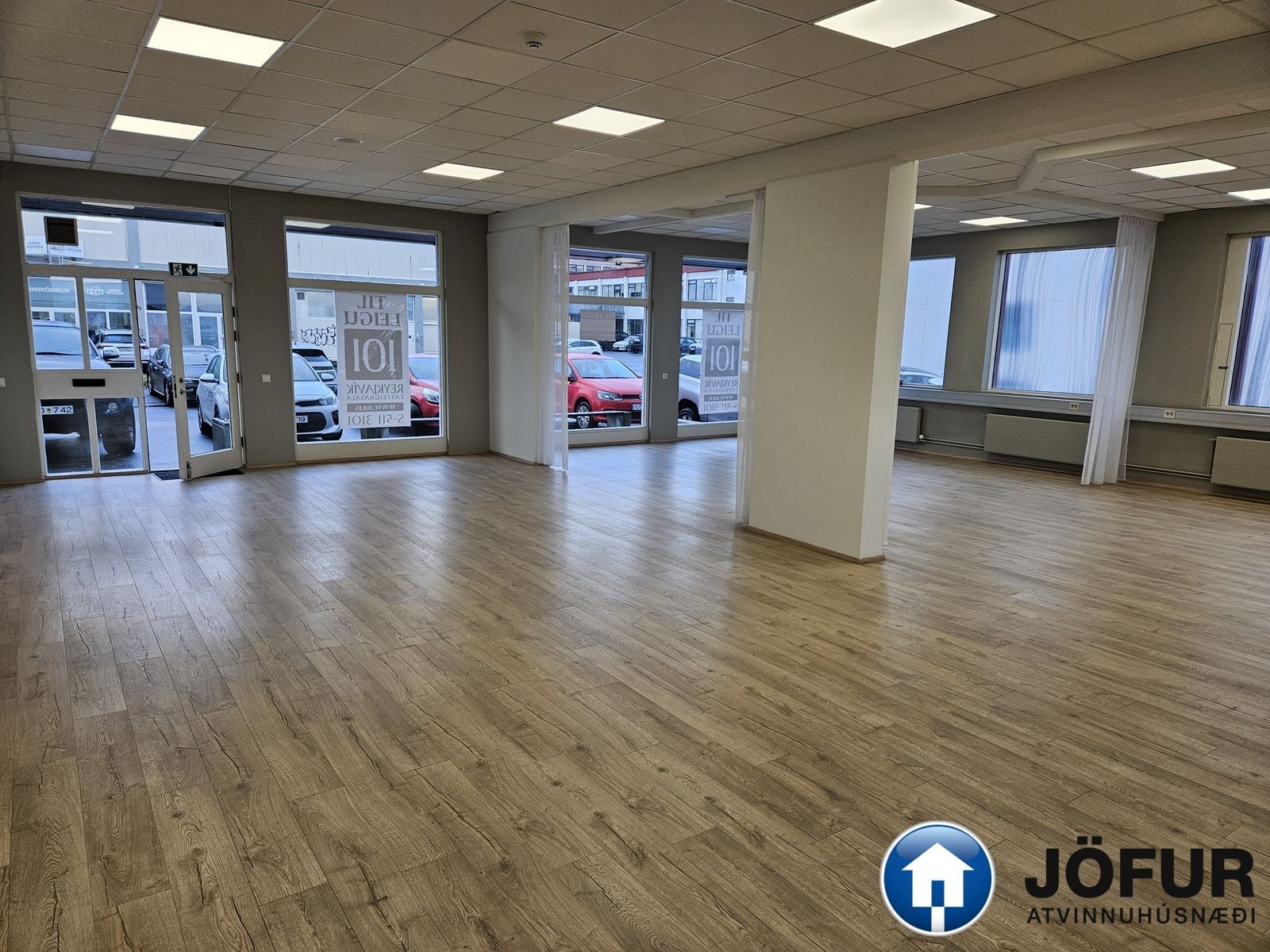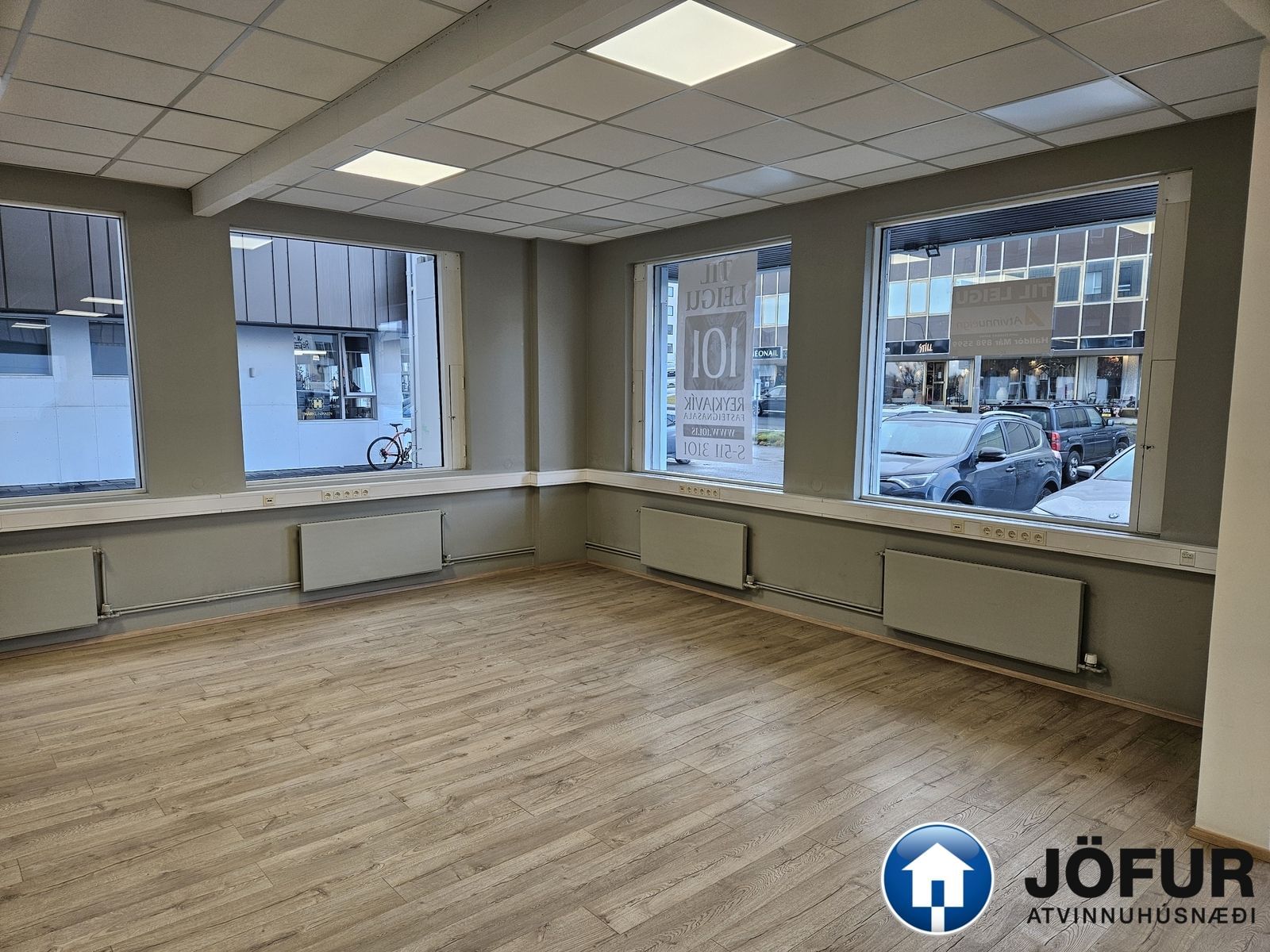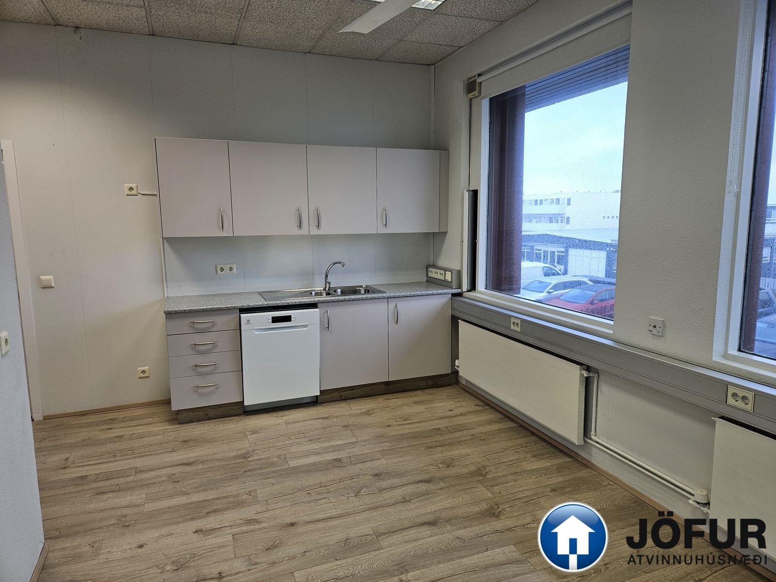 Nánari lýsing. Húsnæðið er að langstærstum hluta opið rými, eldhús/ kaffistofa með innréttingu og stórum borðkrók ásamt snyrtingu. Á gólfi er parket. Kerfisloft og lýsingi í loftum. VSK leggst ekki við leiguverðið. Hægt er að skipta húsnæðinu upp í 2 aðskildar útleigueiningar sem verða þá annars vegar um 230 m² og hins vegar um 125 m². Næg bílastæði eru á lóð hússins. Starfsmenn Jöfurs sýna húsnæðið.