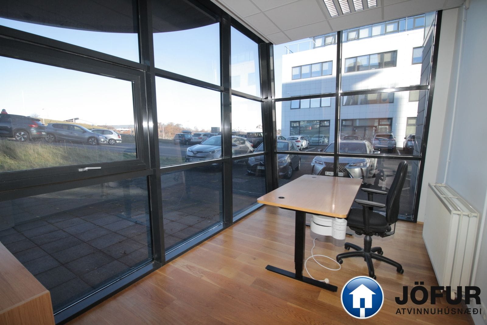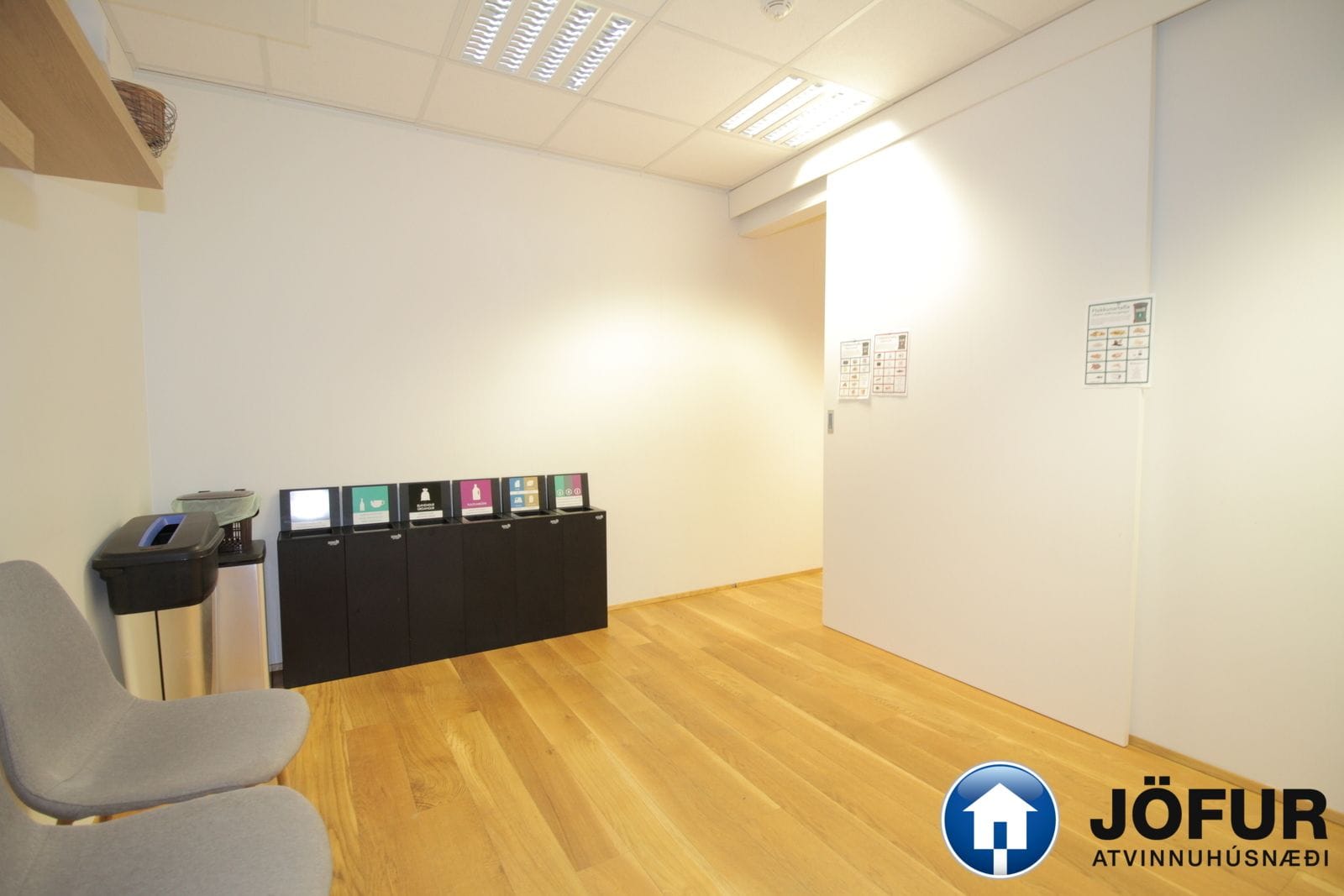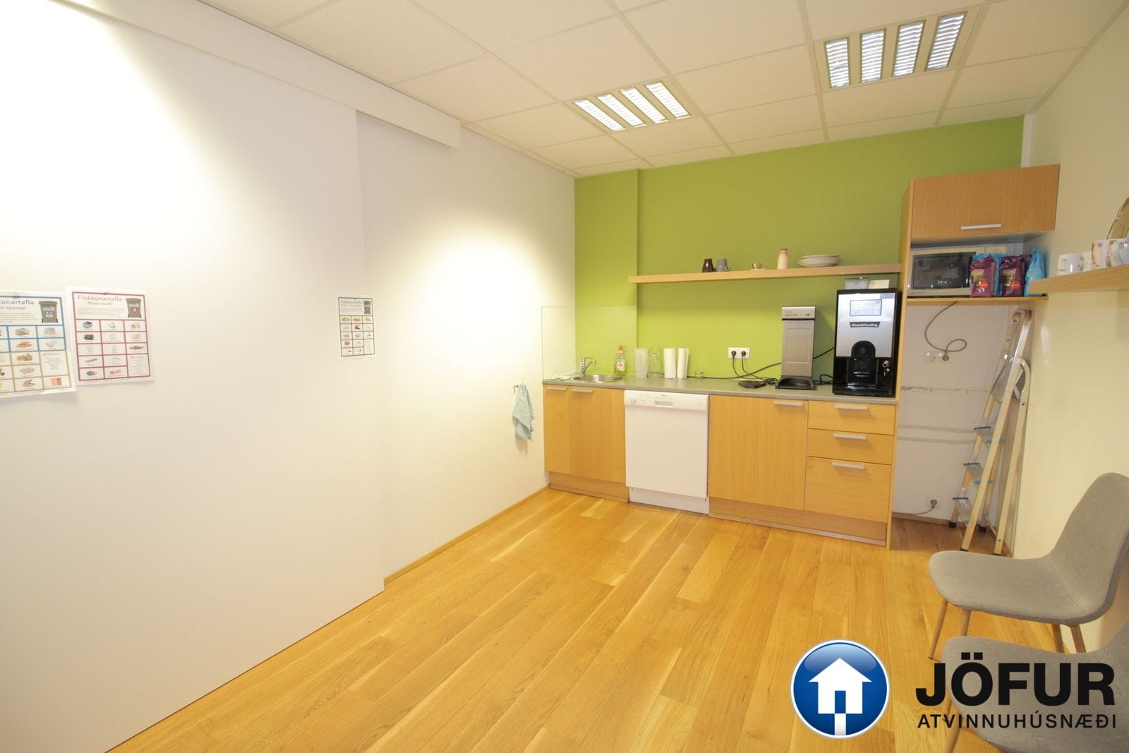 Húsnæðið skiptist í opið verslunar/þjónusturými, fundarherbergi, þrjár skrifstofur, kaffistofu og tvö salerni. Auðvelt er að taka niður skrifstofur og stækka þannig verslunarrýmið.