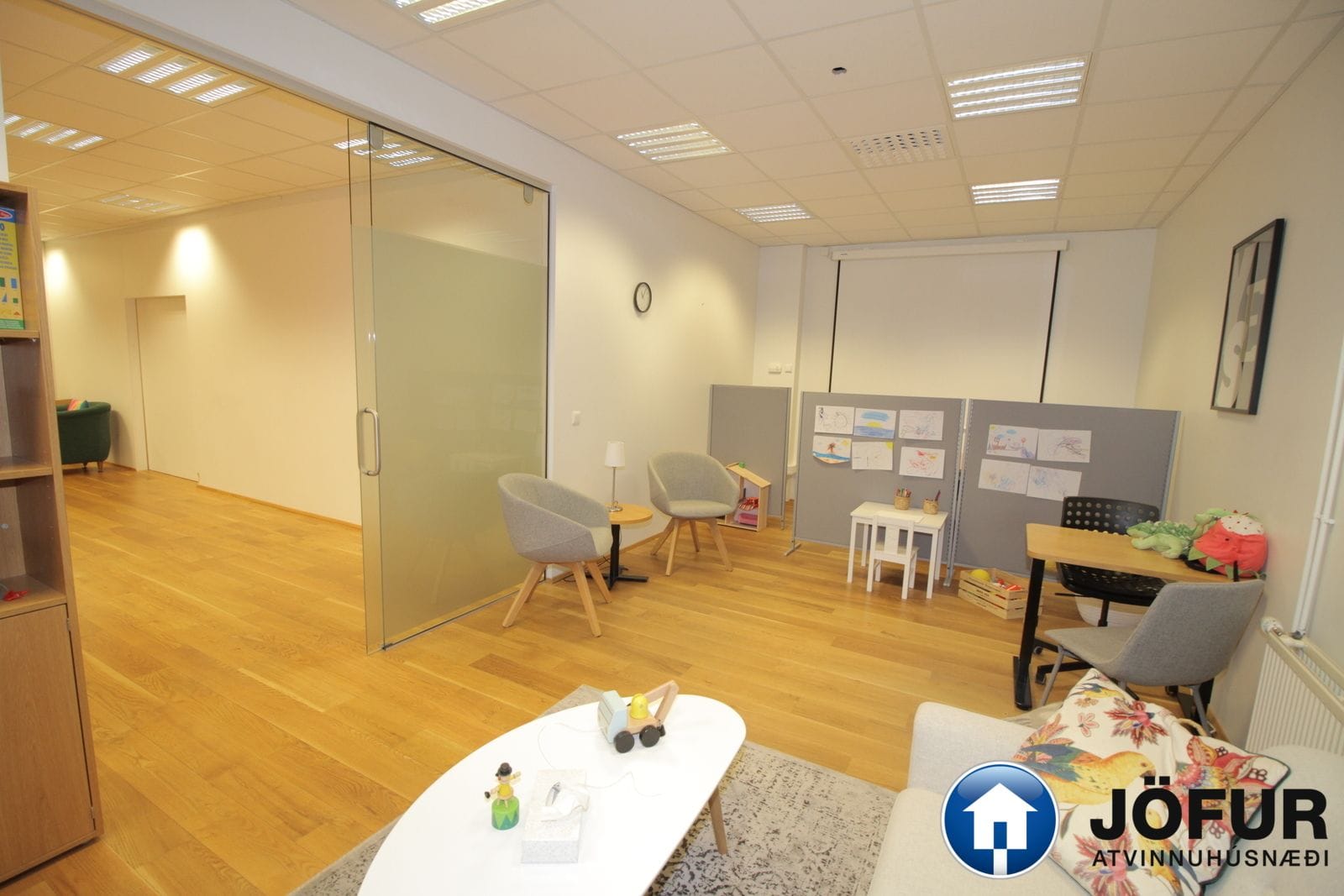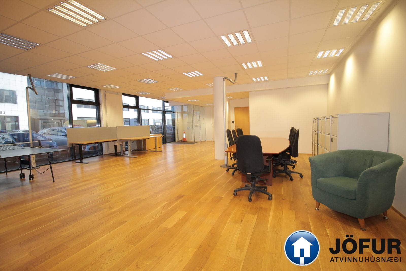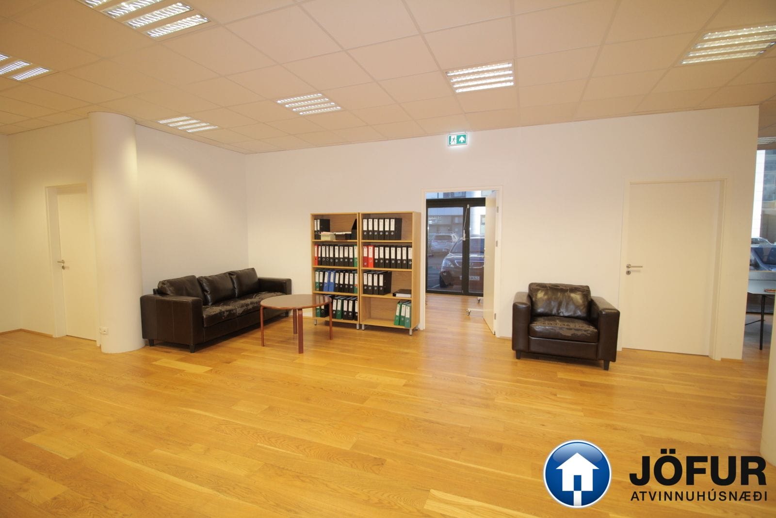 Húsnæðið skiptist í opið verslunar/þjónusturými, fundarherbergi, þrjár skrifstofur, kaffistofu og tvö salerni. Auðvelt er að taka niður skrifstofur og stækka þannig verslunarrýmið.
