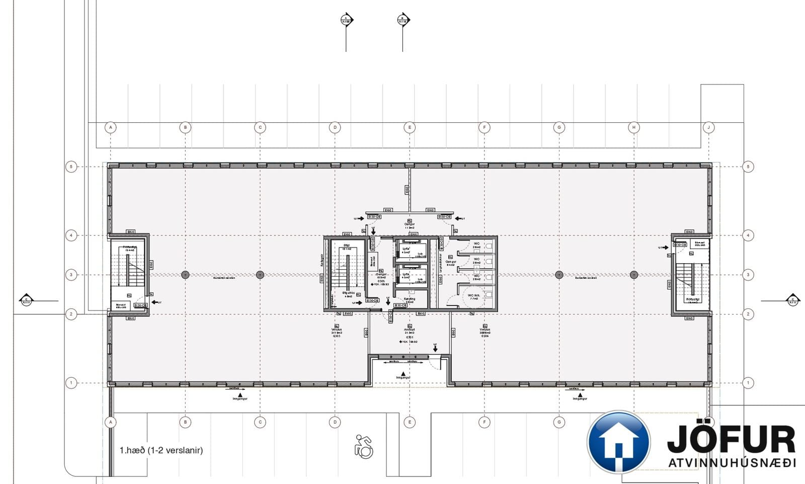 Aðkomuhæðin er hugsuð sem verslunar- eða þjónustuhæð en þar væri jafnframt hægt að vera með skrifstofur eða mötuneyti fyrir húsið.