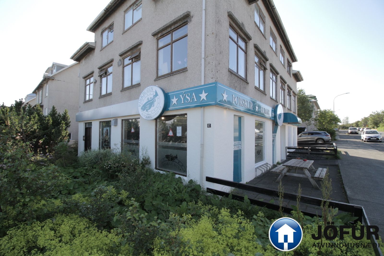 Í húsæðinu hefur verið rekin fiskbúð í áratugi. Núverandi rekstraraðili hefur leigt húsnæðið síðan 2024. Gildistími leigusamnings er til 31.8.2027. Húsnæðið er skráð á tveimur fastanúmerum og seljast eignirnar saman. Eign 0101 er 94,0 m² og eign 0102 er 52,8 m². Opið er á milli eignanna í dag. Skiptist upp í afgreiðslusal/verslun, starfsmannaaðstöðu, skrifstofu, geymslu. Til staðar eru tveir kælar. Ekki VSK húsnæði.