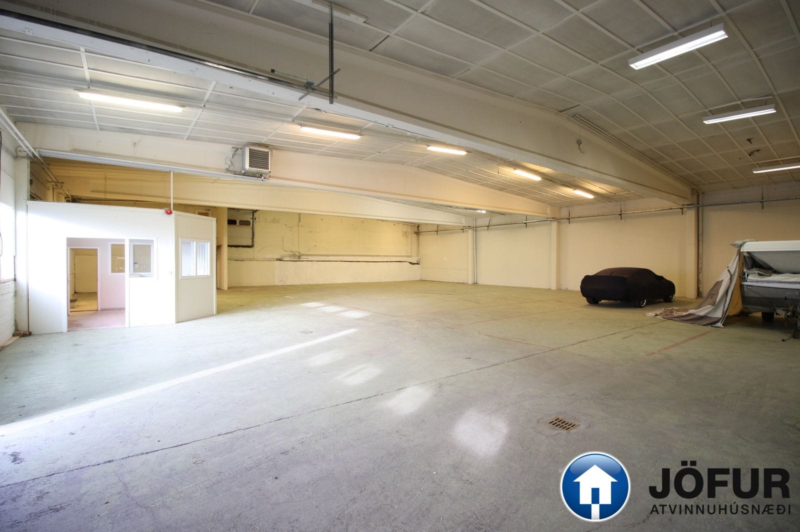 Húsnæðið er að mestu einn opinn lagersalur. Merkt 01-01 á teikningu. VSK leggst ekki við leigufjárhæðina.