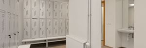 Í sameign í kjallara eru hjólreiðageymslur og búningsaðstaða með sturtum. Úr bílageymslu ganga svo tvær lyftur. Mikið er af bílastæðum í kjallara sem er samfelldur undir öllu hverfinu.
