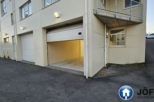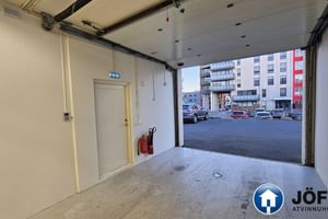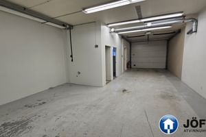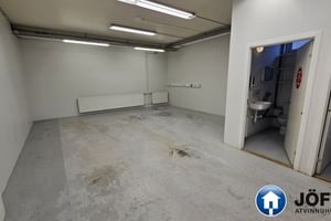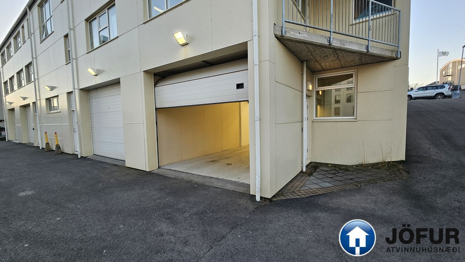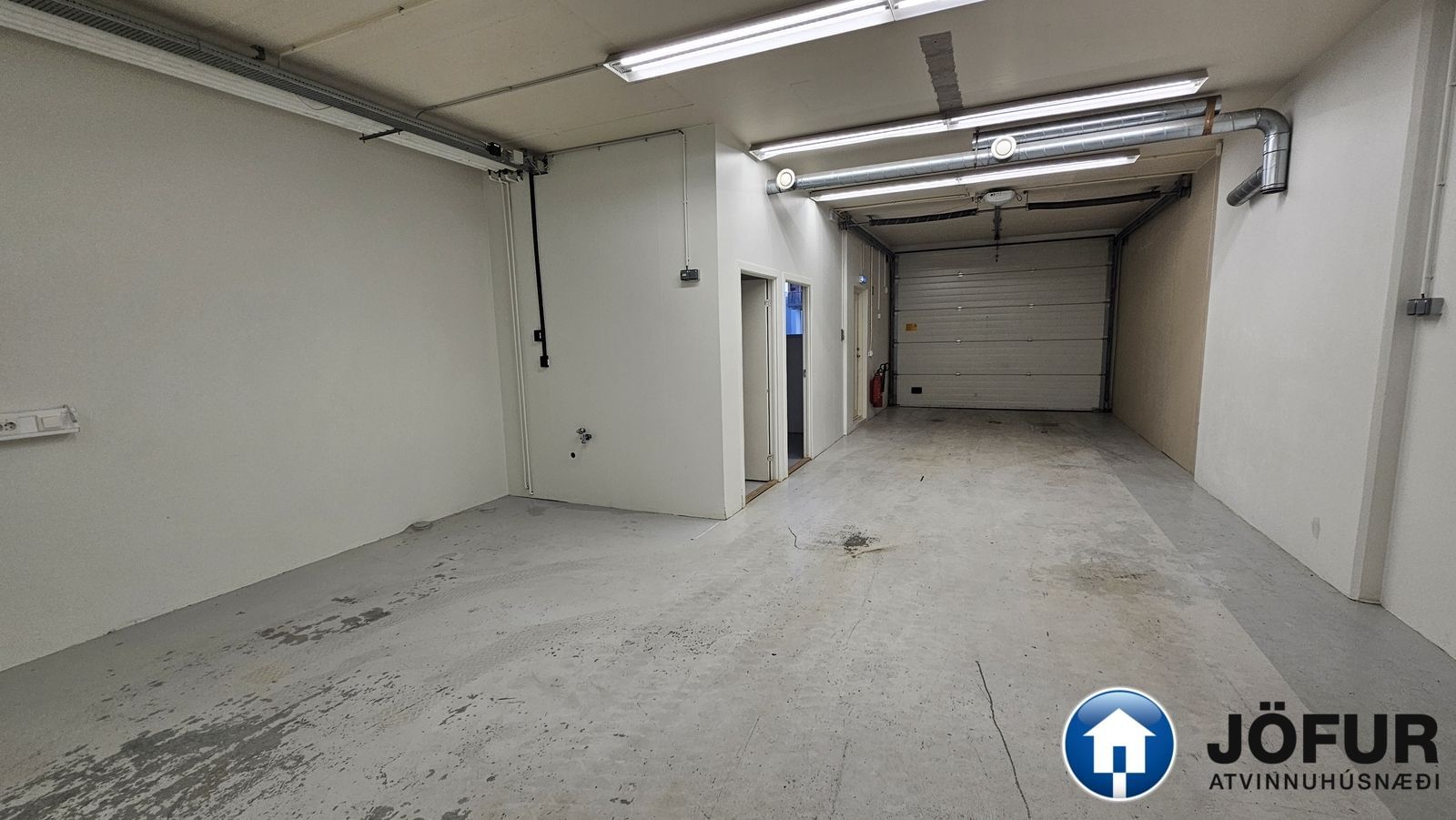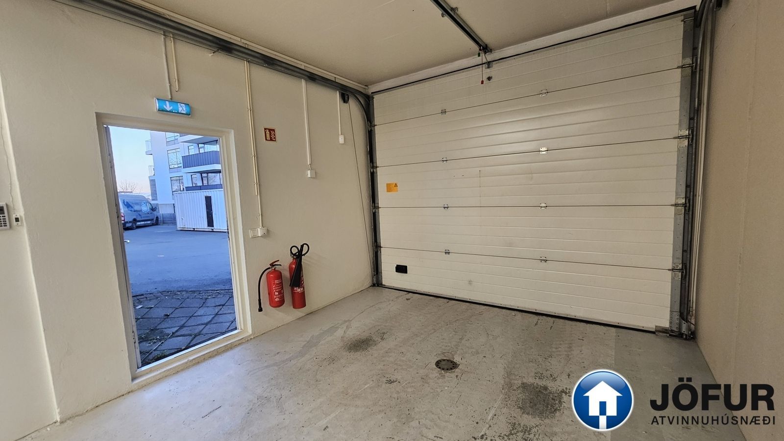 Ein innkeyrsludyr er á húsnæðinu og inngöngudyr. Herbergi með glugga og salerni innan rýmis. Lofthæð er um 3 metrar.
