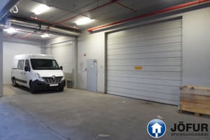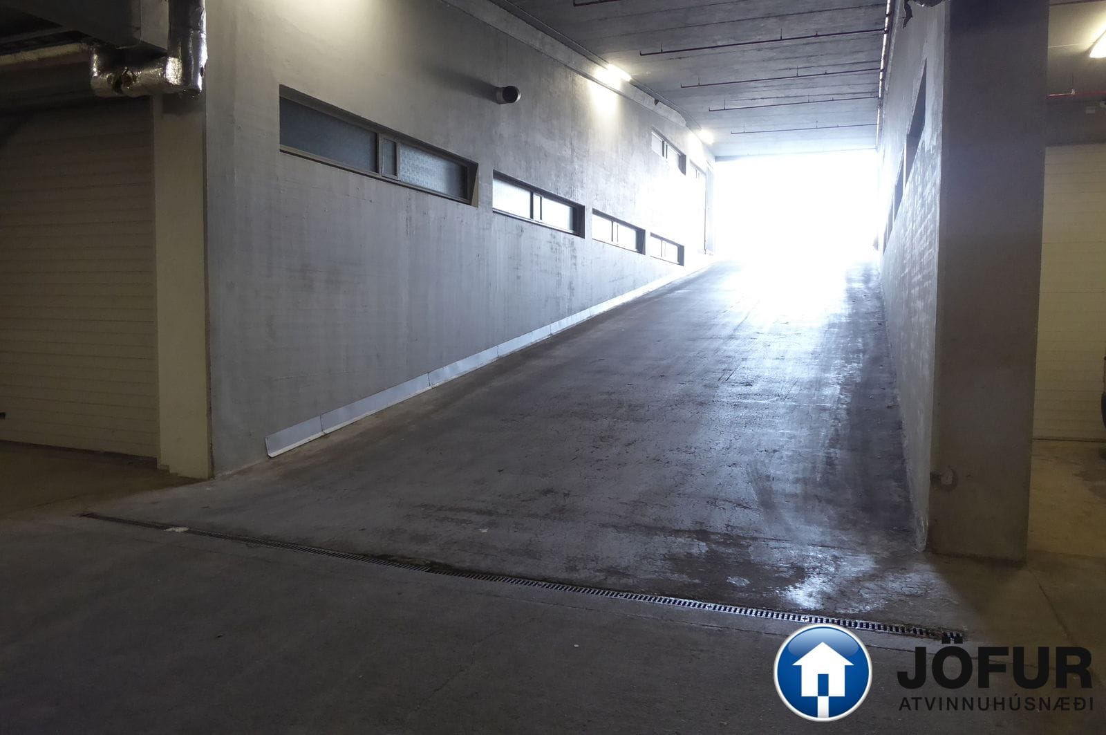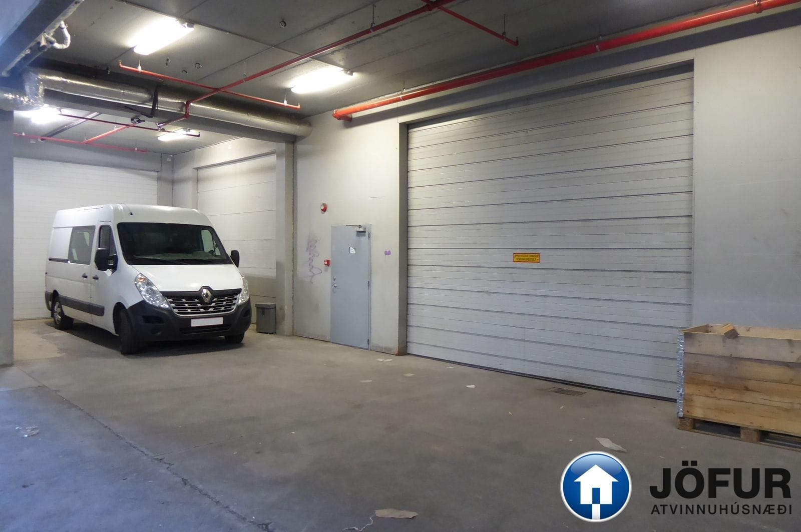 Rýmið býður upp á góða lofthæð og gott aðgengi er í kjallarann niður ramp. Geymsla/lager á frábærum stað í bænum. VSK leggst við leigufjárhæðina.