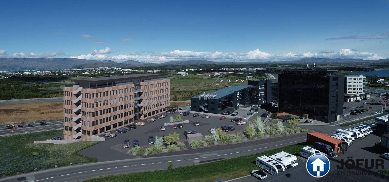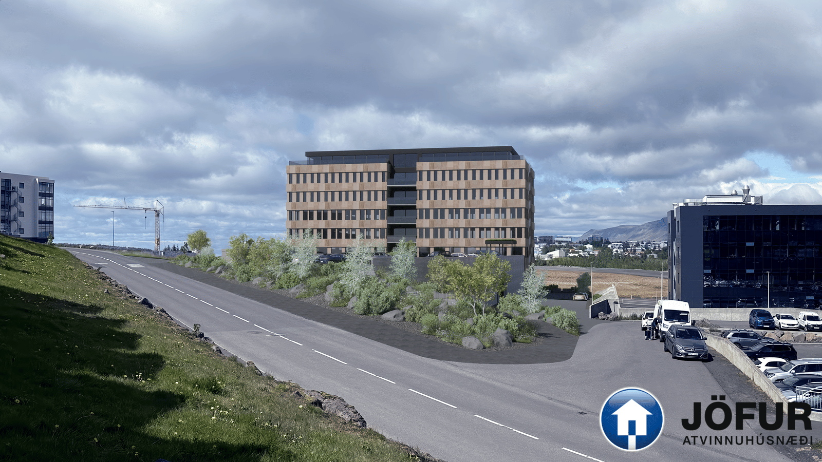 Gert er ráð fyrir um 104 bílastæðum á lóðinni. Að auki verður tvöfaldur bílakjallari með 46 bílastæðum, aðgengilegur frá austurhlið byggingarinnar.