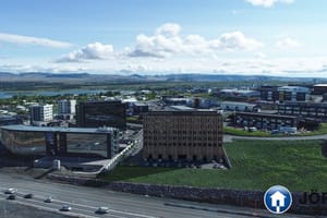 Lóðin nýtur gífurlegs útsýnis til norðurs í átt að Esjunni, yfir Elliðarárdalinn og í átt að Búrfelli.