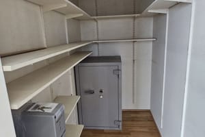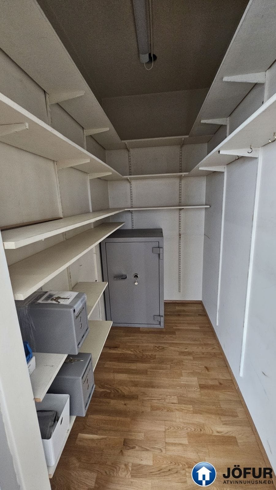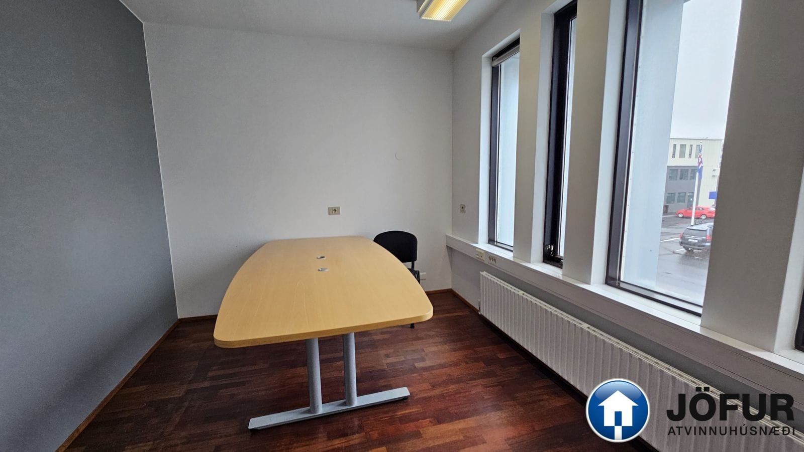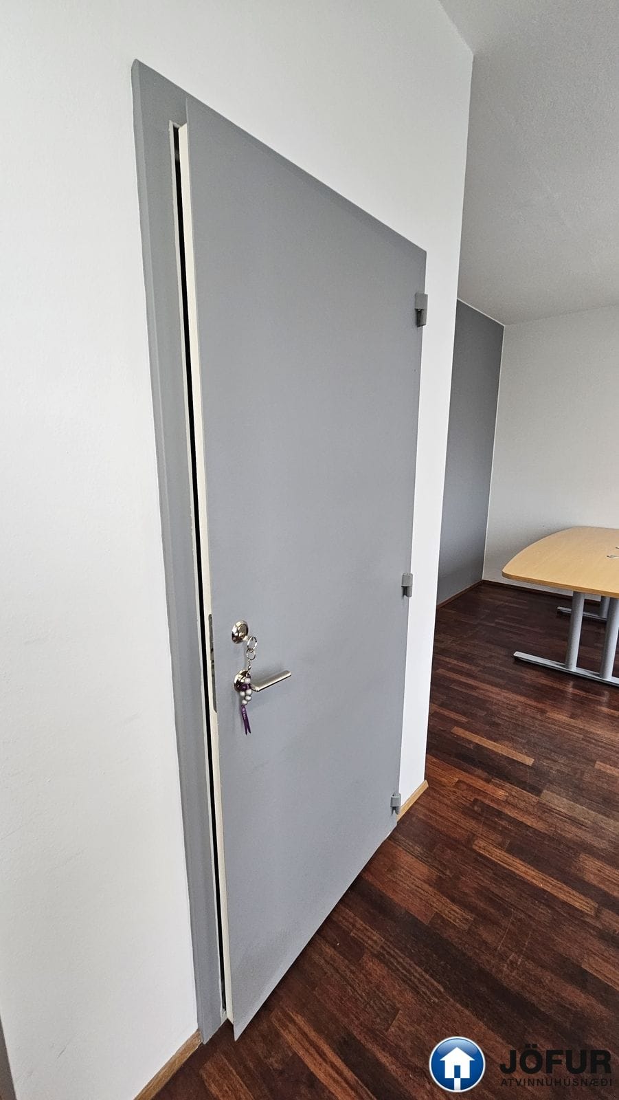 Stór skrifstofa með peningaskáp. Aðgangur að eldhúsi og snyrtingum í sameign.