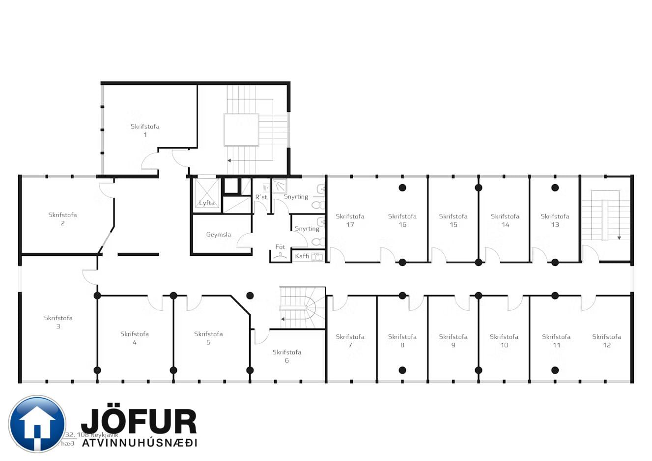 Sameiginlegur kaffikrókur og salerni eru á öllum hæðum. Ekki vsk húsnæði.