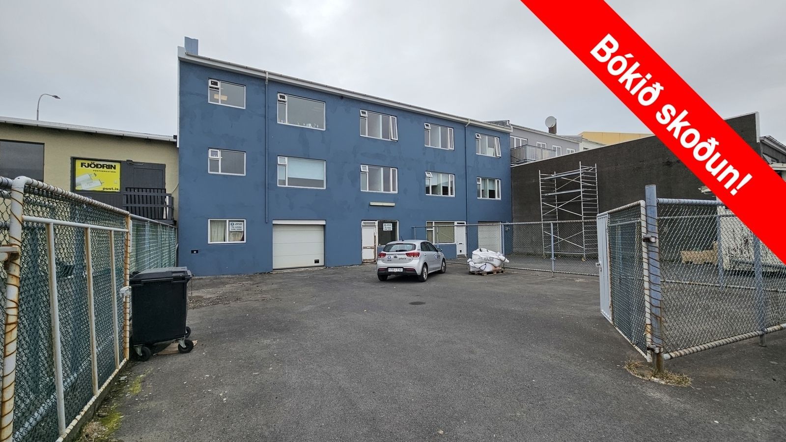 Afgirt malbikað bílaplan er við húsnæðið.