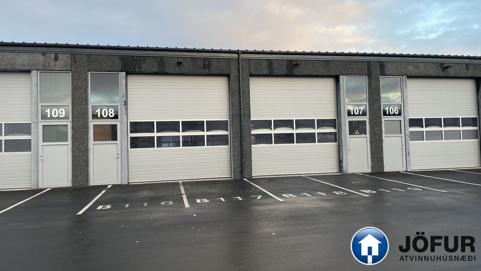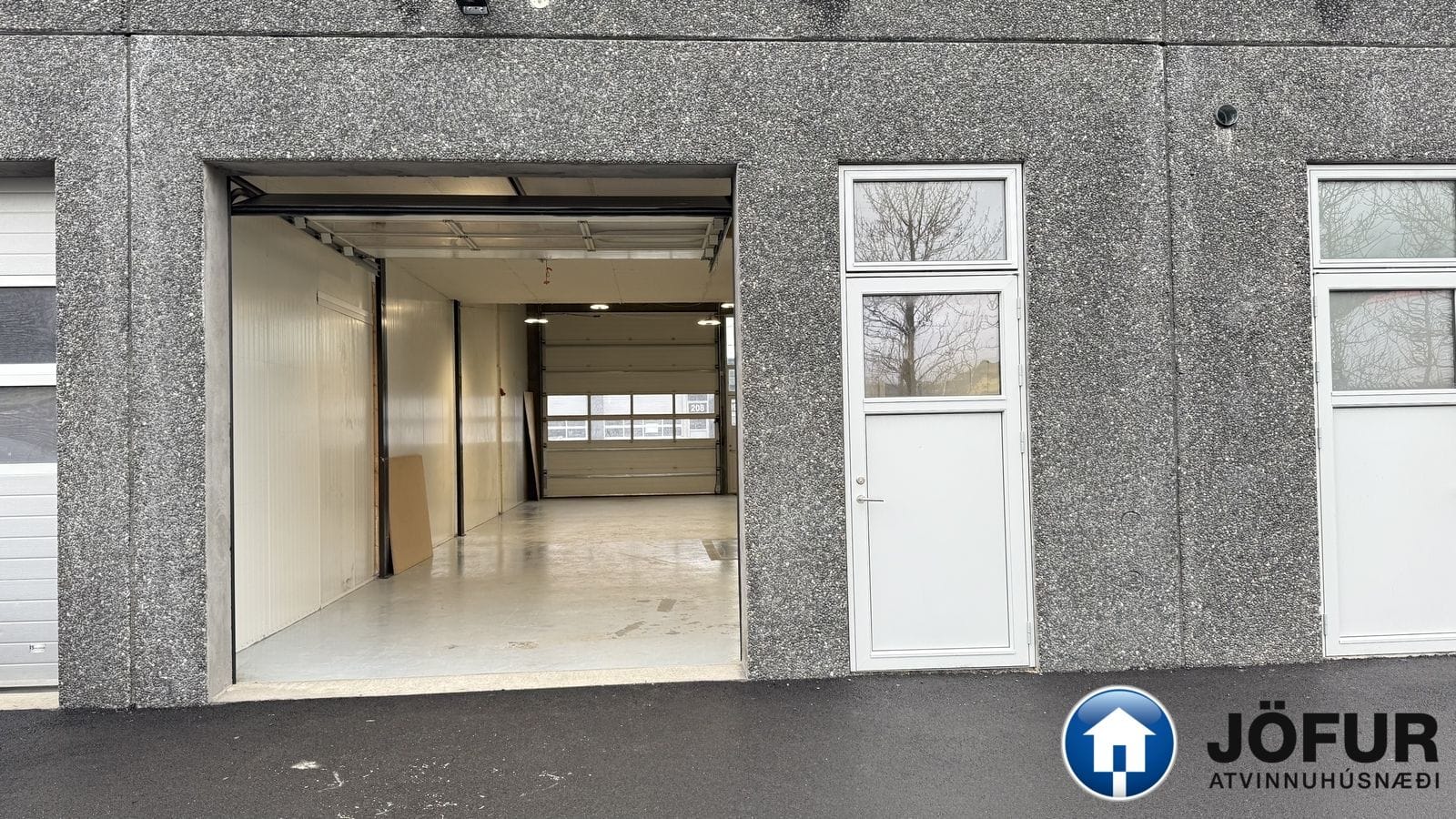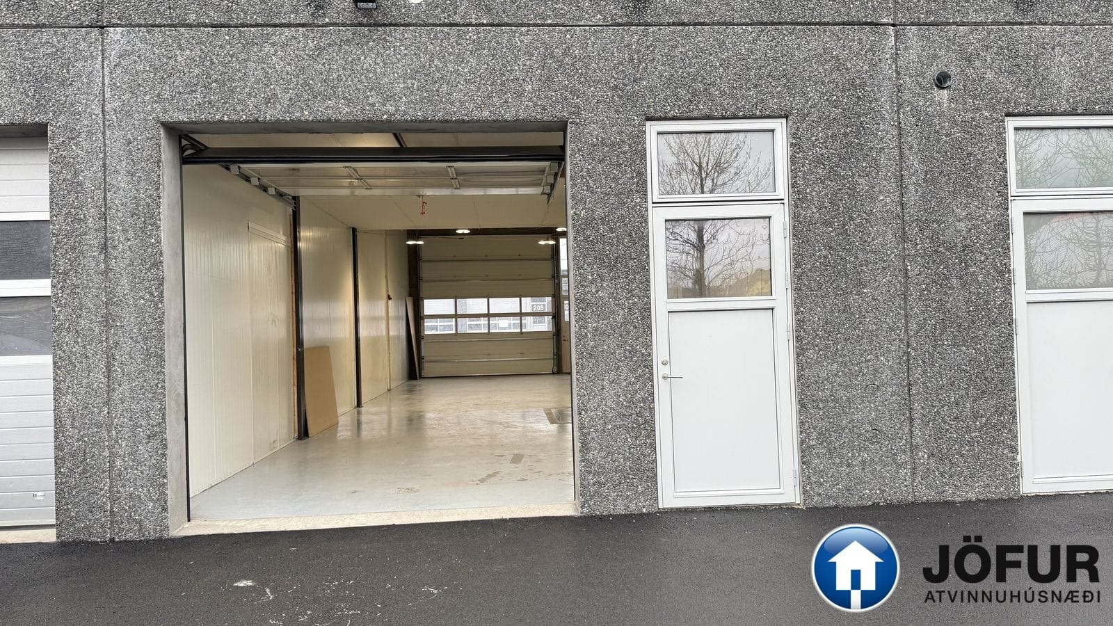 Húsið eru frágengið að utan, bæði þak og veggir ásamt þakrennum og niðurföllum. Innkeyrsluhurðir með rafmagnsopnun, á framhlið sem er 4X4 og á bakhlið er 3X3. Útiljós eru á langhliðum húsanna við/yfir innkeysluhurðum sem lýsa upp bílaplan. Bílaplan er fullfrágengið malbikað með niðurföllum, olíuskilju og sorpaðstöðu.