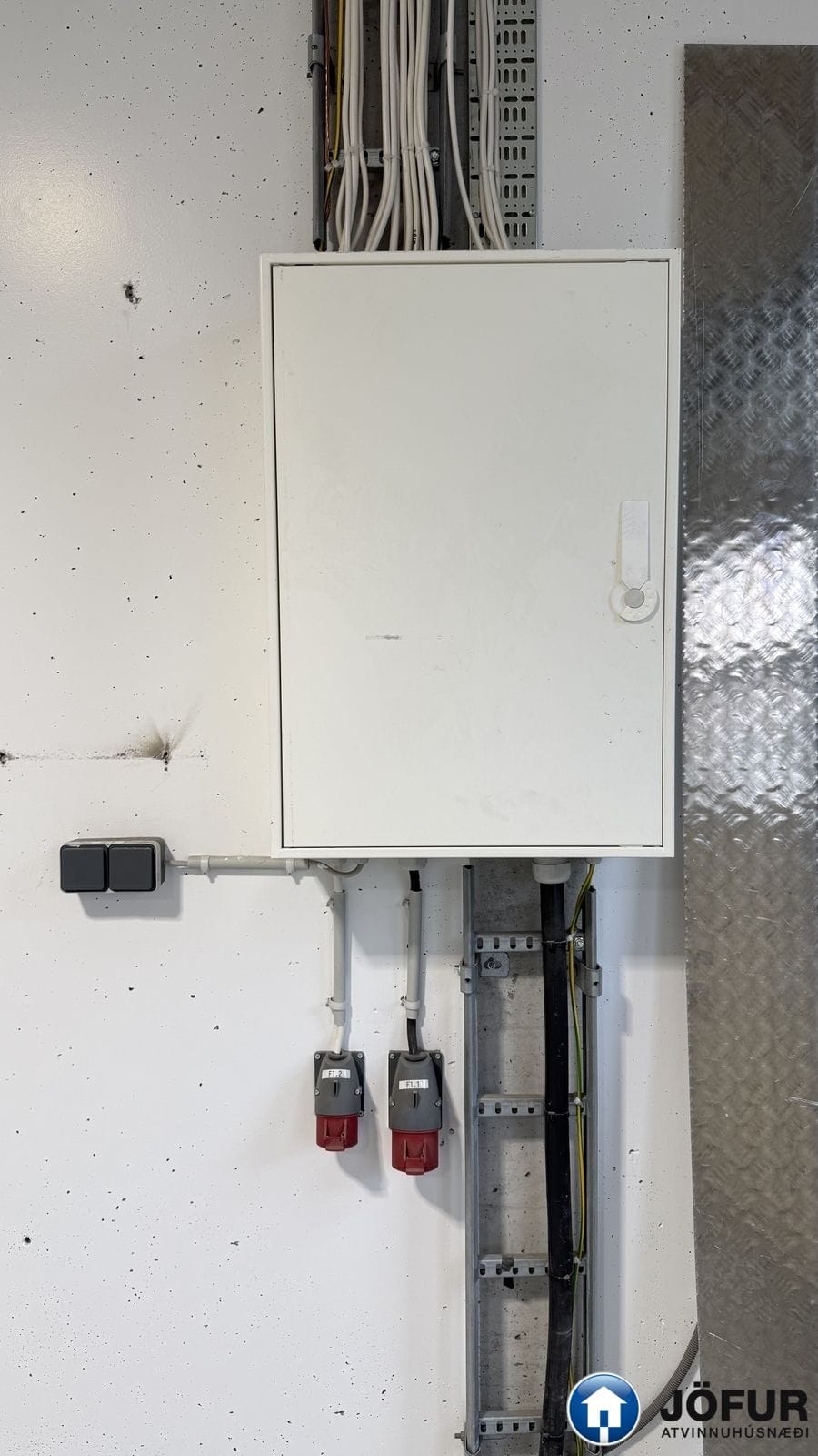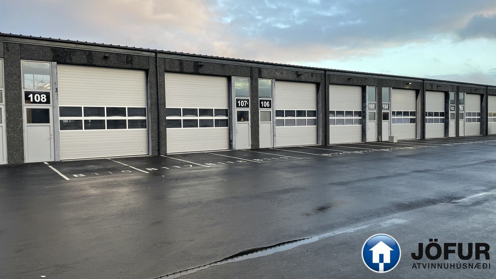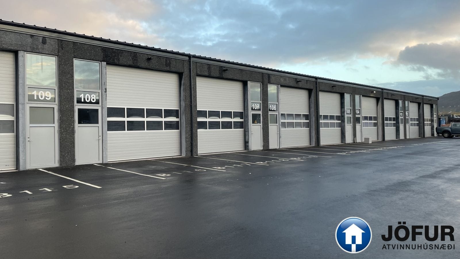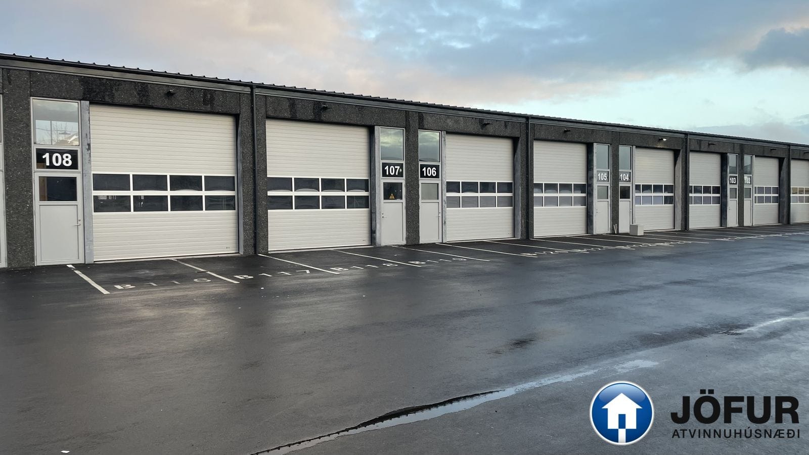 Húsið eru frágengið að utan, bæði þak og veggir ásamt þakrennum og niðurföllum. Innkeyrsluhurðir með rafmagnsopnun, á framhlið sem er 4X4 og á bakhlið er 3X3. Útiljós eru á langhliðum húsanna við/yfir innkeysluhurðum sem lýsa upp bílaplan. Bílaplan er fullfrágengið malbikað með niðurföllum, olíuskilju og sorpaðstöðu.