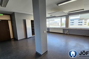 Þrjú lokuð herbergi og opinn salur með kaffikrók. Salerni eru í sameign. Ekki vsk húsnæði.