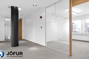 Húsnæðið skiptist upp í þrjú stór vinnurými, fundarherbergi og geymslurými. Kaffistofa og salerni eru í sameign.