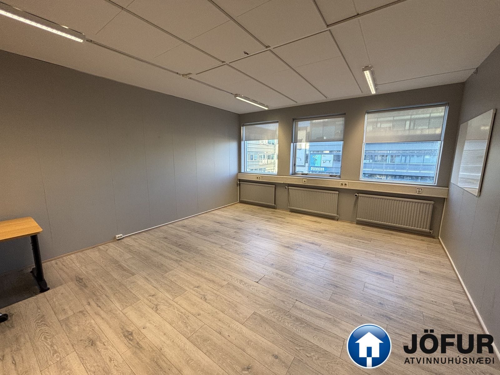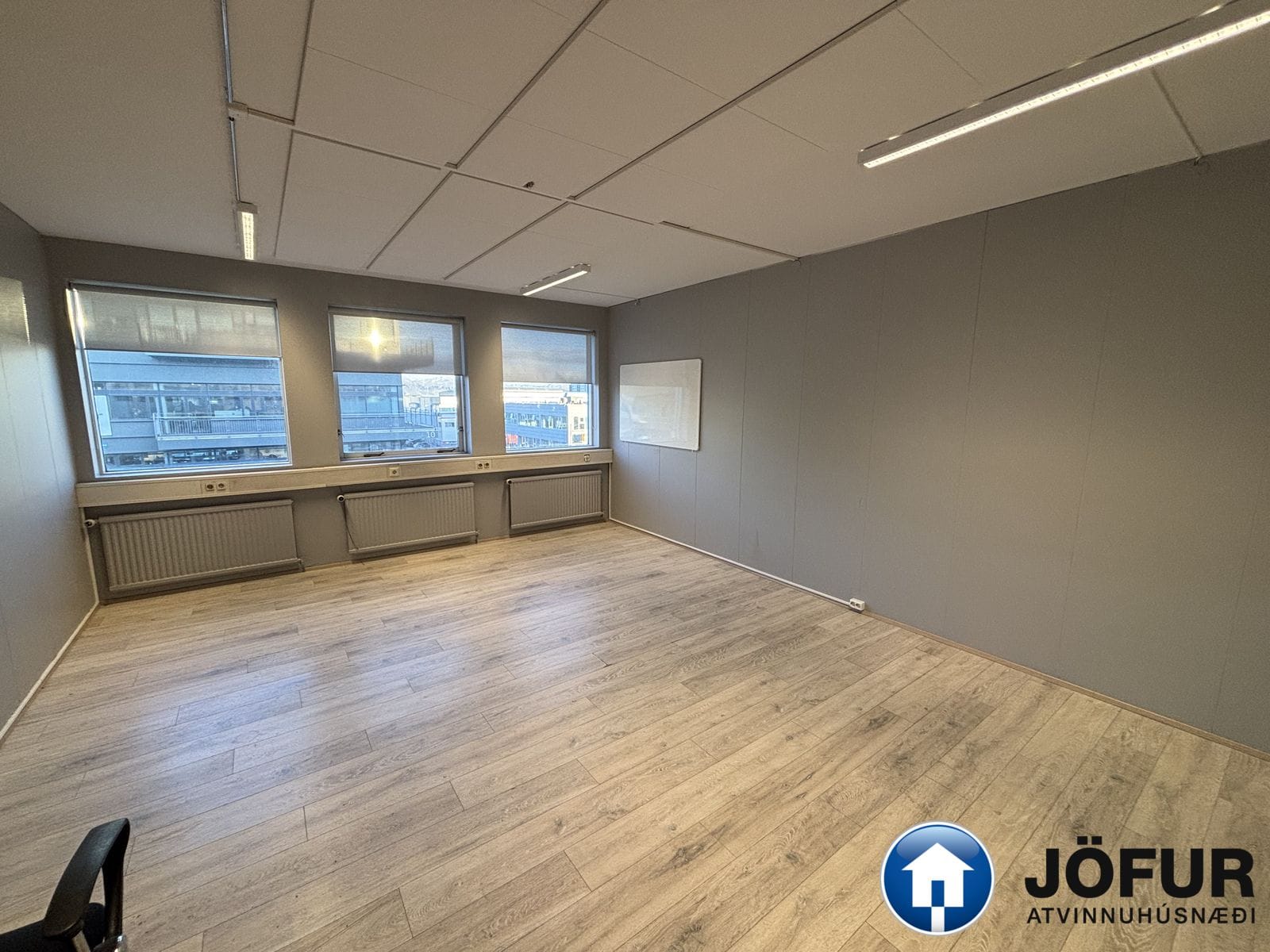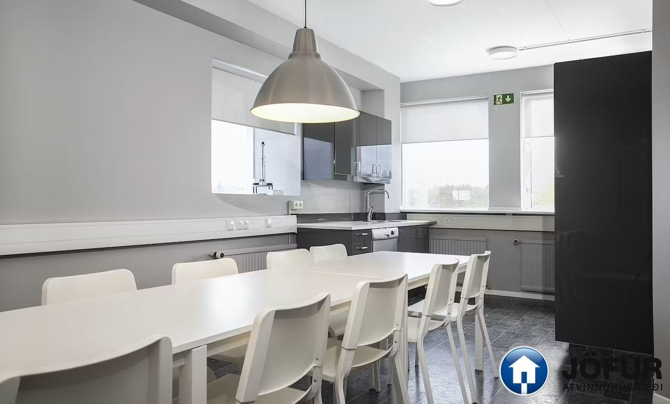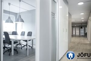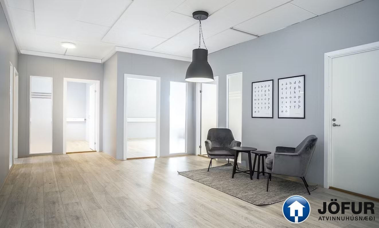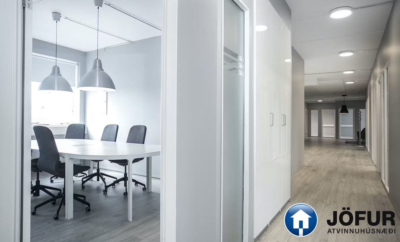 Skrifstofan er leigð án húsgagna en fundarherbergin eru fullinnréttuð og þá eru sömuleiðis setsvæði.