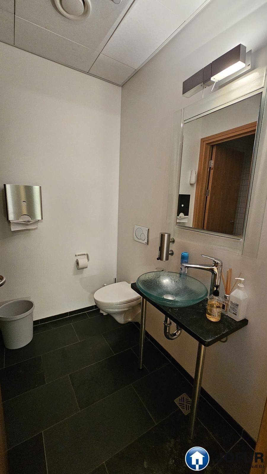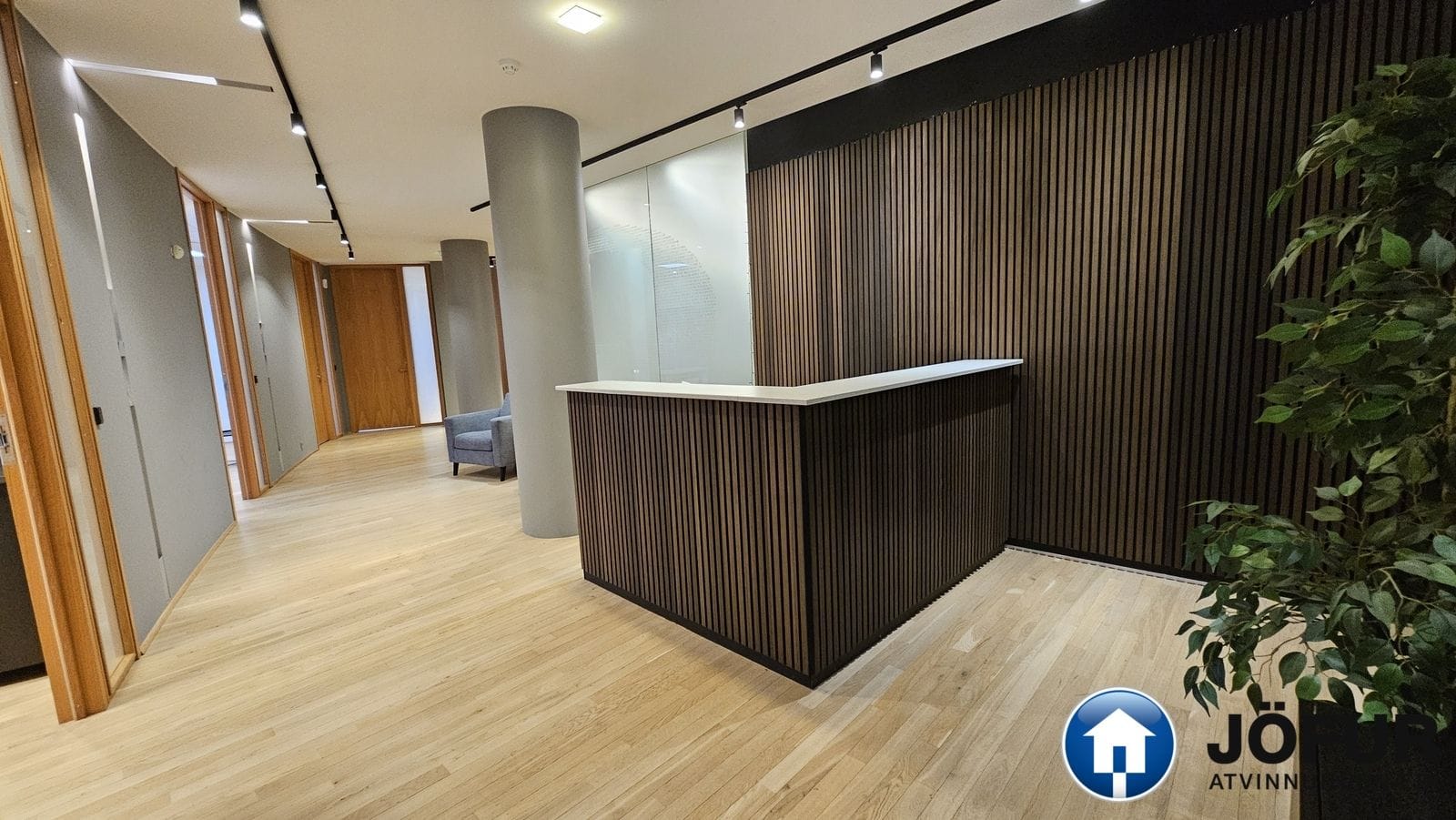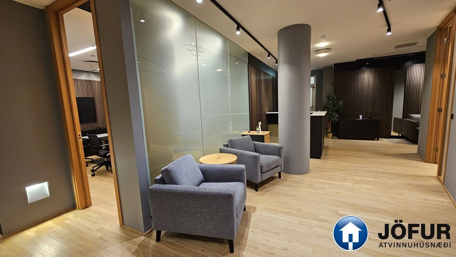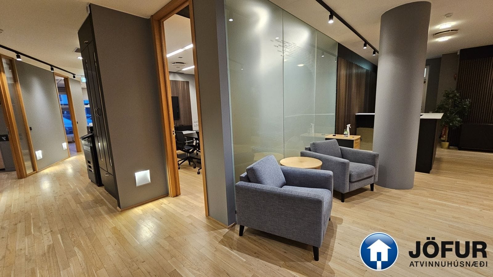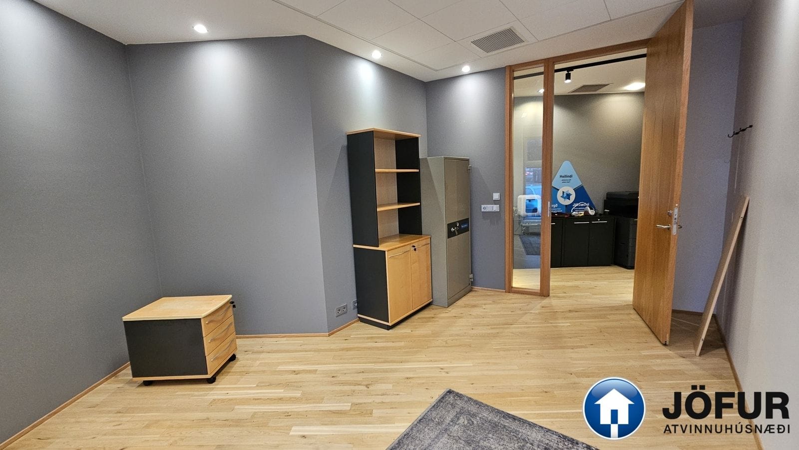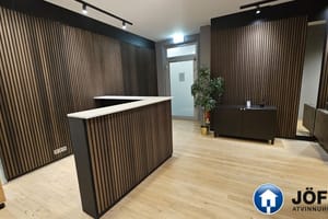 Nánari lýsing: Húsnæðið skiptist upp í móttöku, 6-7 lokaðar skrifstofur, fundaherbergi, kaffistofu, 2 snyrtingar, önnur þeirra með sturtu. Á gólfum er parket. Kerfisloft og lýsing í loftum. Innréttingar rýmisins hafa verið endurnýjaðar. Öflug loftræsing er í húsnæðinu. Gengið er beint inn á hæðina frá bílastæði bakatil. Bílakjallari er undir húsinu. VSK leggst ekki við leigufjárhæðina.