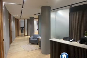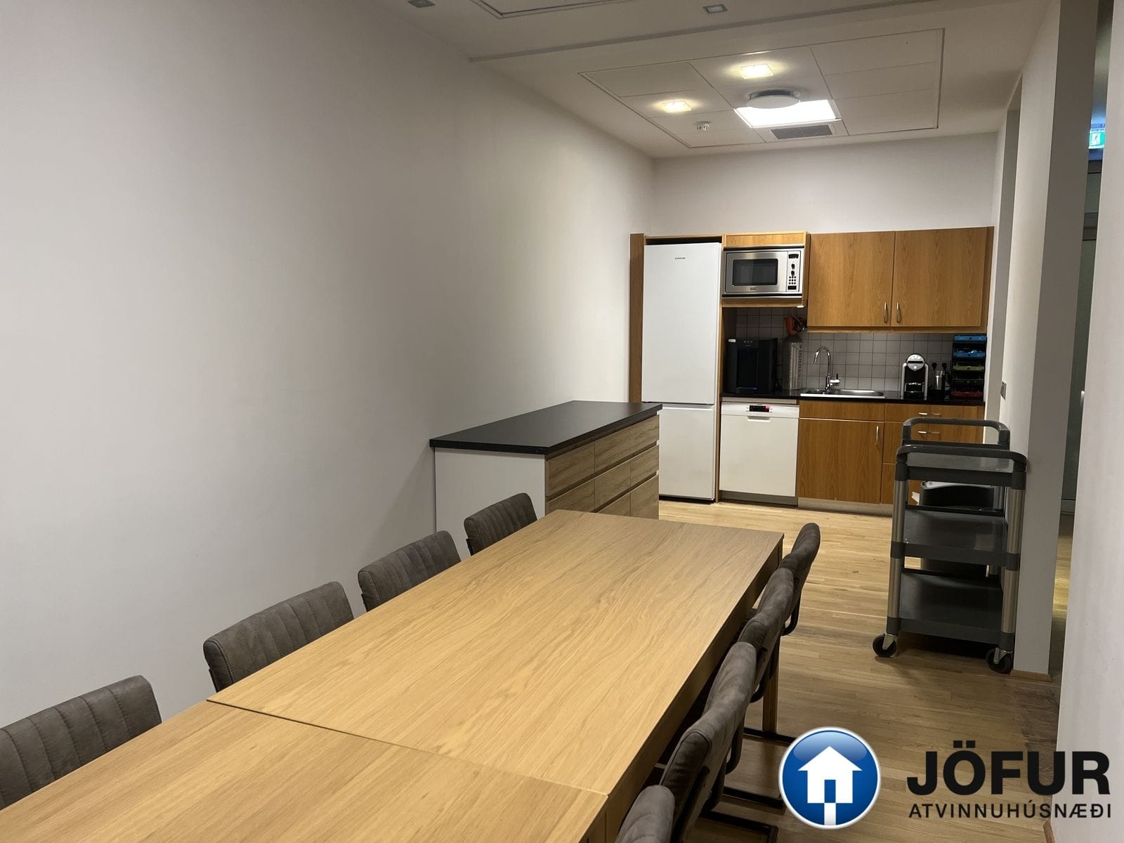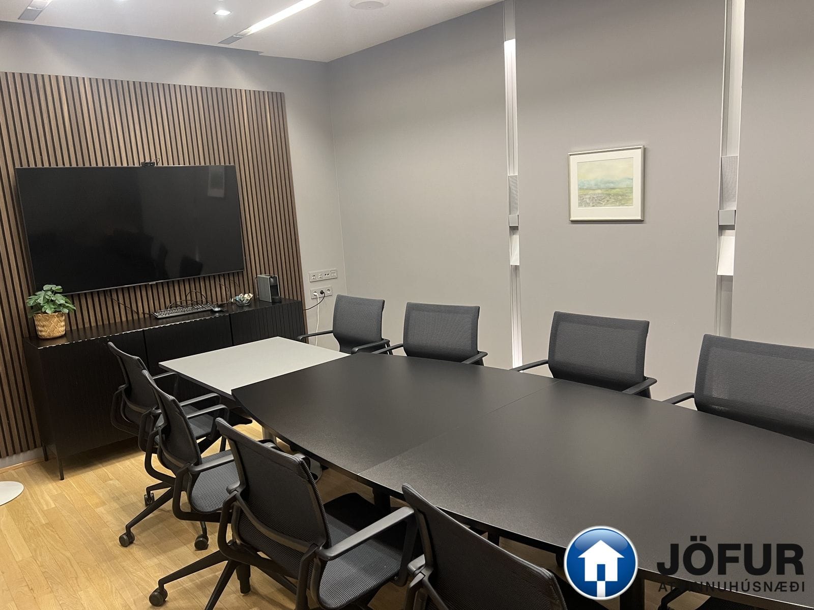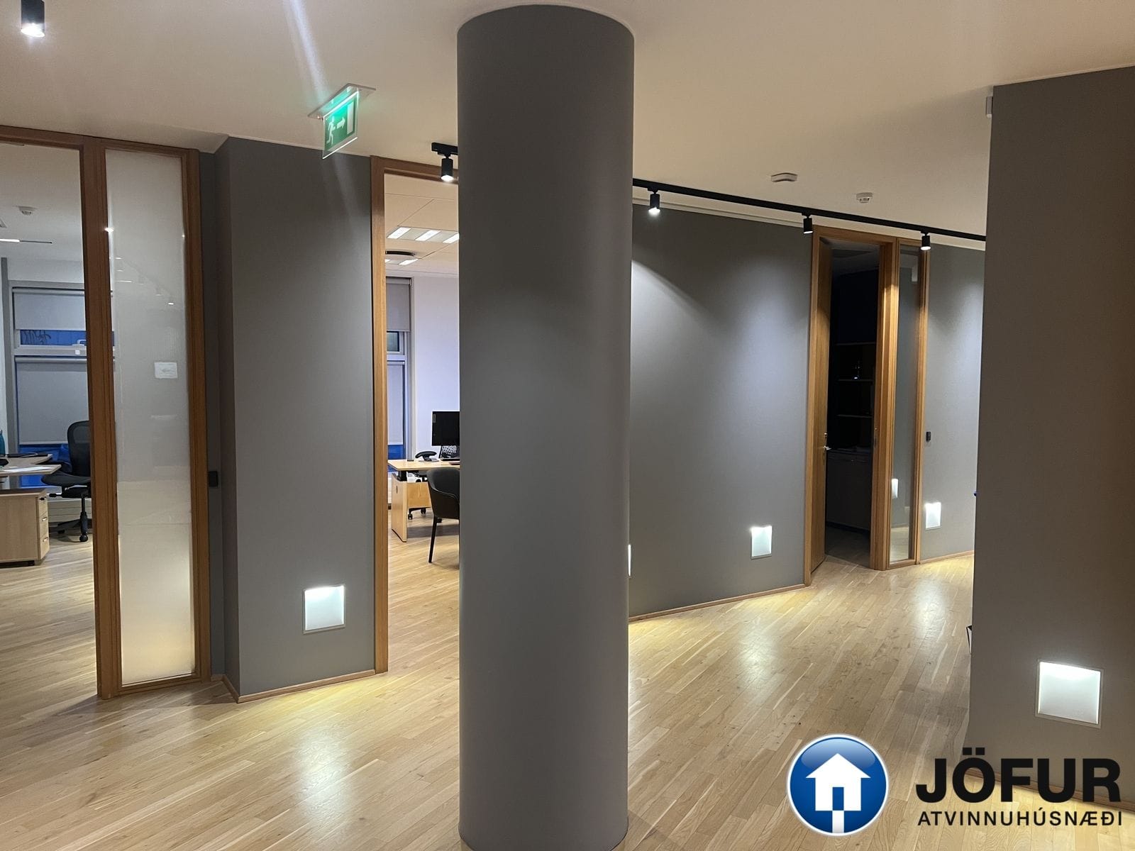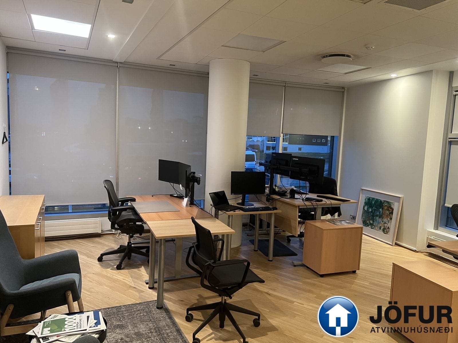 Nánari lýsing: Húsnæðið skiptist upp í móttöku, 6-7 lokaðar skrifstofur, fundaherbergi, kaffistofu, 2 snyrtingar, önnur þeirra með sturtu. Á gólfum er parket. Kerfisloft og lýsing í loftum. Innréttingar rýmisins hafa verið endurnýjaðar. Gengið er beint inn á hæðina frá bílastæði bakatil. Bílakjallari er undir húsinu. VSK leggst ekki við leigufjárhæðina.
