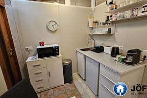 Húsnæðið skiptist í tvö herbergi, móttöku, kaffistofu, salerni og þvottaaðstöðu.