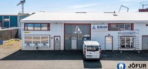 Nánari upplýsingar: Húsnæðið skiptist í grunnflöt um 200 m² og skrifstofur og lager á efri hæð sem er um 150 m². Á efri hæð er skrifstofur, kaffistofa og lager. Húsnæðið og lóðin getur hentað undir bílaverkstæði, bílasölur eða starfsemi sem þarfnast stórrar lóðar.
