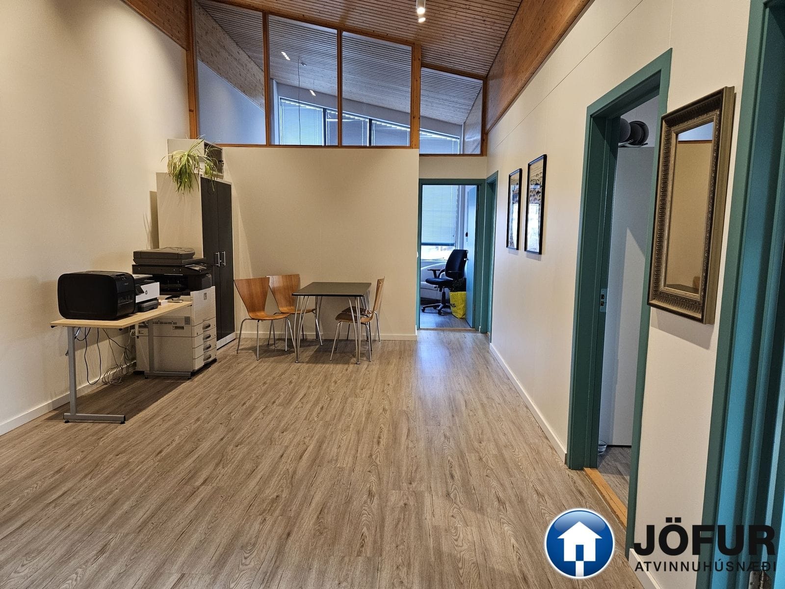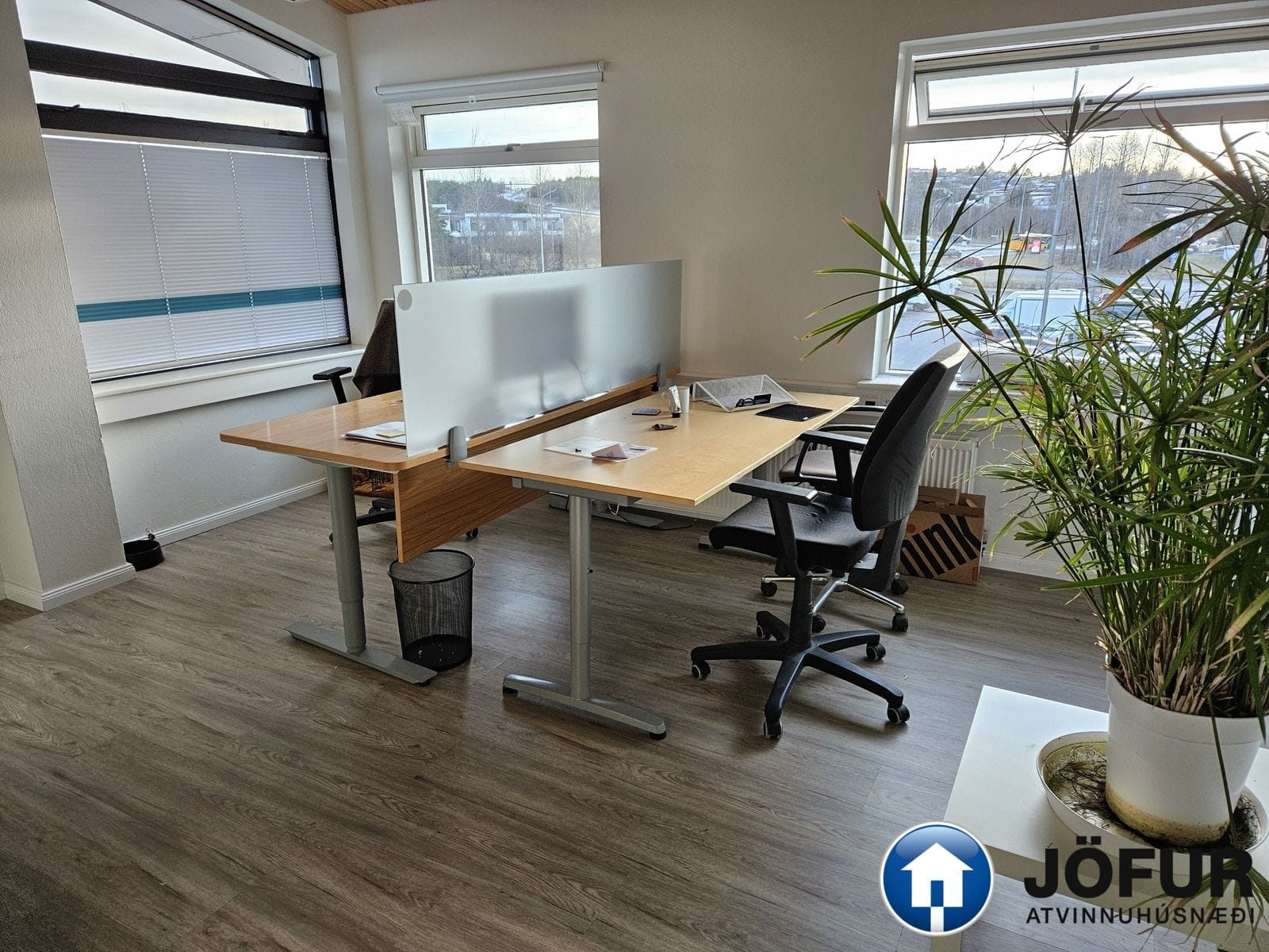 Til sölu 111,7 m² skrifstofuhúsnæði á 3. hæð við Þarabakka 3 í Reykjavík. Laust frá 1. apríl 2026 Nánari lýsing: Húsnæðið skiptist í opið rými með uppteknu lofti, fjórar lokaðar skrifstofur, kaffistofu/ eldhús með innréttingu og eina snyrtingu. Ræstiaðstaða ásamt snyrtingu er sameiginleg á sameiginlegum gangi með aðliggjandi rými. Á gólfum er parket og er loft upptekið. Búið er að skipta um glugga og gler á suðurhlið húsnæðisins en á austurhliðinni eru upprunalegir gluggar. Eignin er hluti af fjöleignahúsinu við Þarabakka 3, þar sem eru ýmis þjónustufyrirtæki. Aðgengi að rýminu er úr sameiginlegum stigagangi. Bílastæði eru í sameign og er góð aðkoma að húsinu. Staðsetning húsnæðisins er mjög góð á Höfuðborgarsvæðinu. Ummerki er um leka í útvegg húsnæðisins.