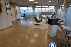 Nánari lýsing: Húsnæðið er að stórum hluta opið vinnurými, eitt lokað fundarherbergi með glervegg, afstúkuð kaffiaðstaða með innréttingu ásamt Wc. Kerfisloft og lýsing í loftum. Fallegt útsýni í átt að Laugardal og Esju. VSK leggst við leigufjárhæðina.