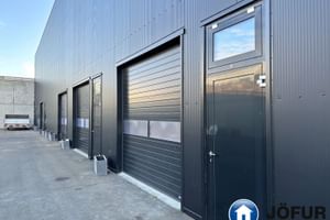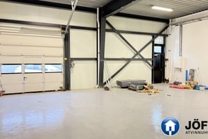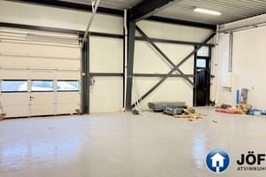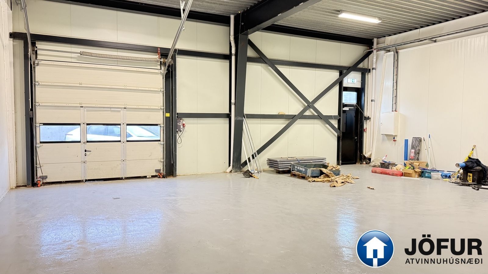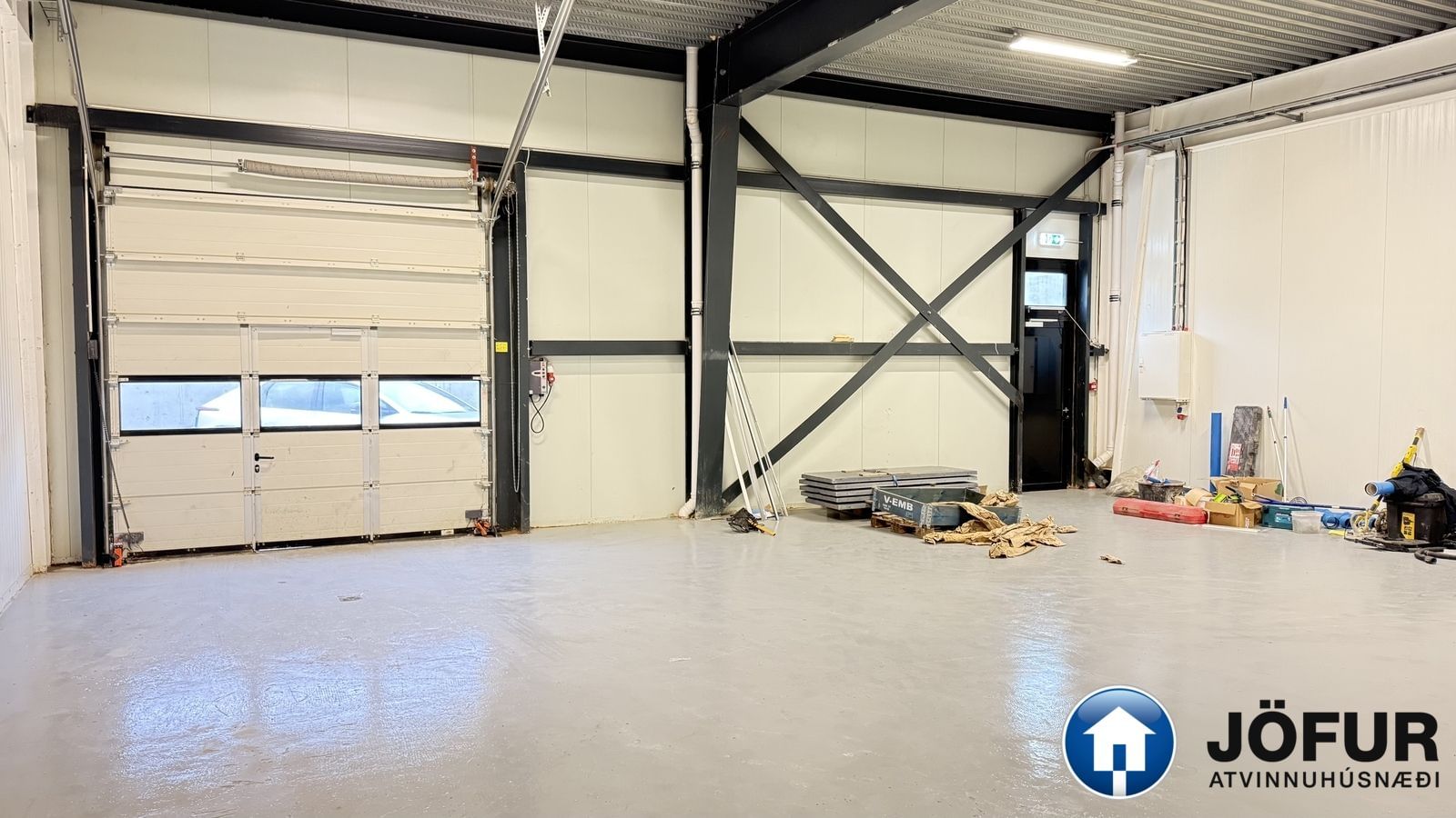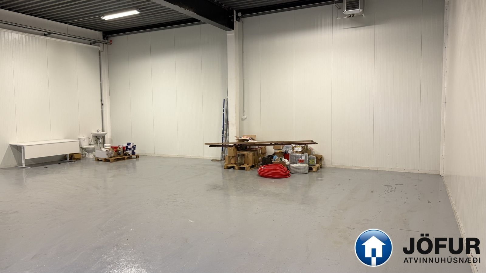 Rými er einn opin salur Með innkeyrsluhurð. Hæð hurðar er 2,85metrar. Lofthæð er um 4,8 metrar. Salerni er í rýminu.