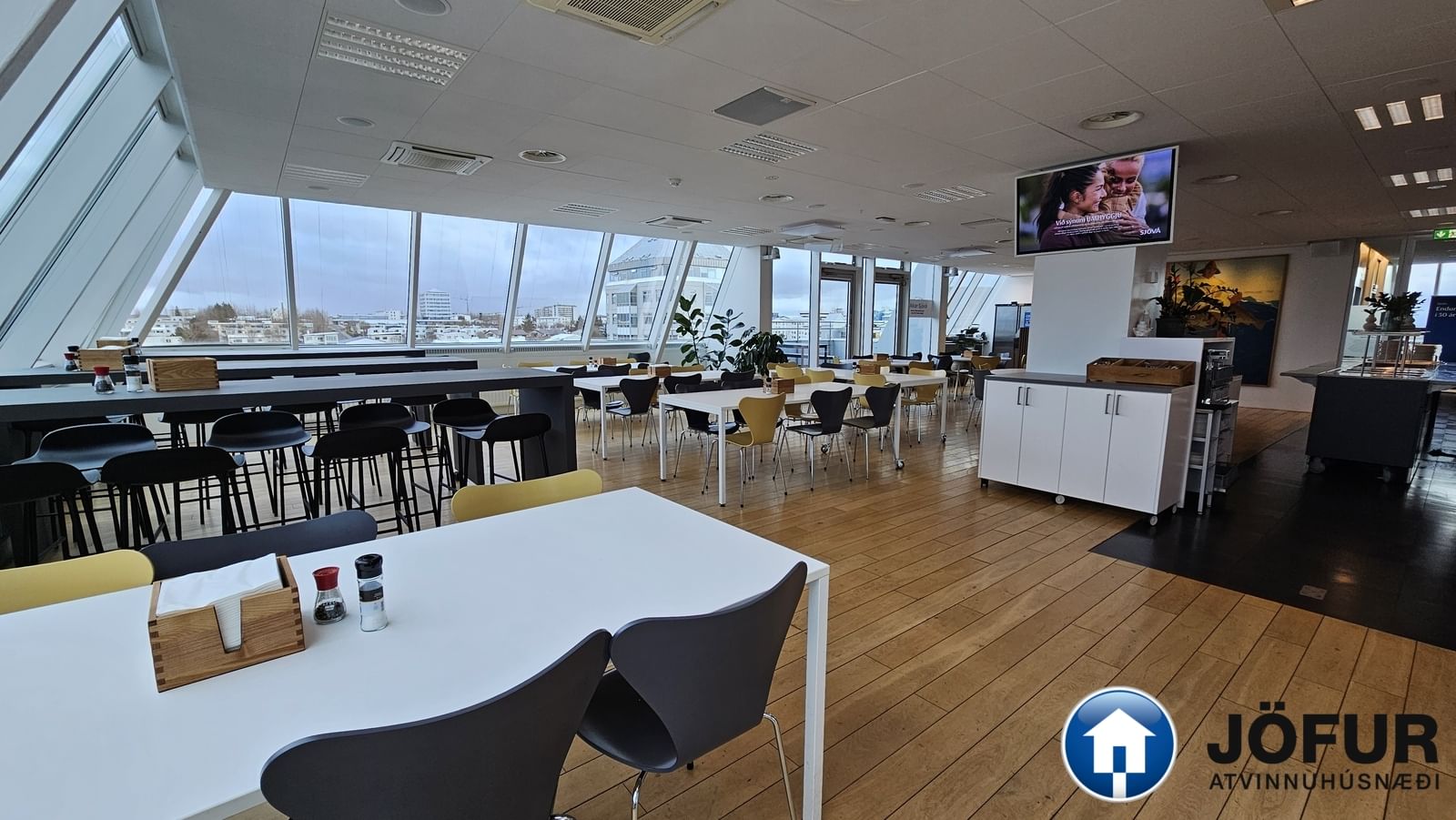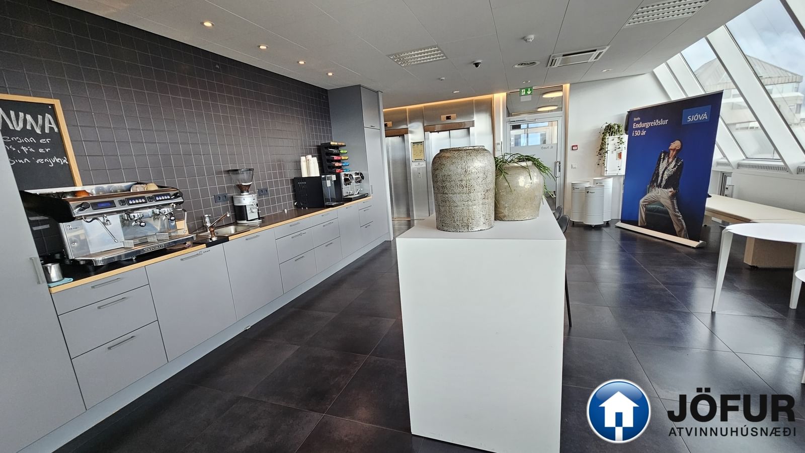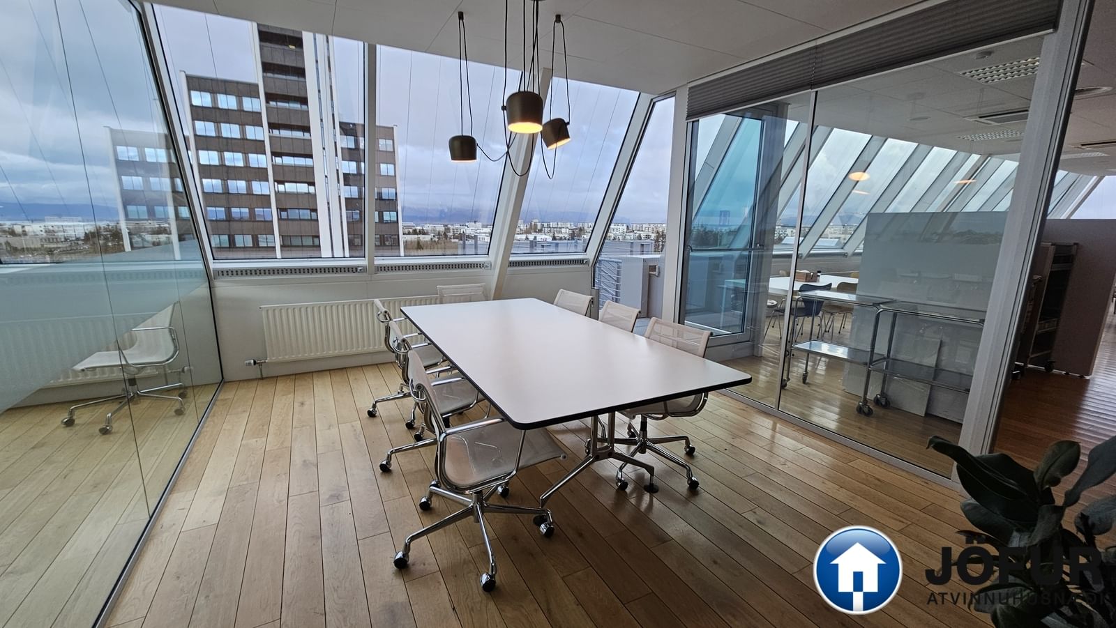 Nánari lýsing 5. hæðar: Hæðin skiptist upp í stórt opið vinnurými, 5 fundarherbergi, næðisrými, stórt eldhús/ kaffistofu og snyrtingar. Á gólfum eru teppaflísar.