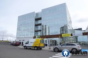 Nánari lýsing: Húsnæðið skiptist upp í opið skrifstofurými, 2 lokaðar skrifstofur, eitt stórt fundarherbergi, eldhús/ kaffistofu, geymslu og 2 snyrtingar með sturtuaðstöðu. Parket er á gólfum.