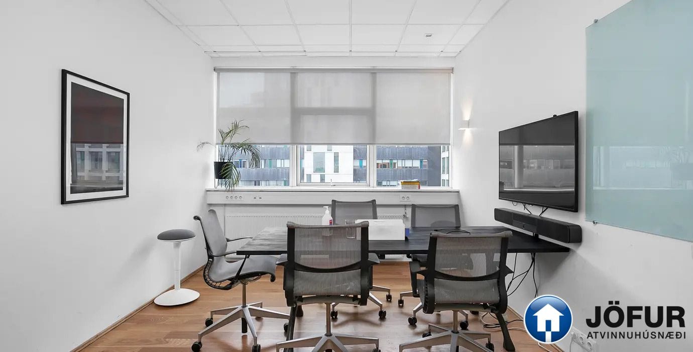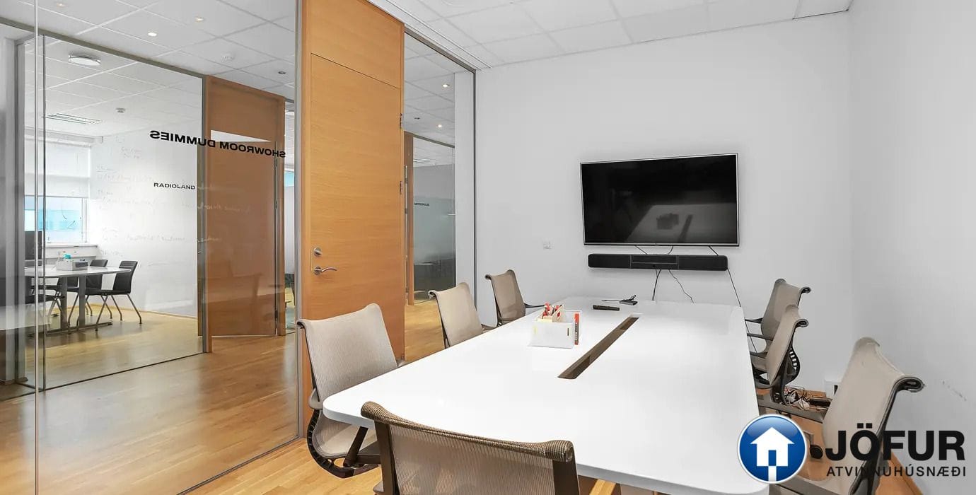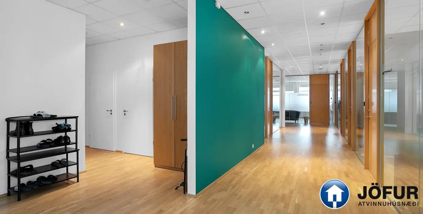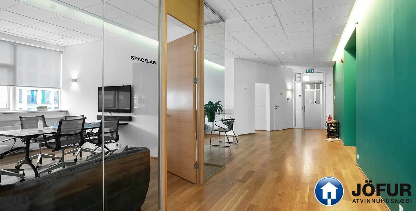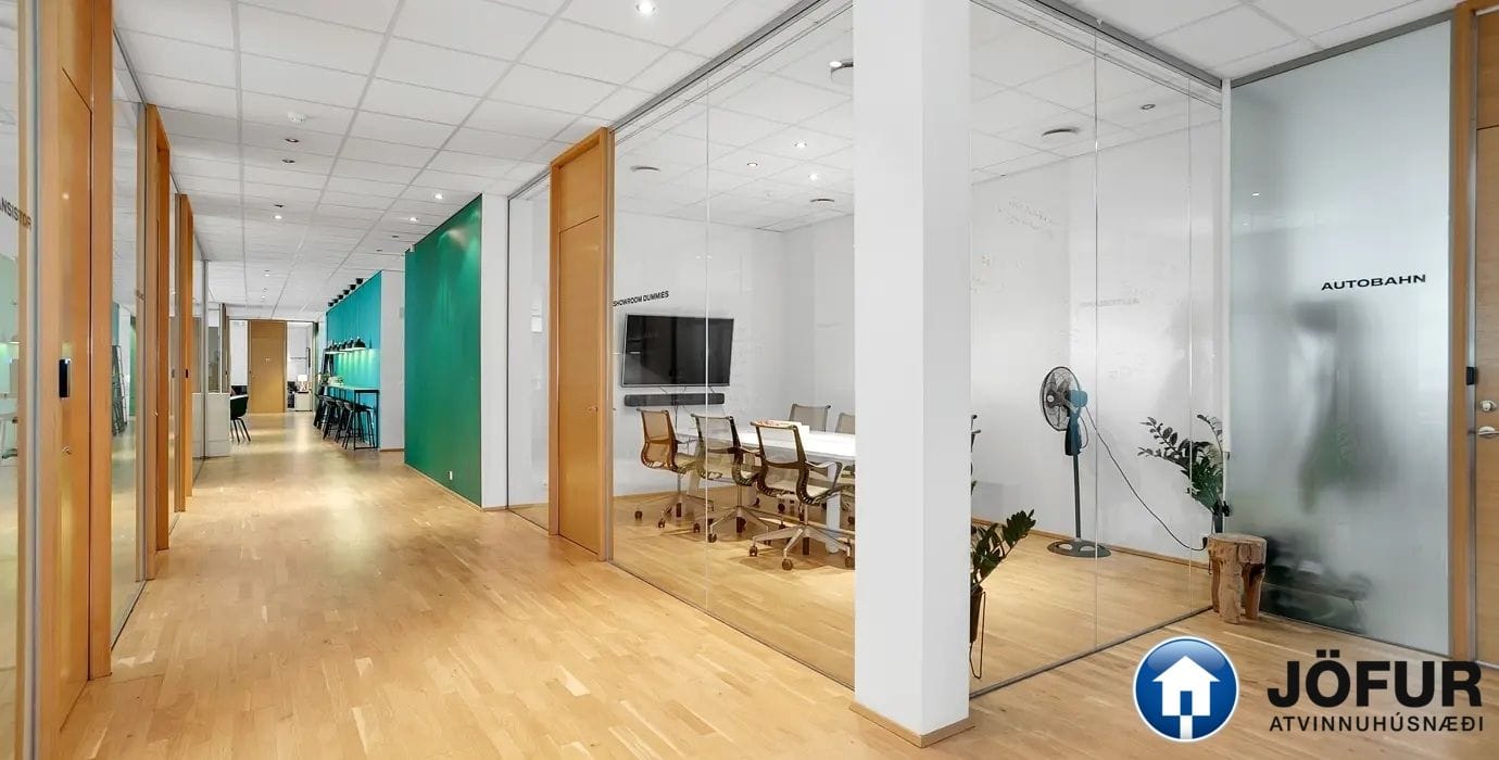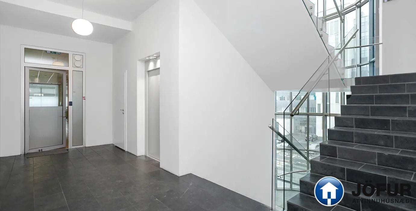 Sérinngangur og lyfta. Húsnæðið býður upp á fjölbreytt skipulag með áherslu á sveigjanleika, þar sem samhliða opnu vinnurými eru mörg lokuð rými og fundarherbergi, sem skapa góða aðstöðu.
