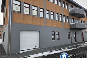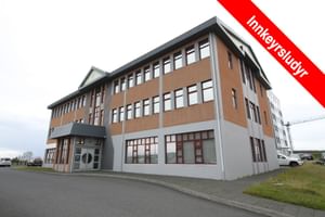 Nánari lýsing: Húsnæðið skiptist upp í 3 lokaðar skrifstofur, eitt fundarherbergi, eldhús/ kaffistofu, tækniherbergi, lagerrými með innkeyrsluhurð og 2 snyrtingar, (önnur með sturtuaðstöðu). Á gólfum er dúkur. Kerfisloft og innbyggð lýsing í loftum. VSK leggst við leigufjárhæðina.