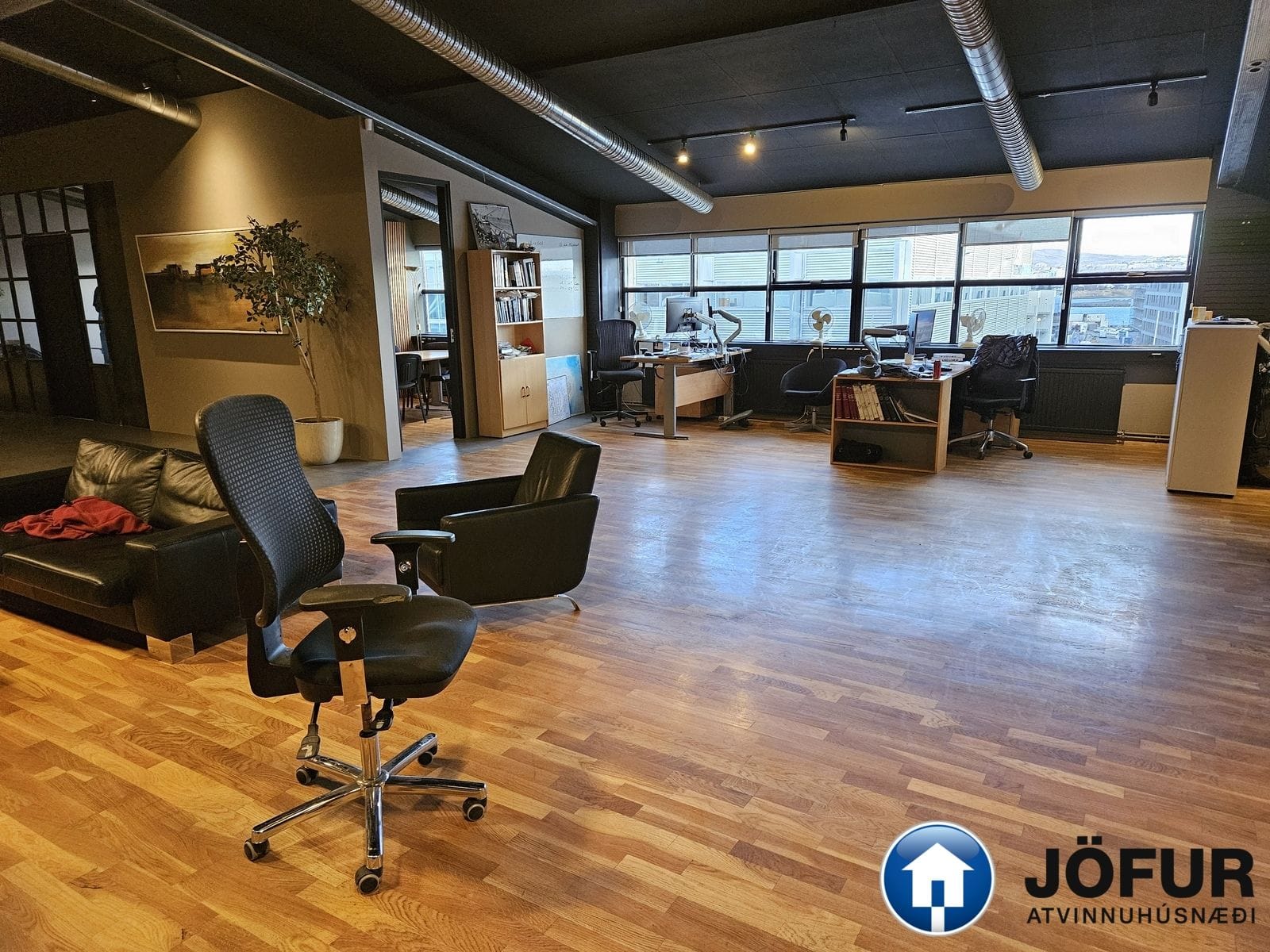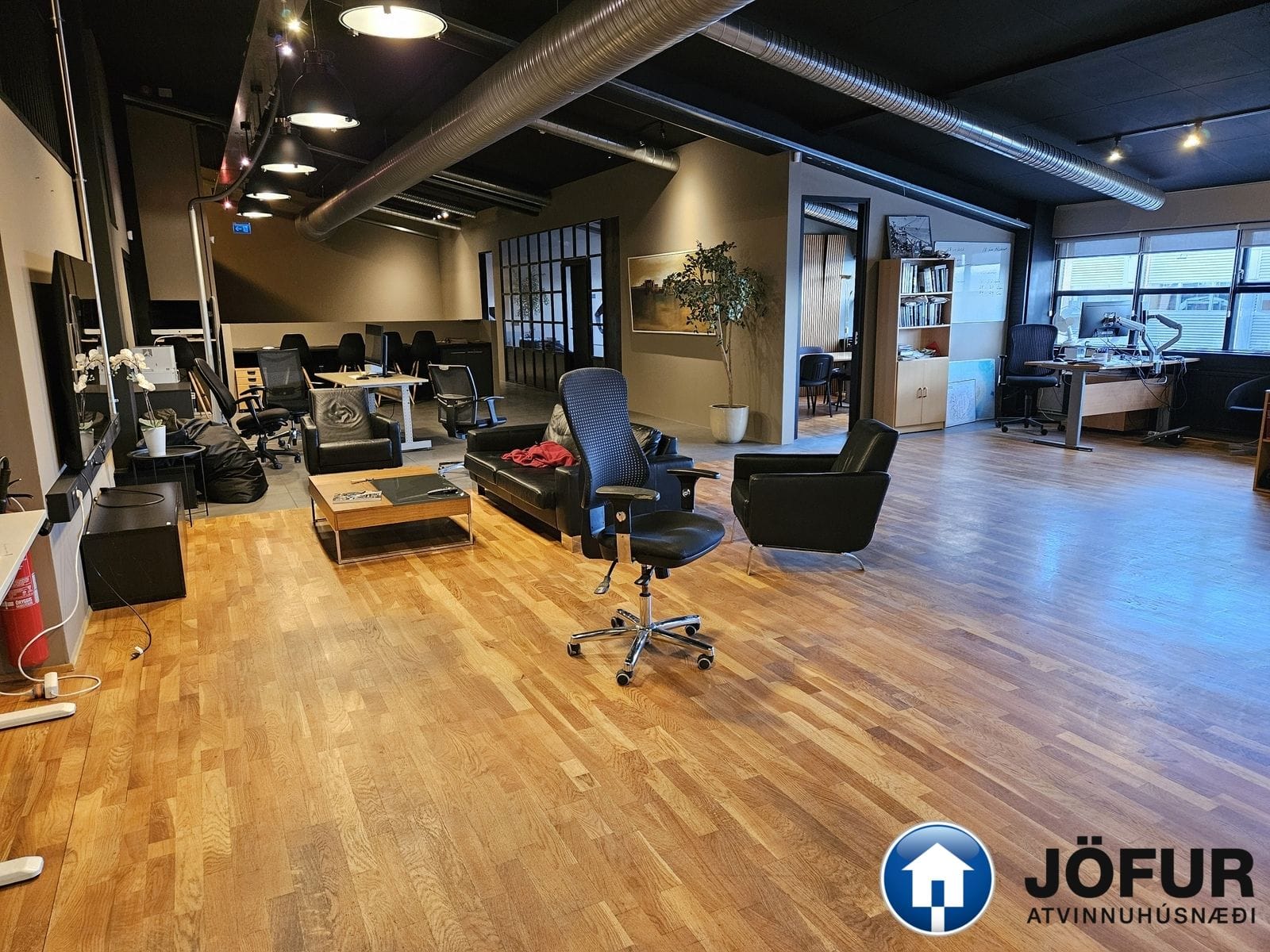 Nánari lýsing: Skiptist upp í stórt opið skrifstofurými, tvær lokaðar skrifstofu, eitt fundaherbergi og kaffiaðstöðu. Snyrtingar eru í sameign. VSK leggst ekki við leigufjárhæðina.
