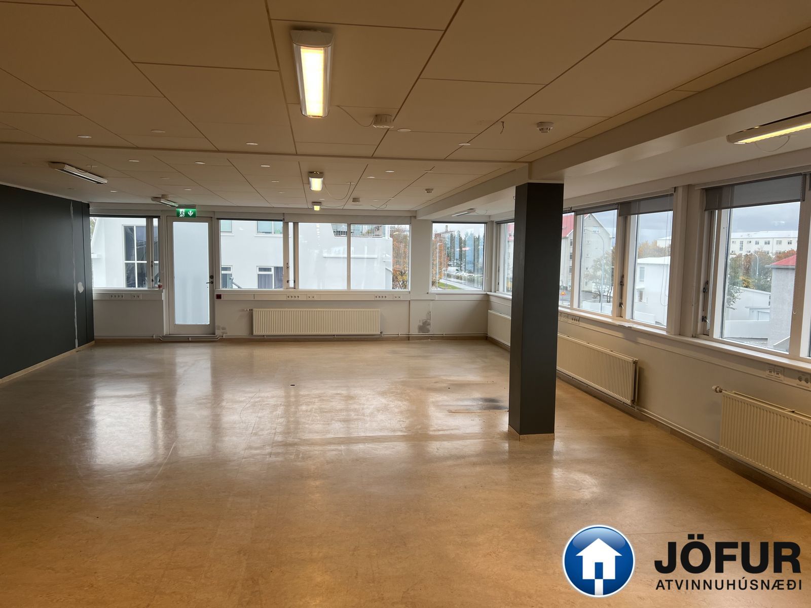 Jarðhæðin er um 150 m². Vestur hluti jarðhæðarinnar. Opið rými sem hægt er að innrétta með ýmsum hætti. Gluggar eru á þrjár hliðar hússins.