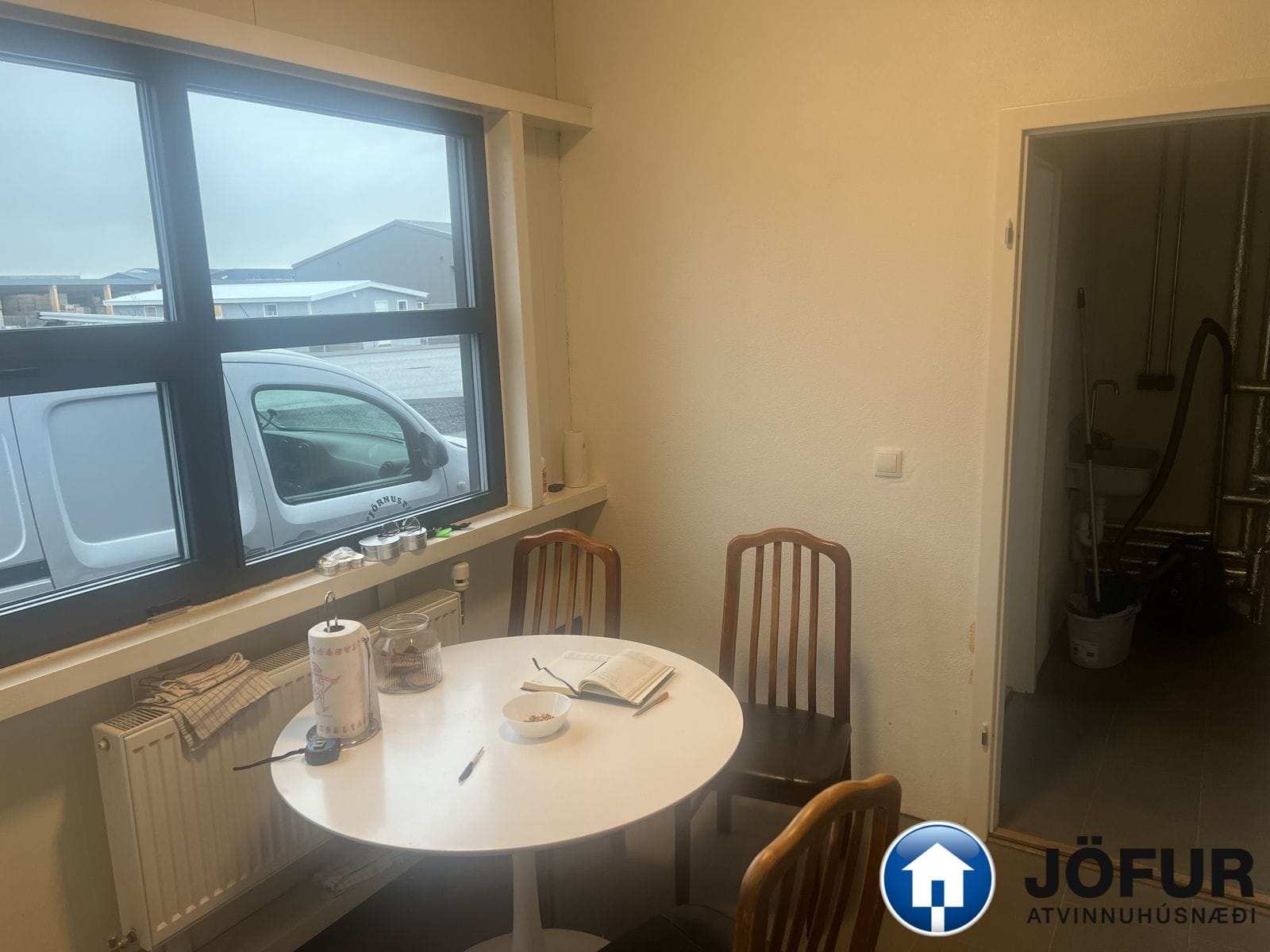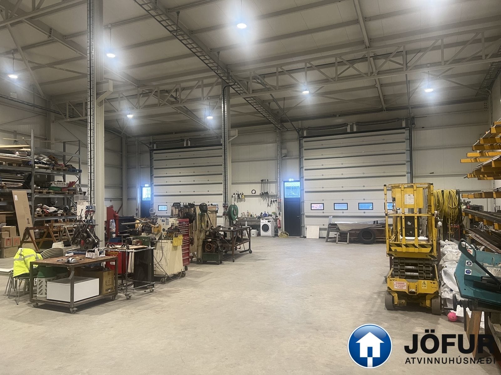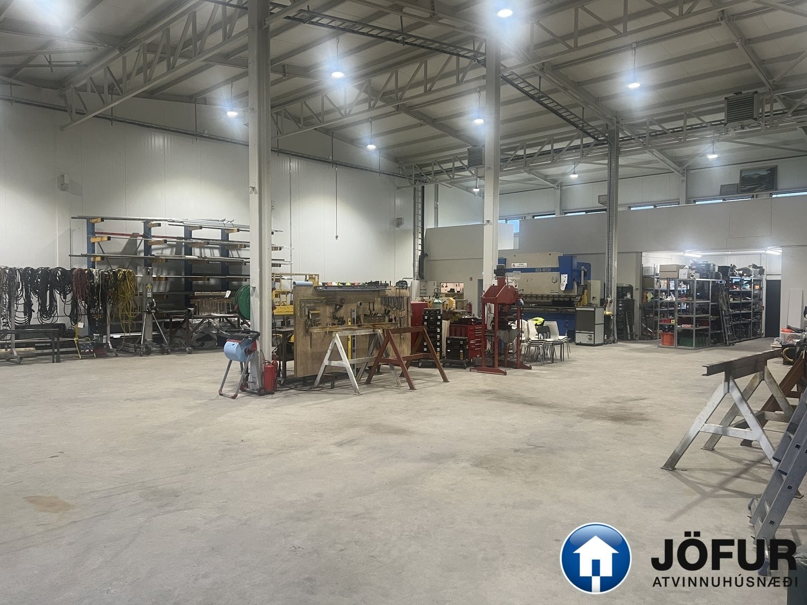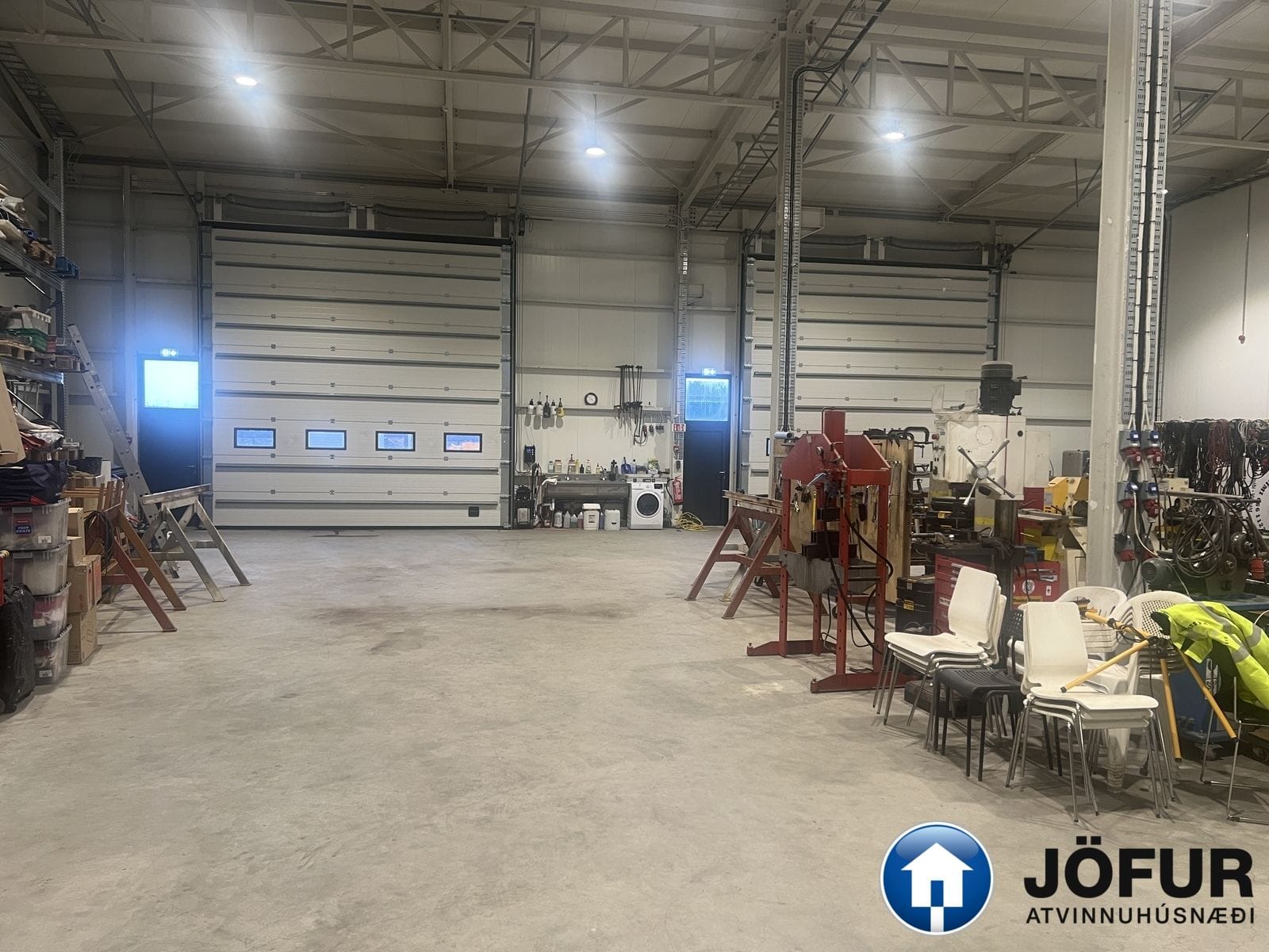 Húsnæðið er að mestu einn stór salur með tveimur stórum innkeyrsluhurðum sem eru 5 m. háar. Kaffistofa, starfsmannaaðstaða/skrifstofa og salerni innst í húsnæðið. Inngöngudyr eru í báðum endum á húsnæðinu.